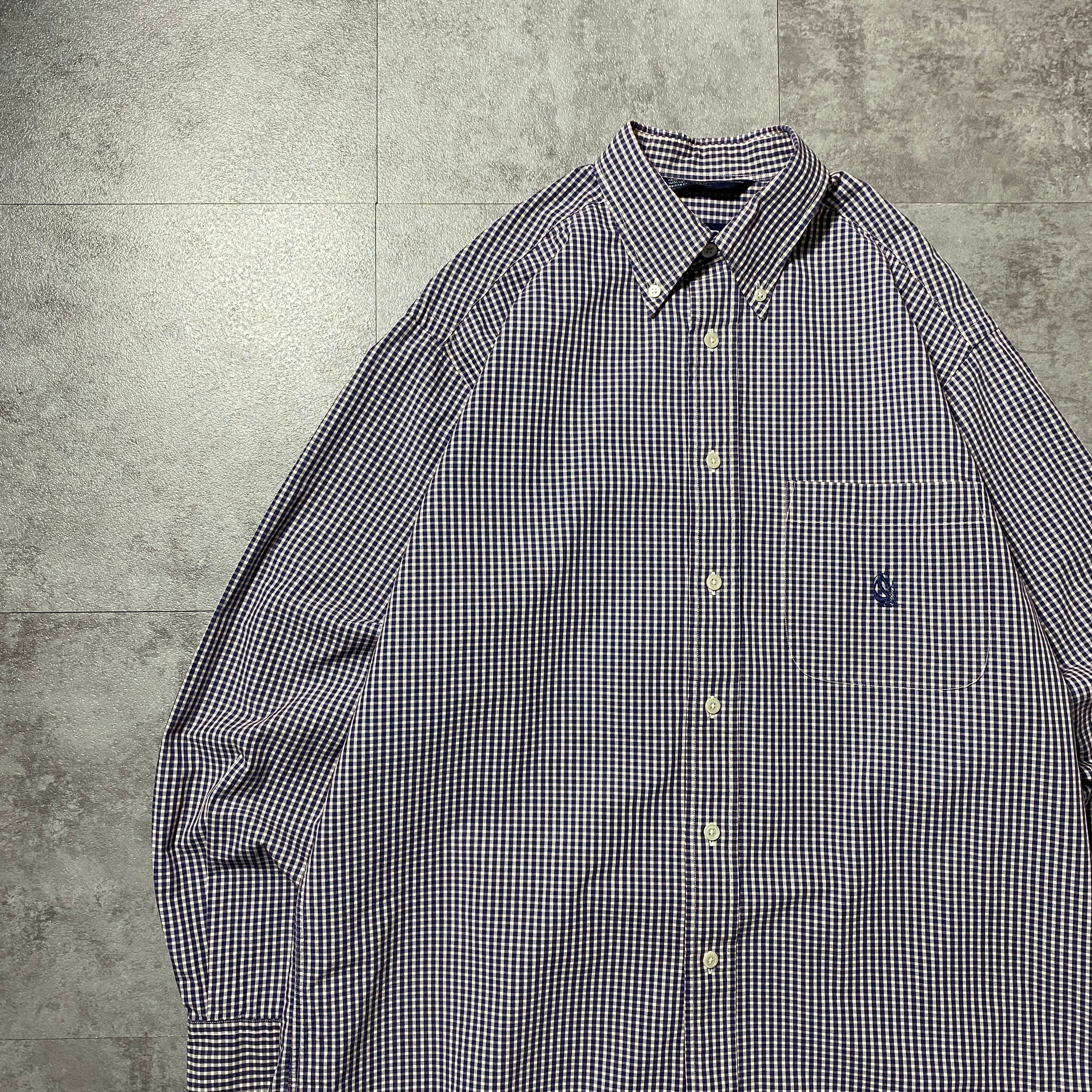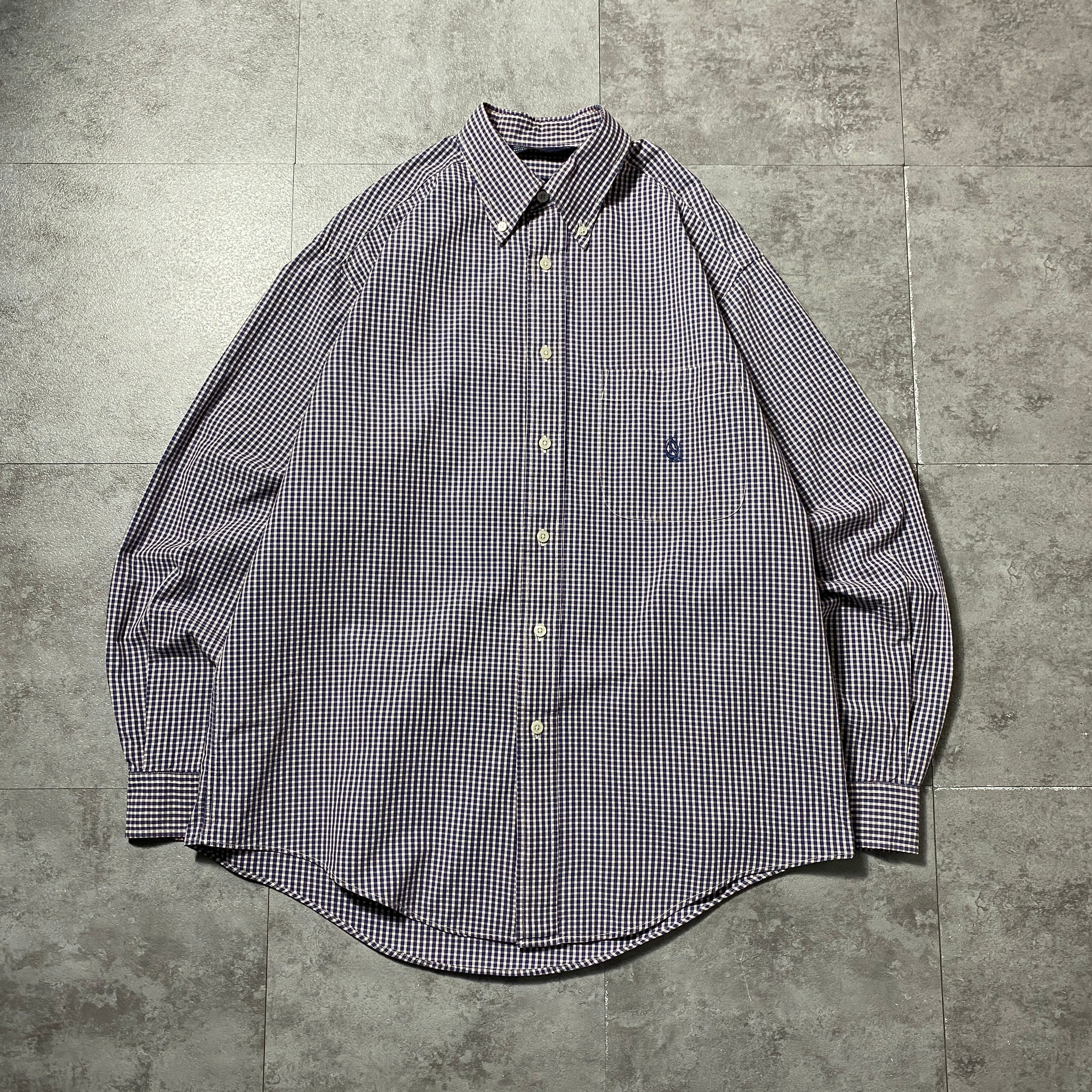 90's nautica ノーティカ 旧タグ 刺繍ロゴ 胸ポケット ギンガムチェック ボタンダウンシャツ
