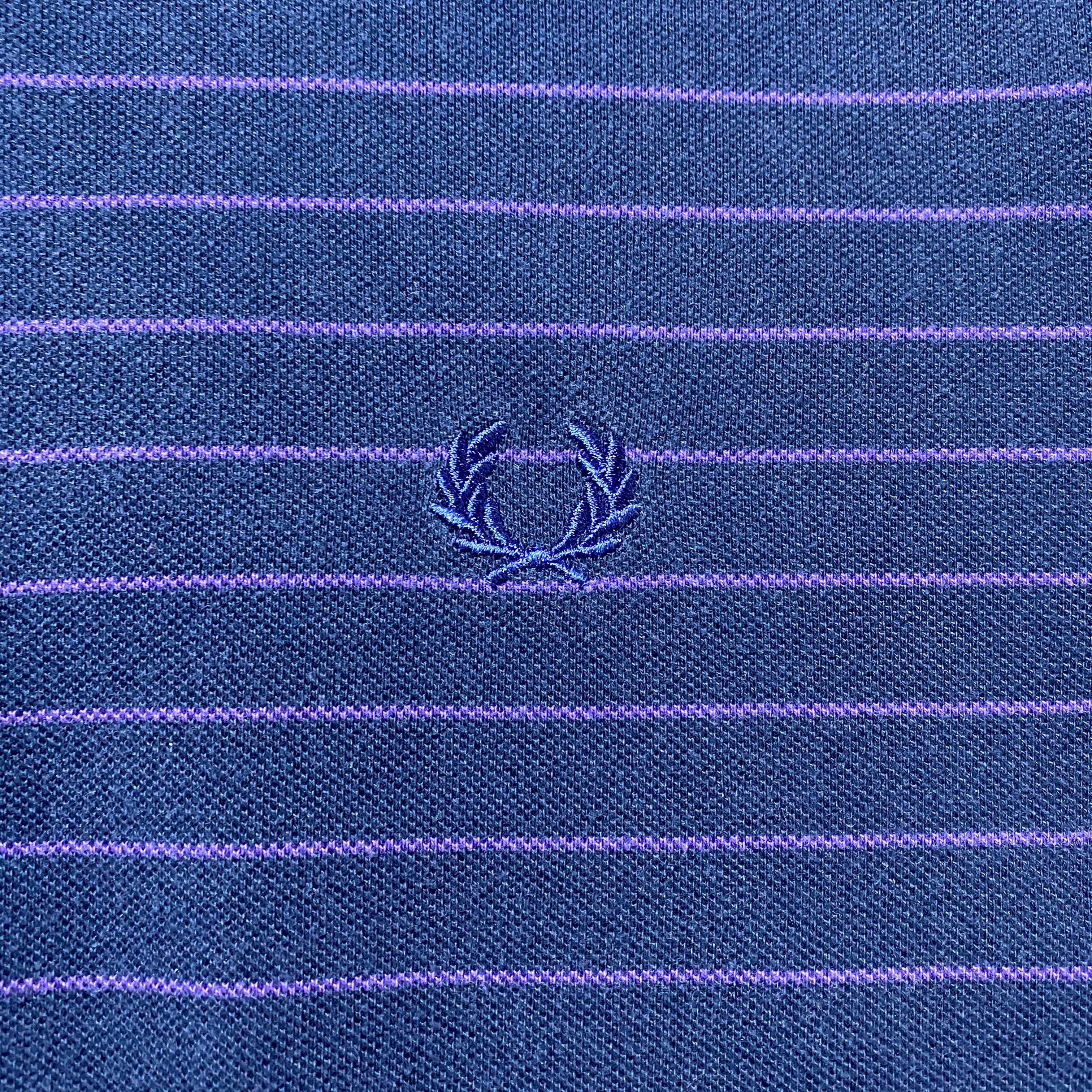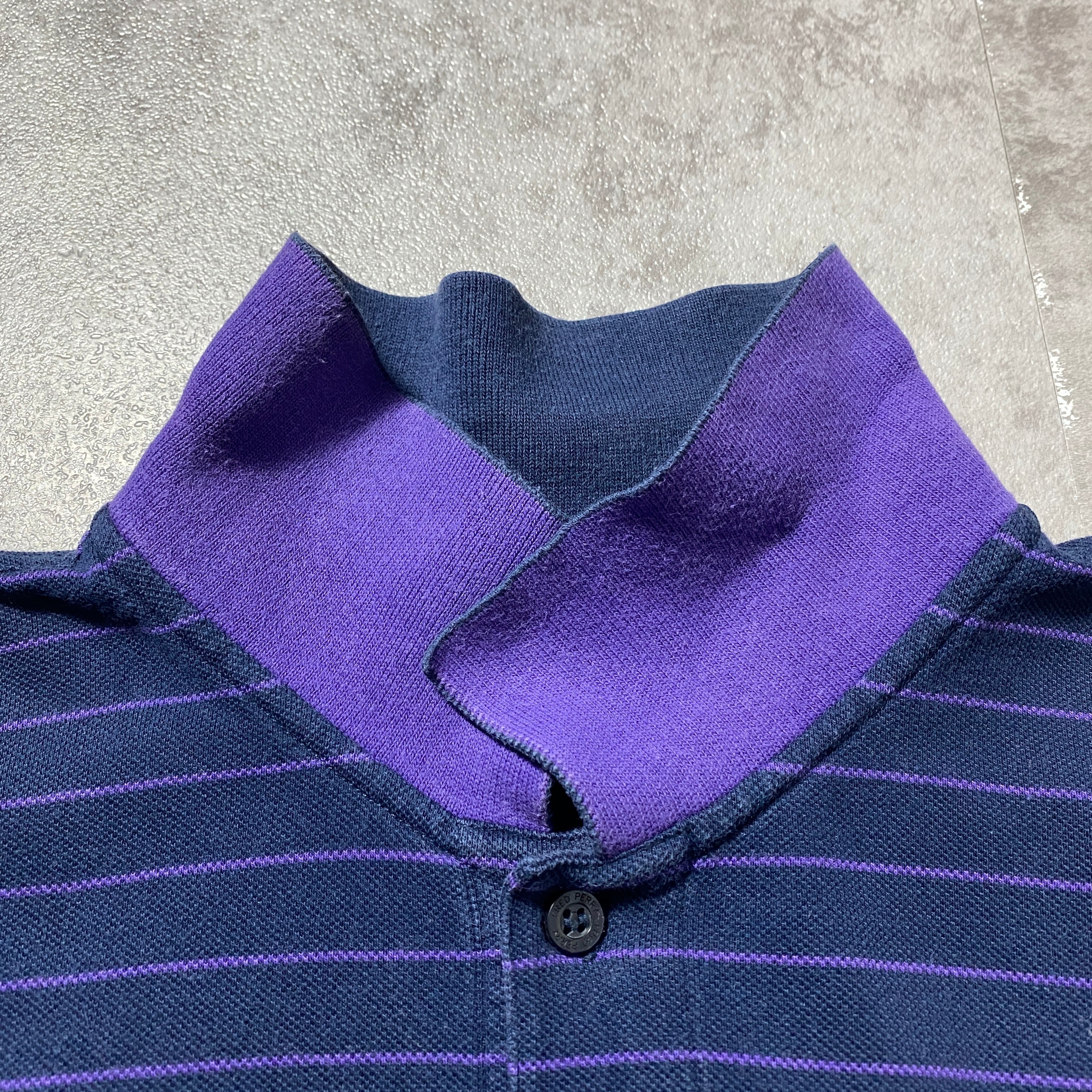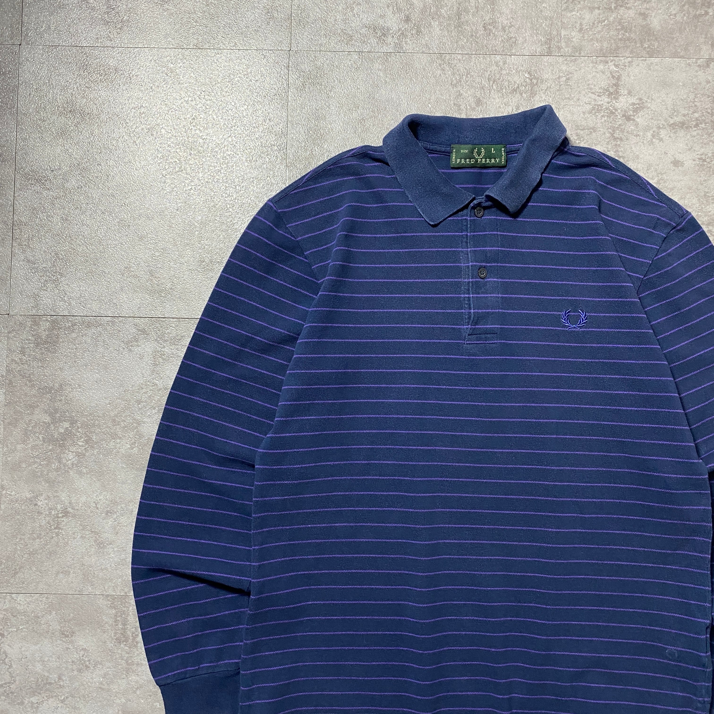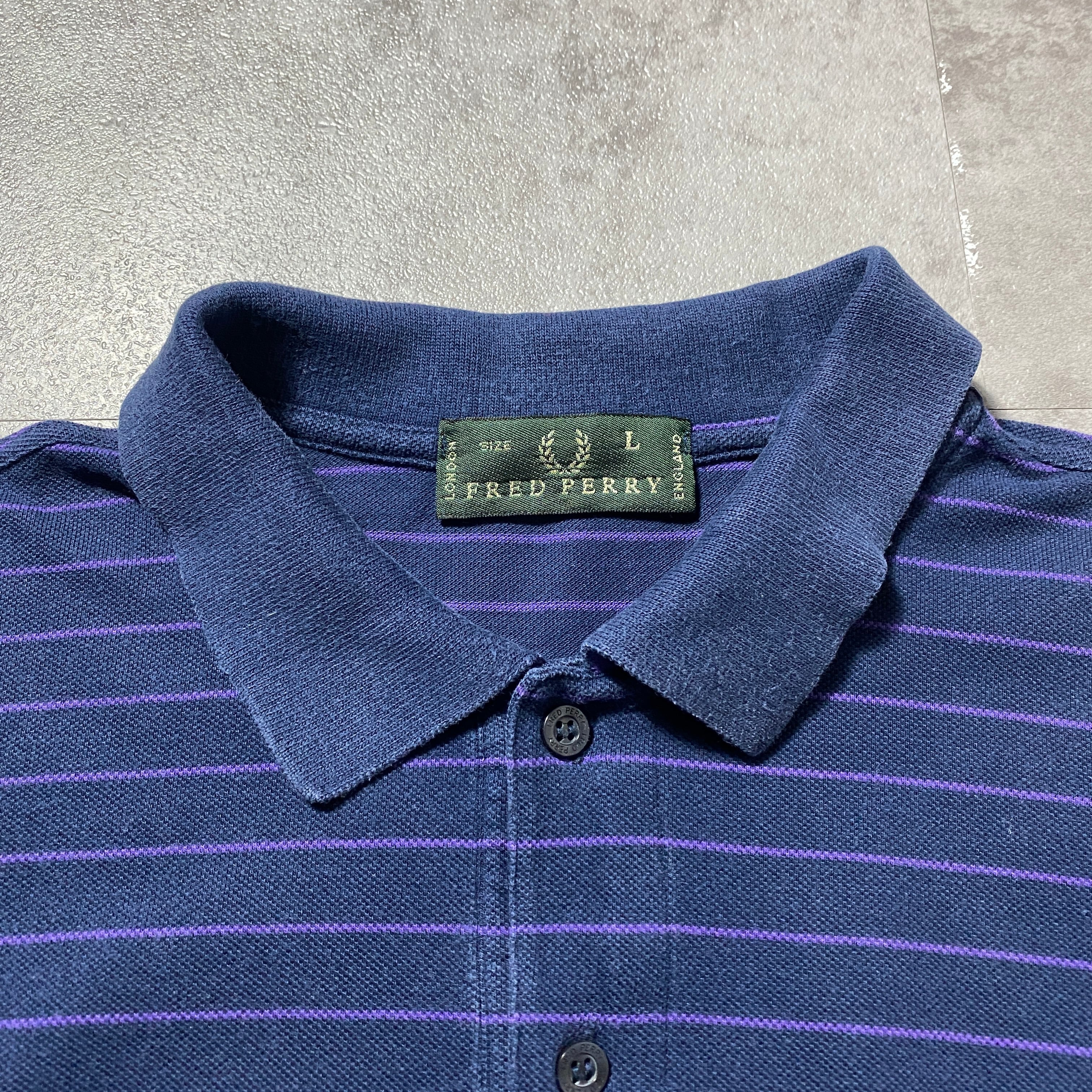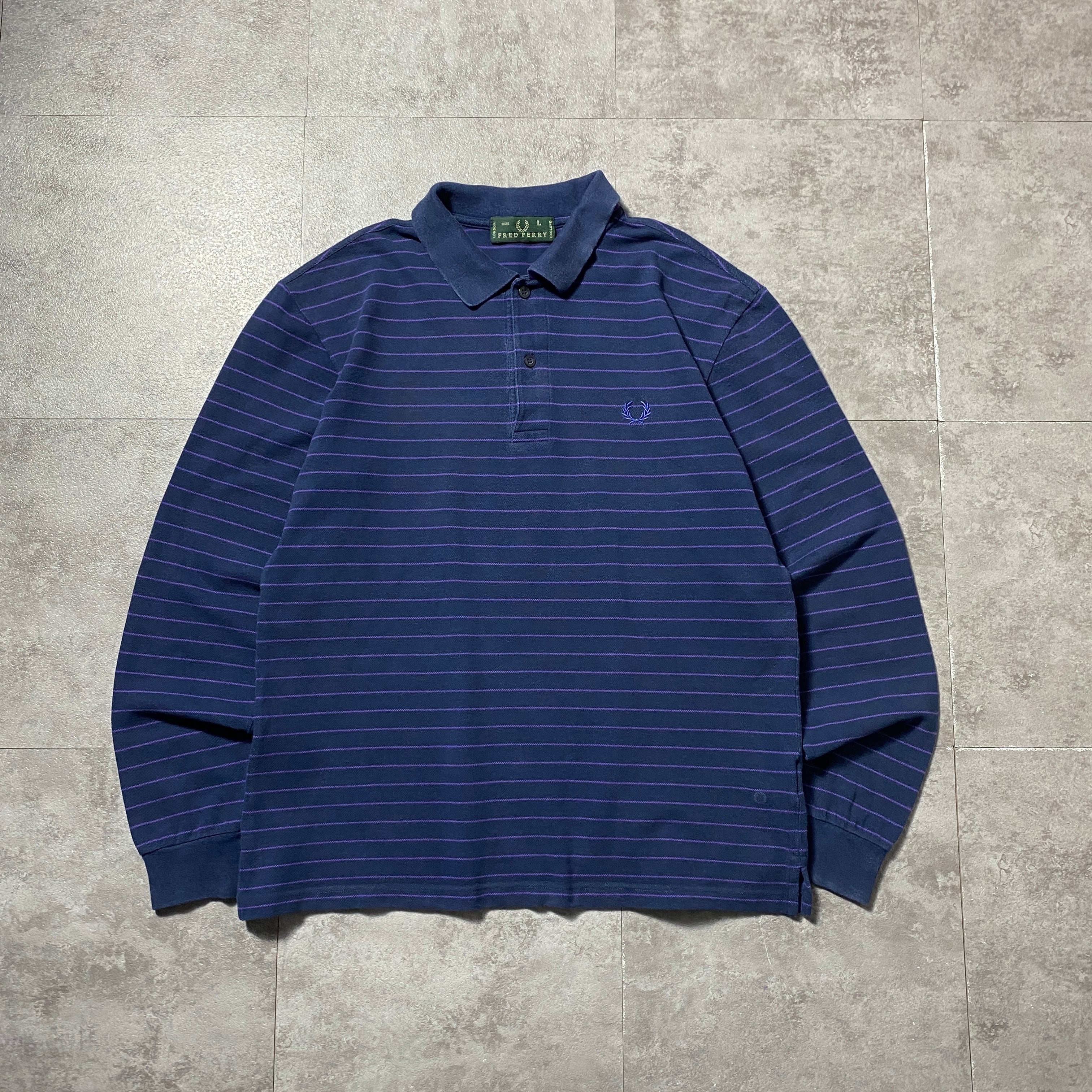 【イタリア製】90's Fred Perry フレッドペリー 月桂樹 刺繍ワンポイント ボーダー ネイビー ロンT 長袖 ポロシャツ