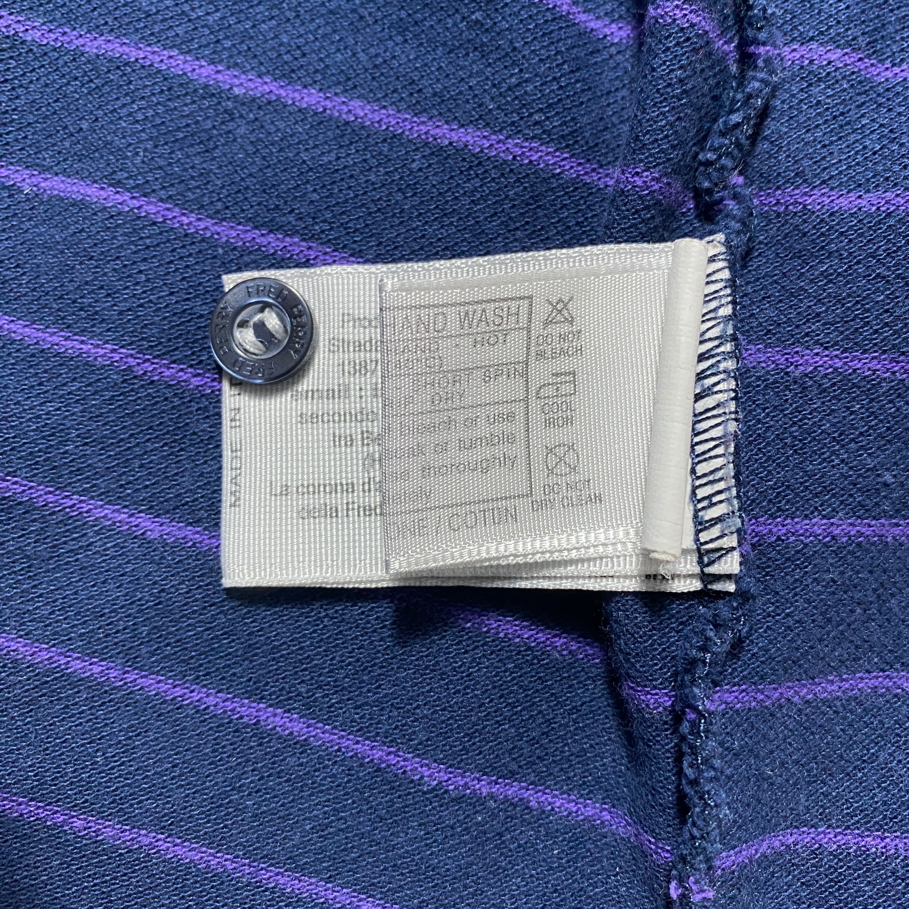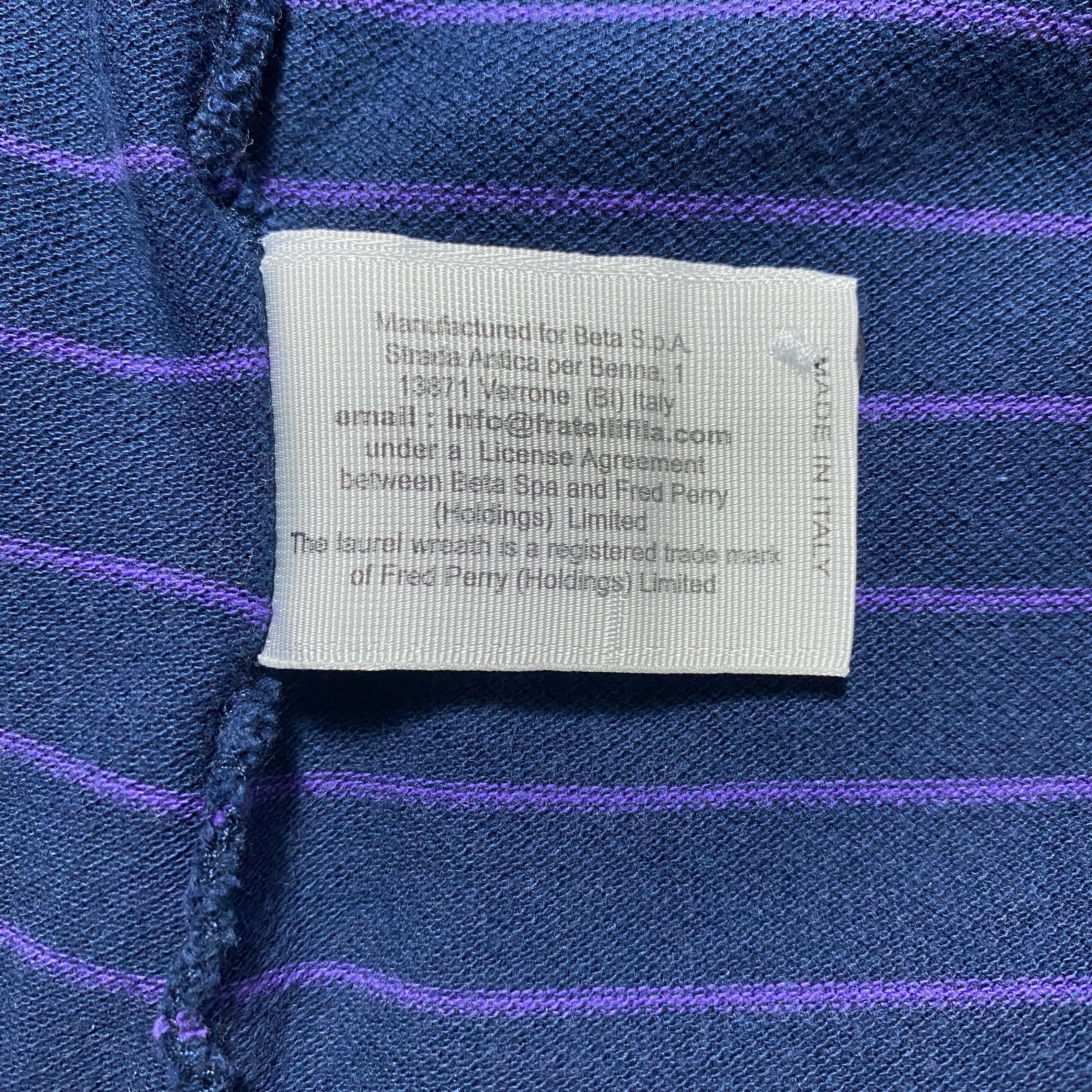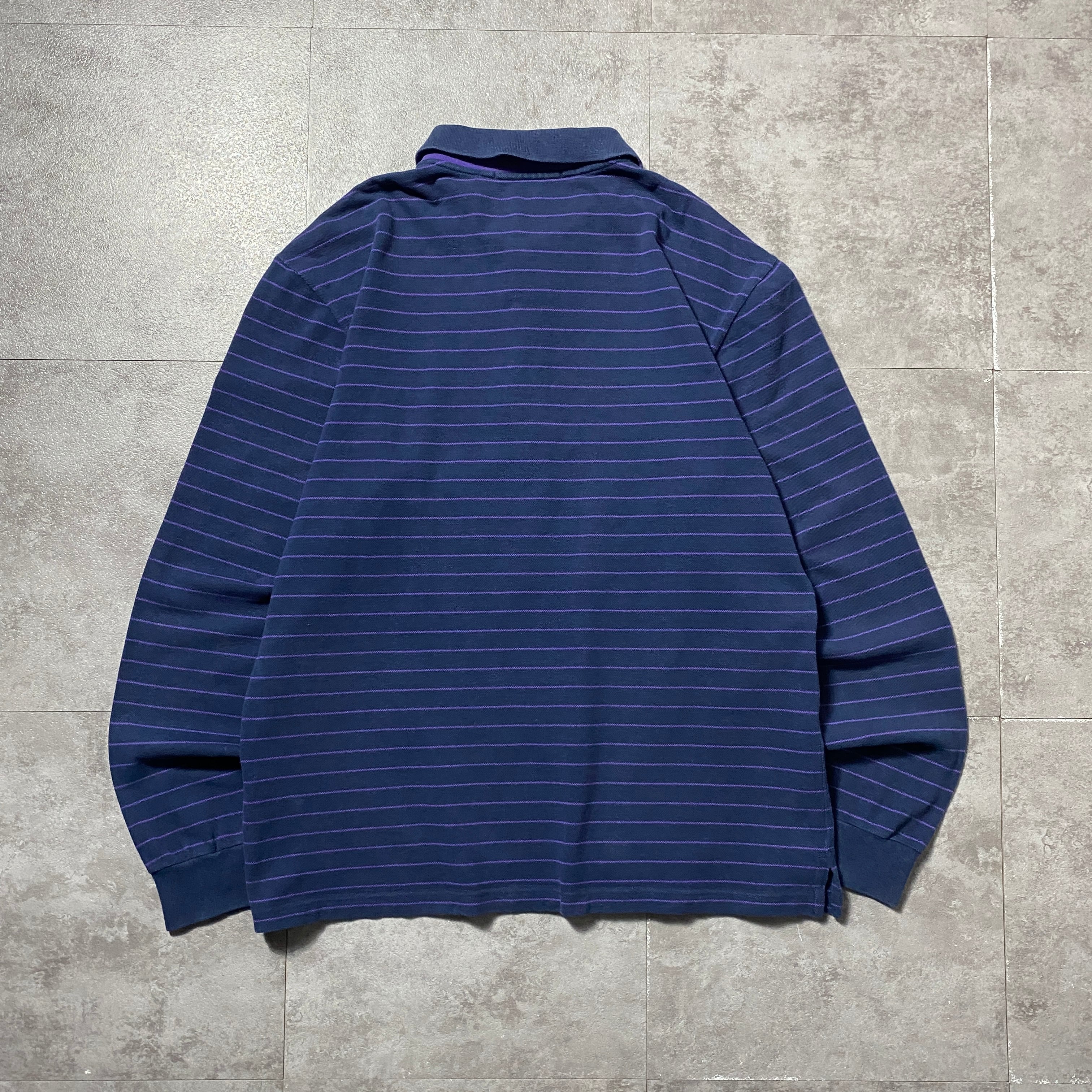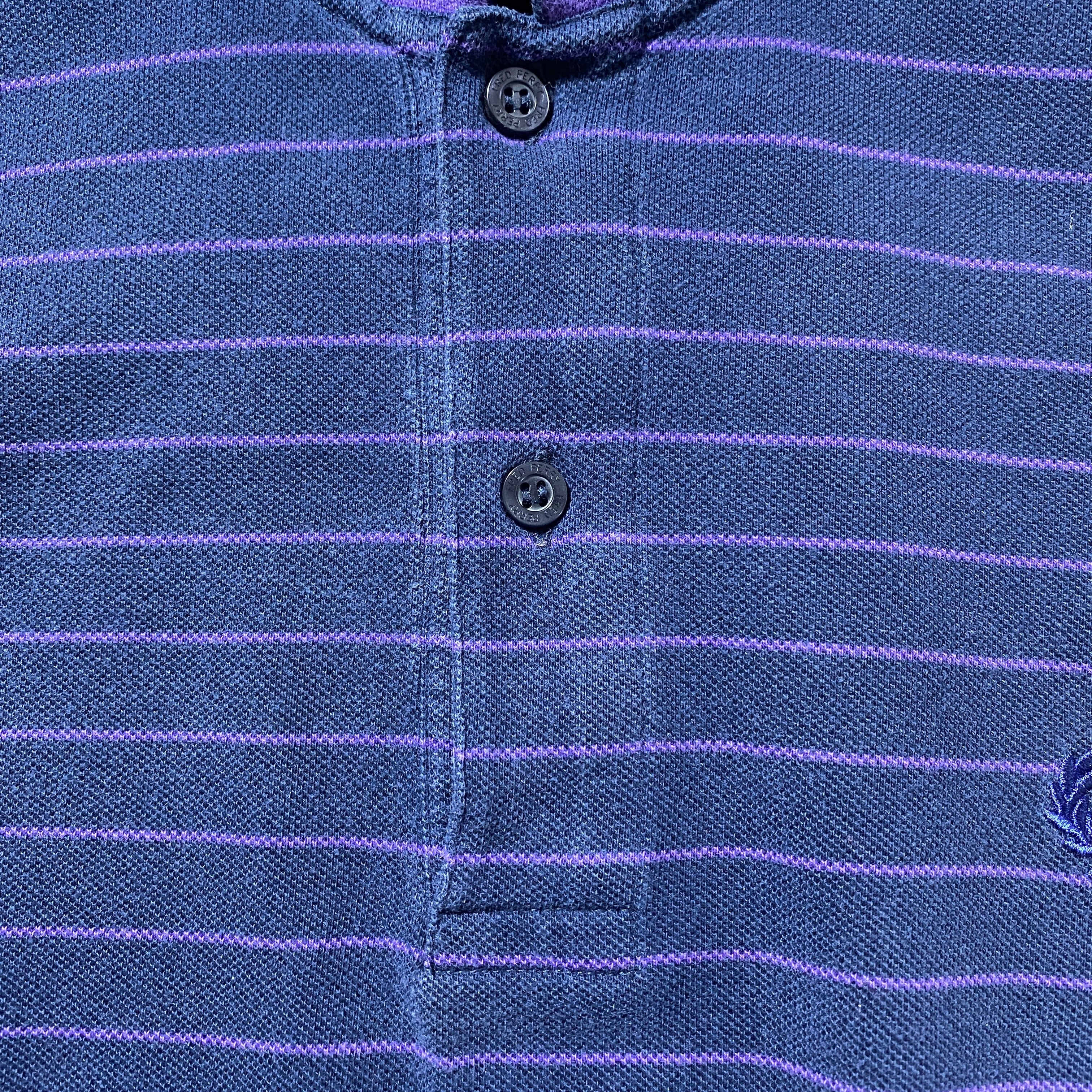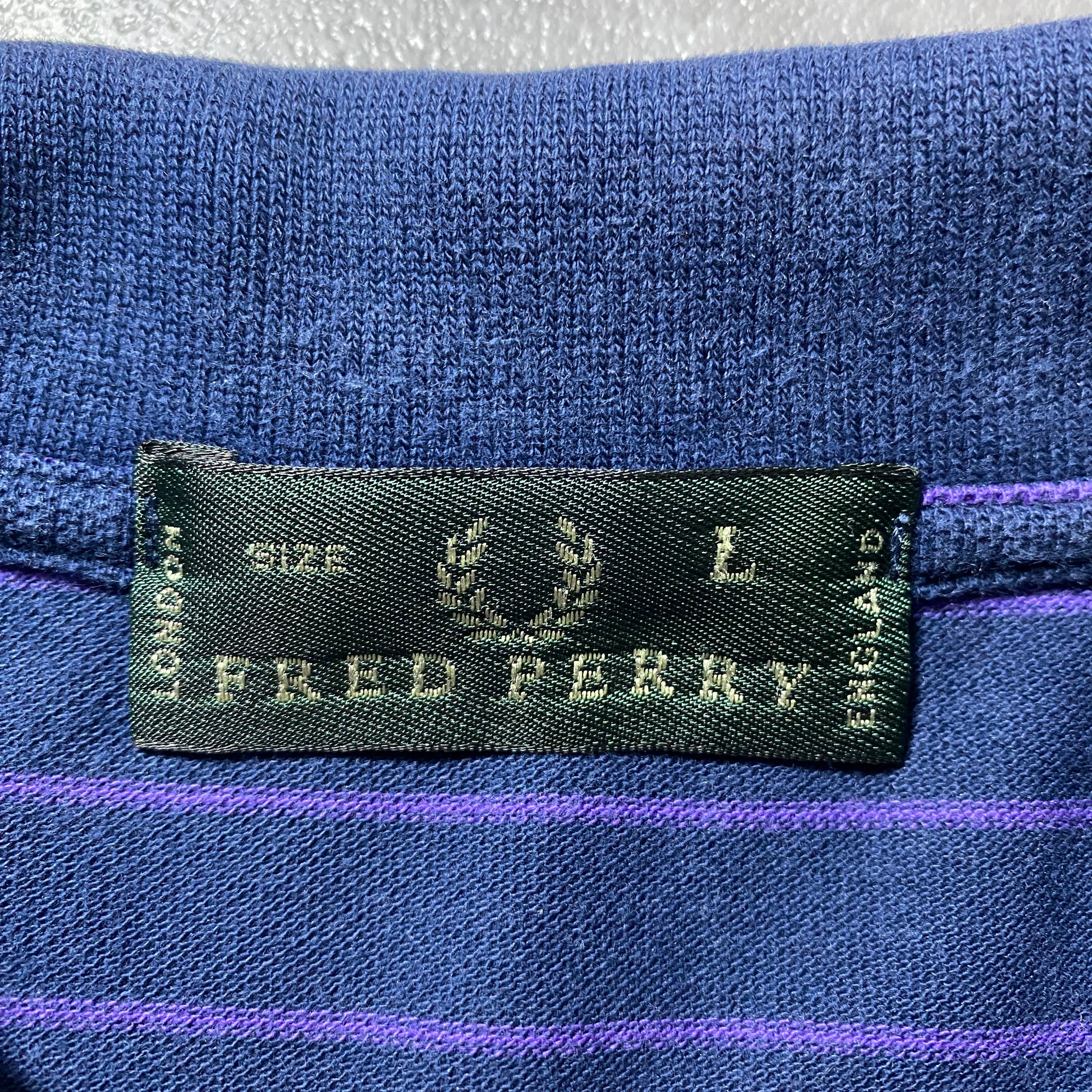 【イタリア製】90's Fred Perry フレッドペリー 月桂樹 刺繍ワンポイント ボーダー ネイビー ロンT 長袖 ポロシャツ