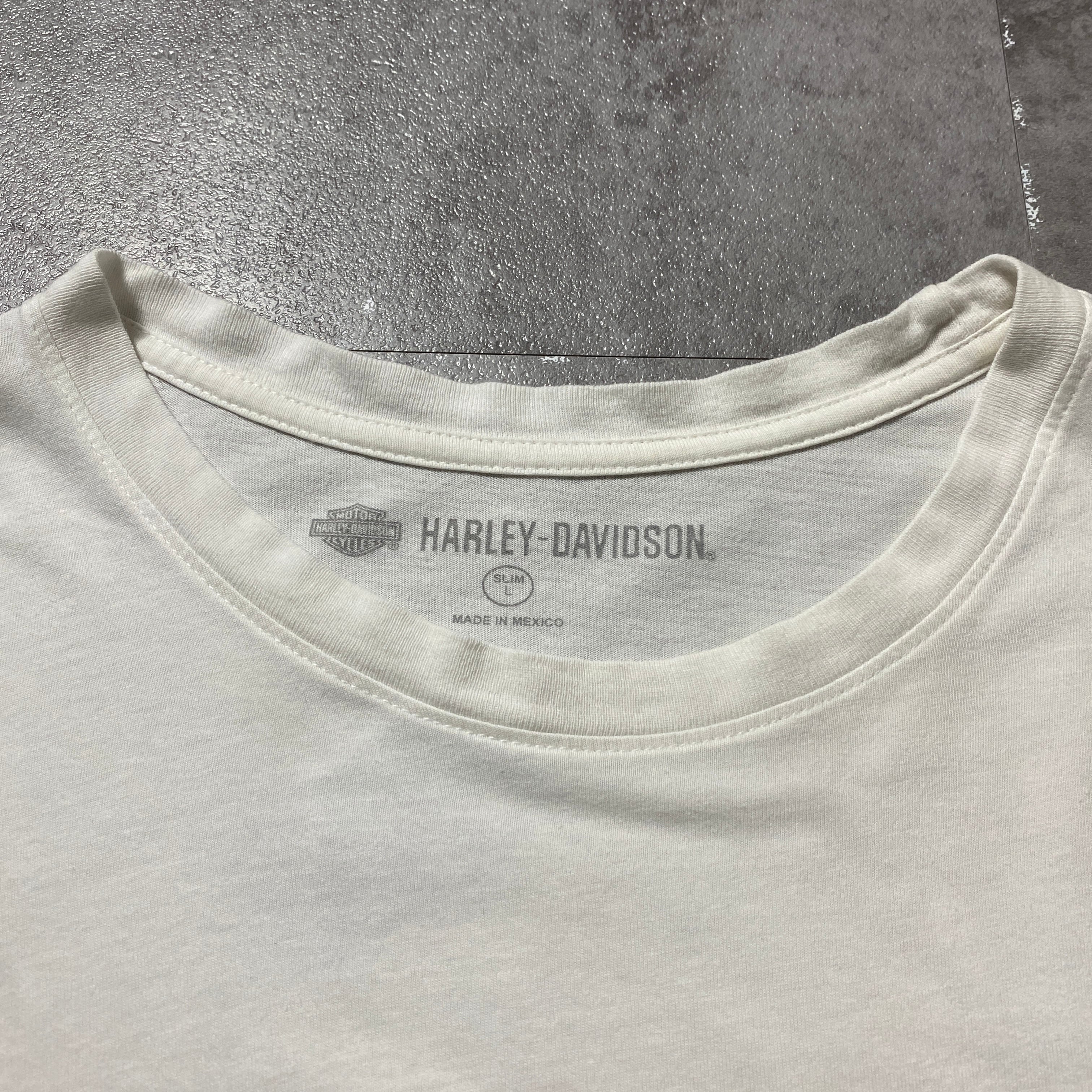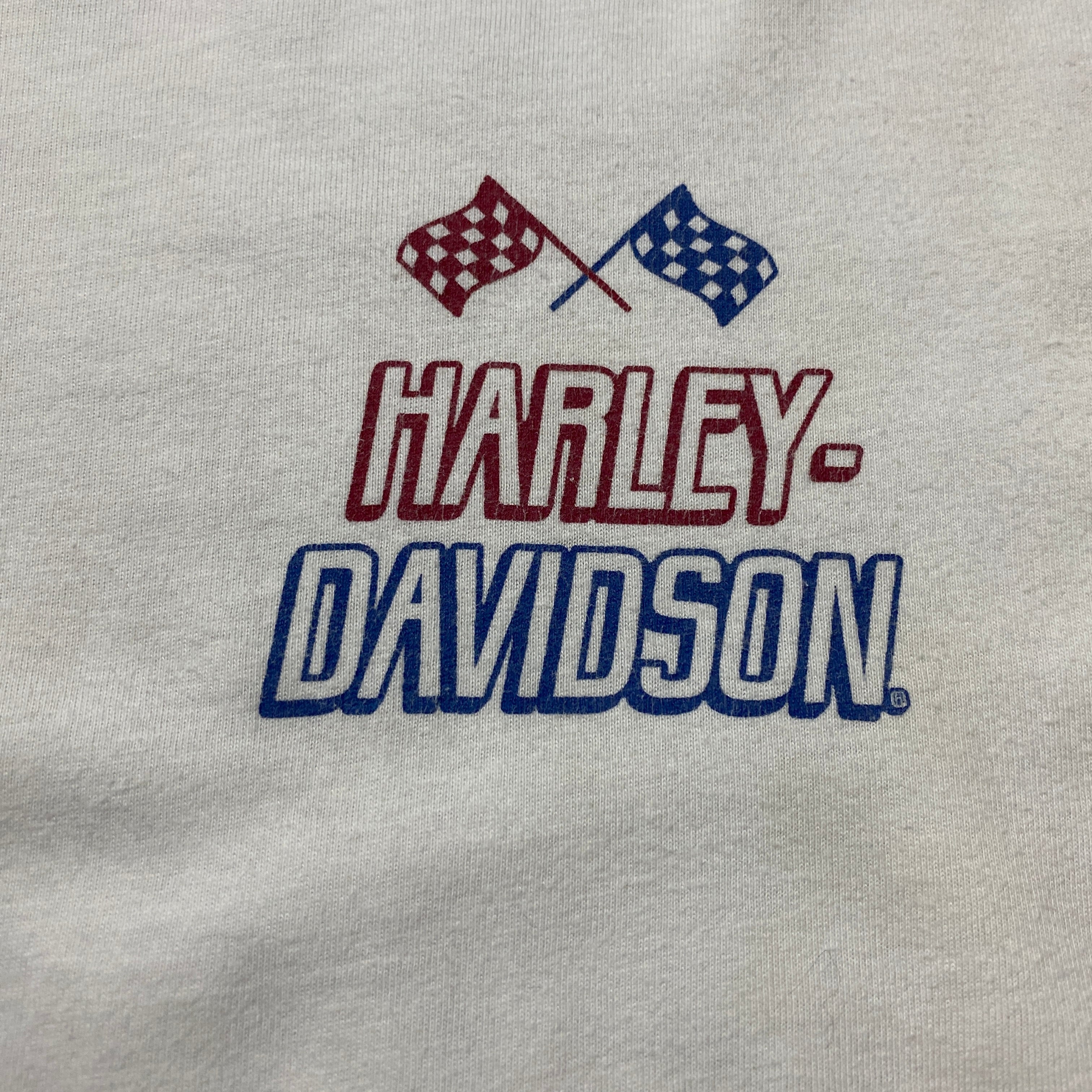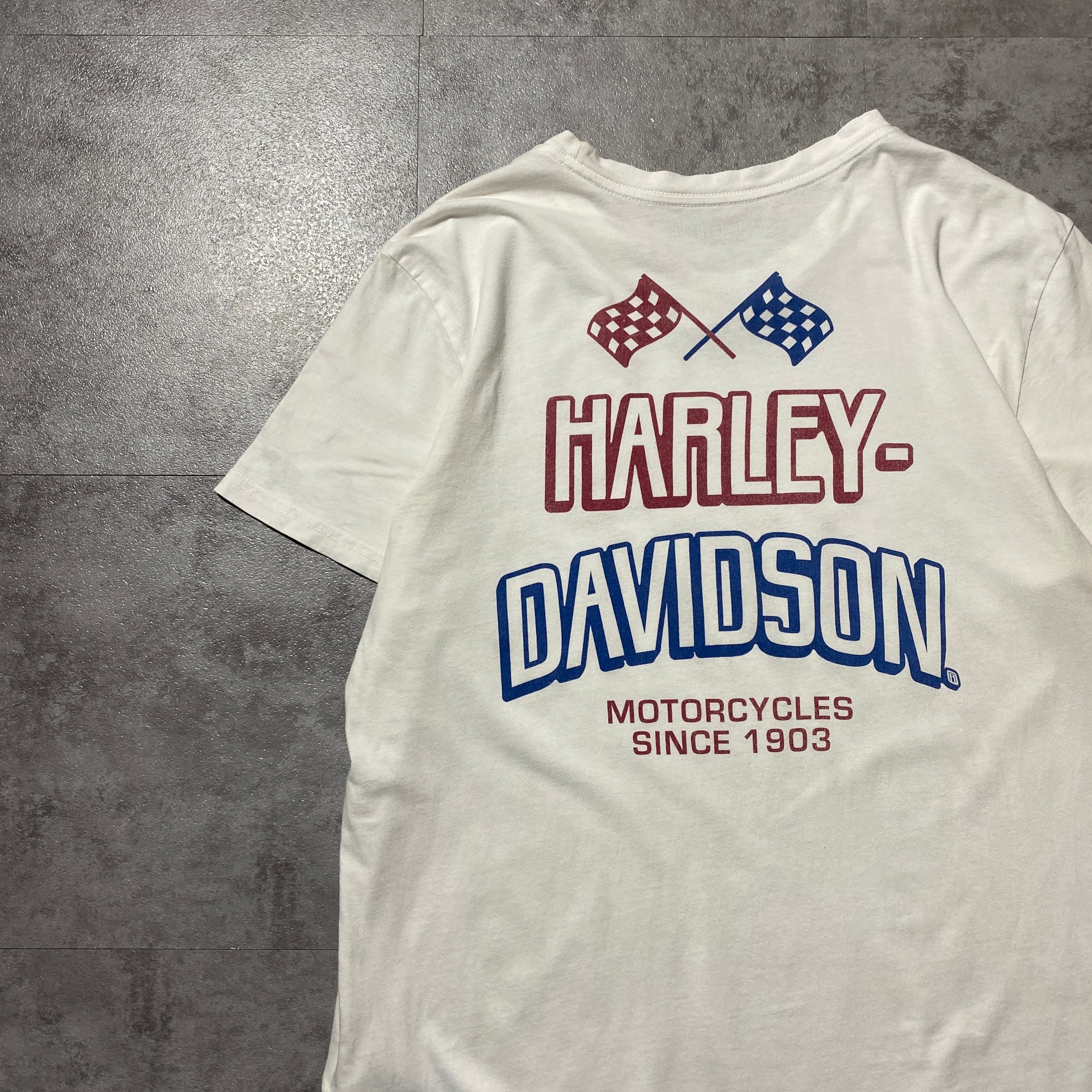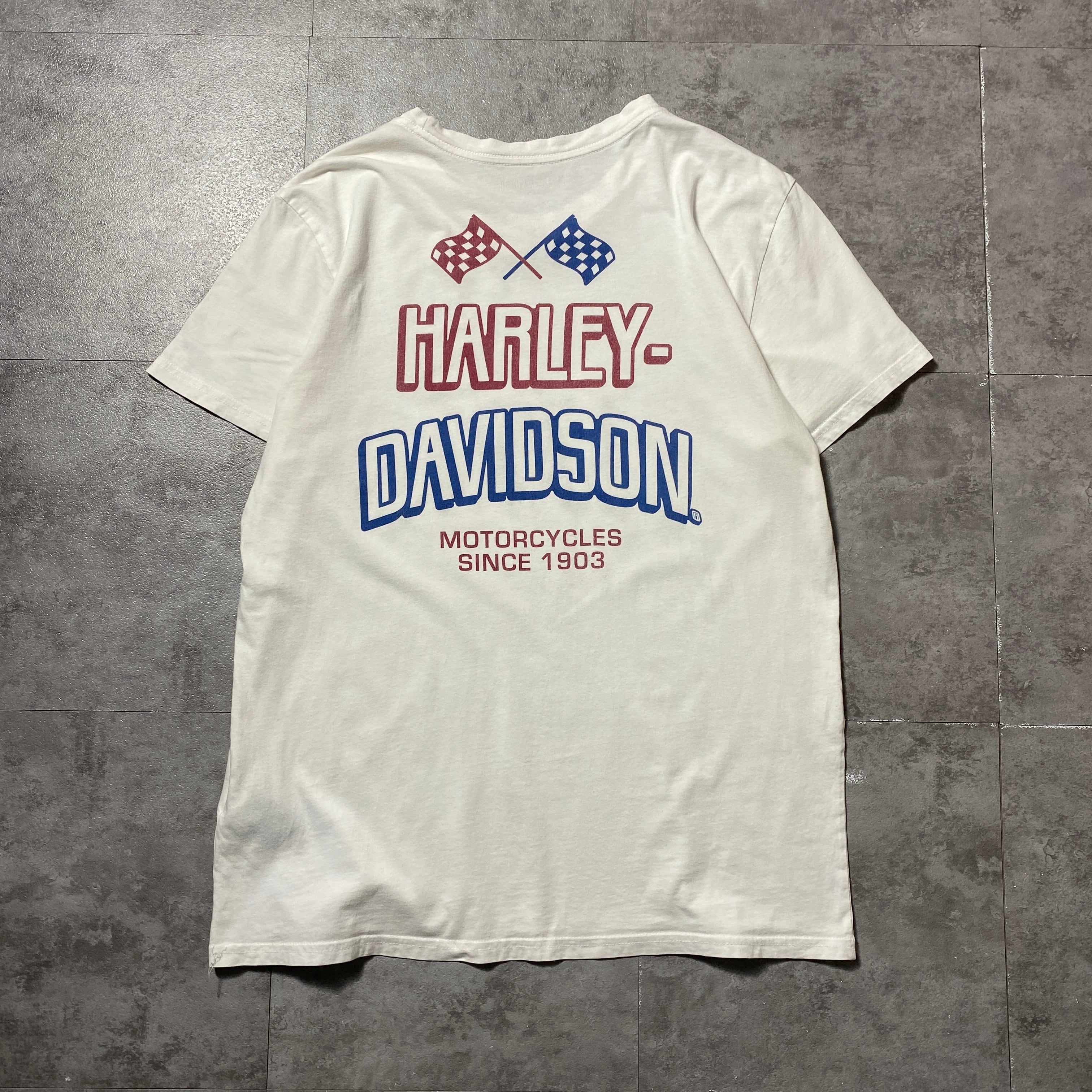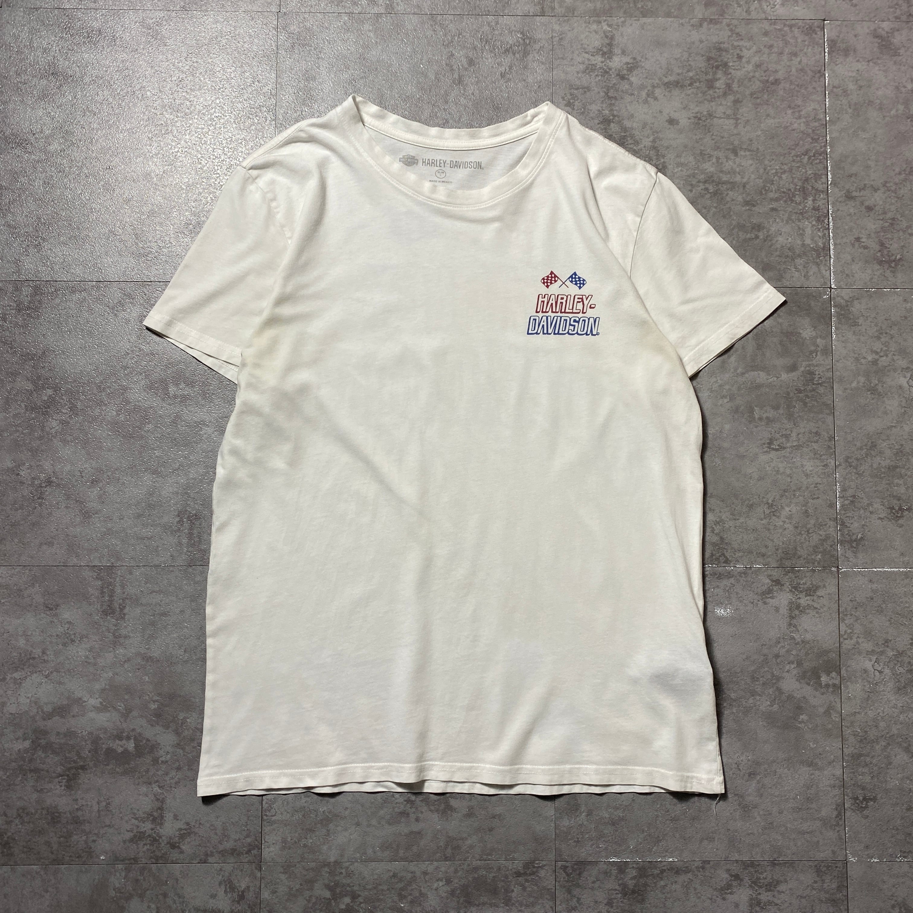 Harley-Davidson ハーレーダビッドソン バックプリント レースフラッグ ホワイト 白 Tシャツ