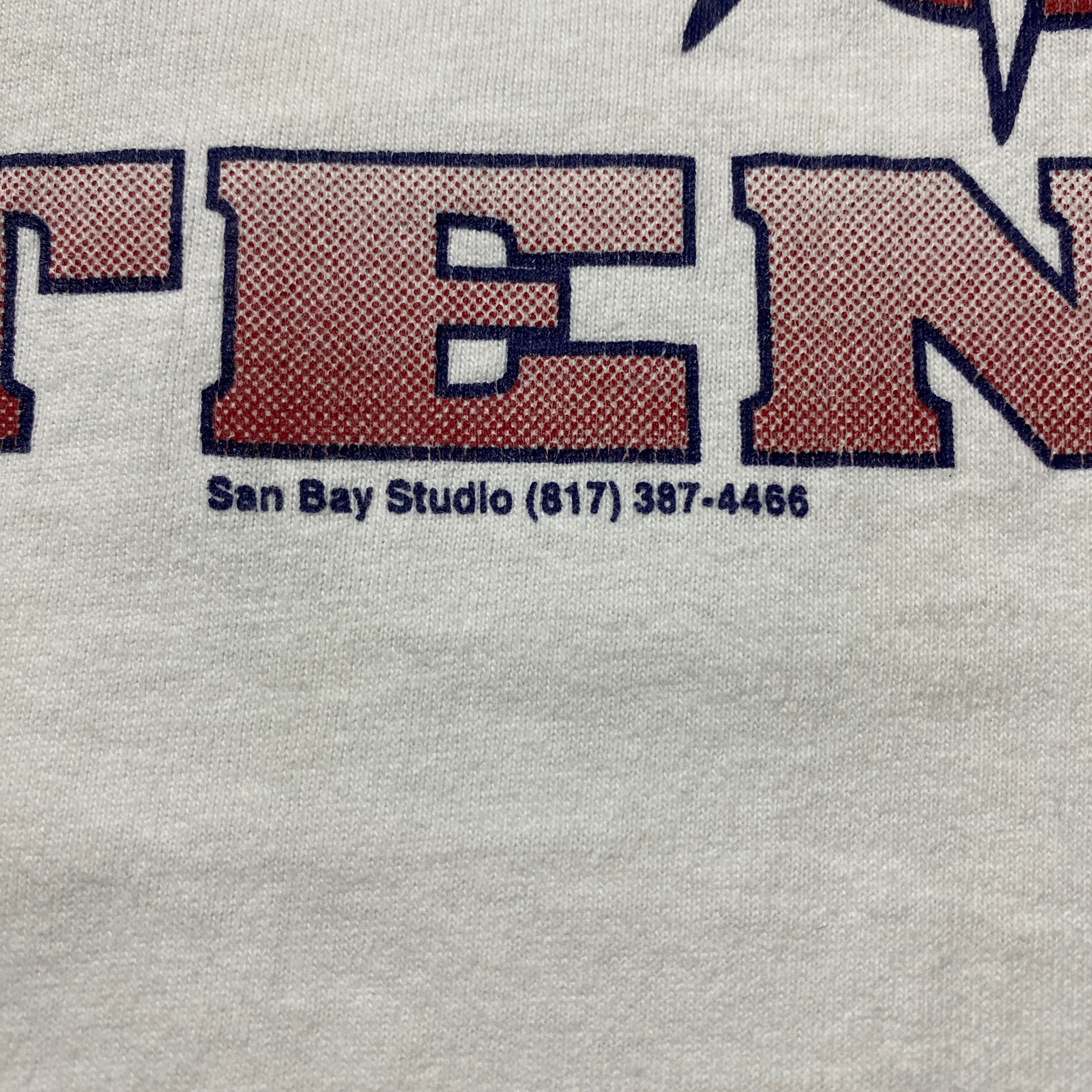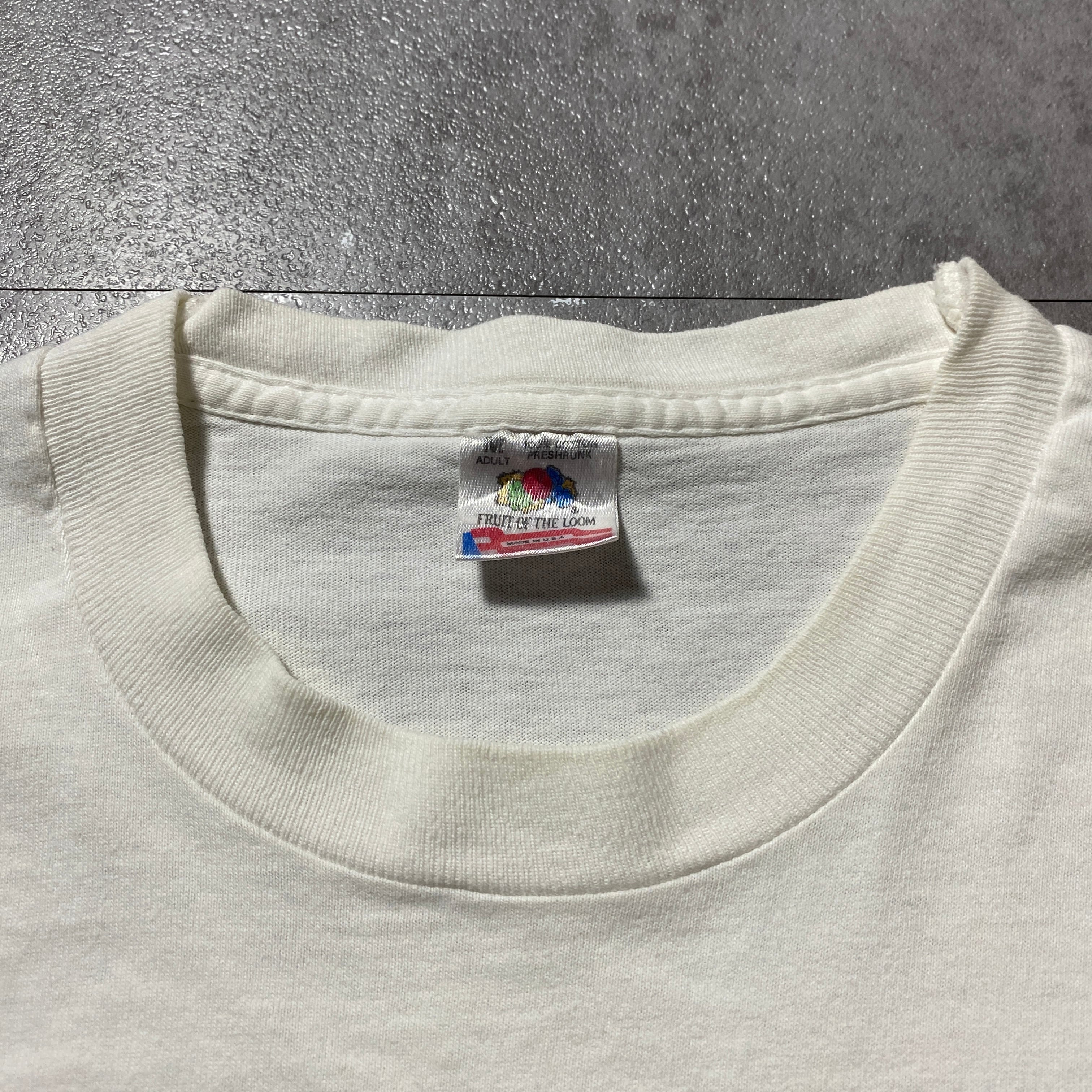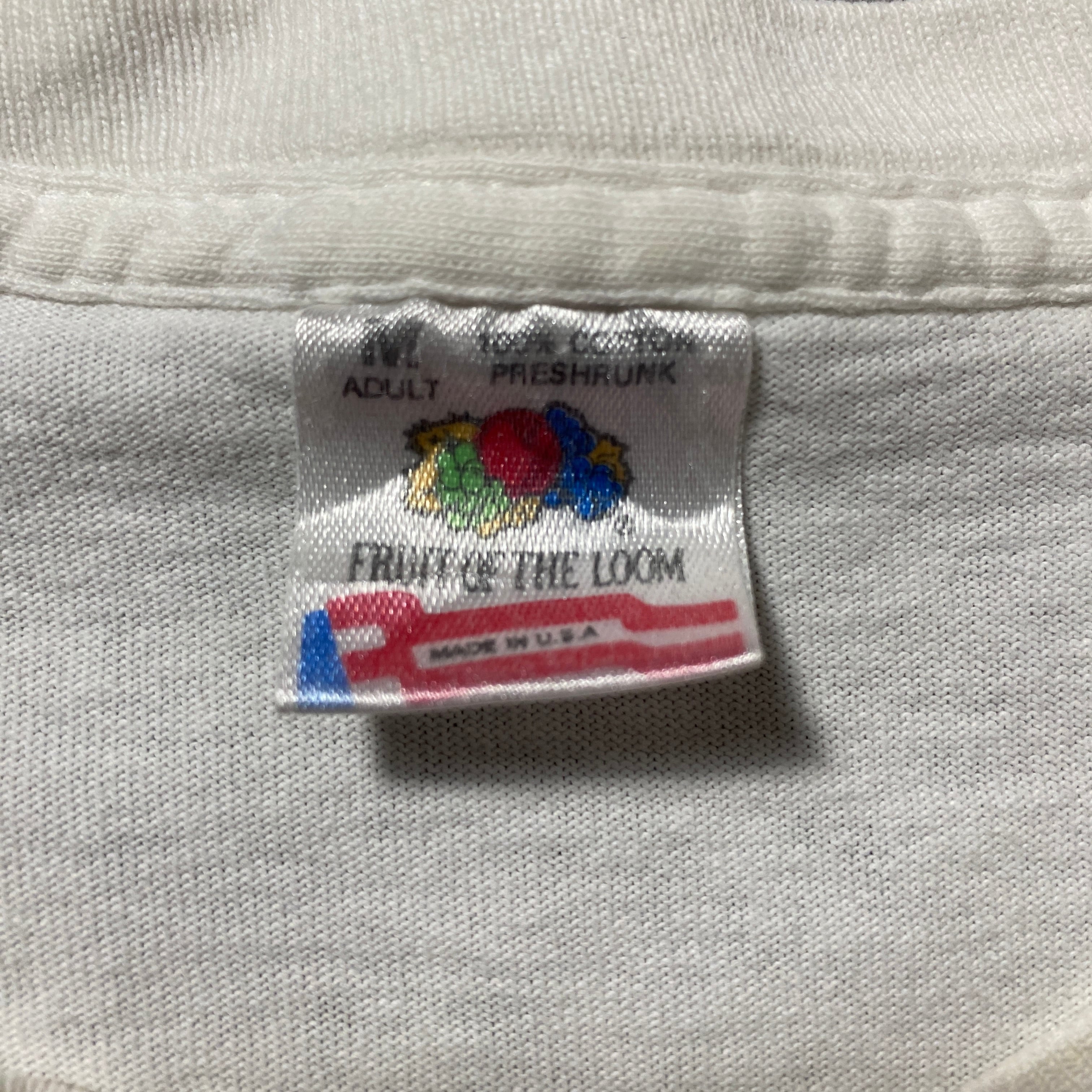 【USA製】90's Fruit Of The Loom PLAINVIEW TENNIS フルーツオブザルームボディ ブルドッグ プリント シングルステッチ ホワイト 白 Tシャツ