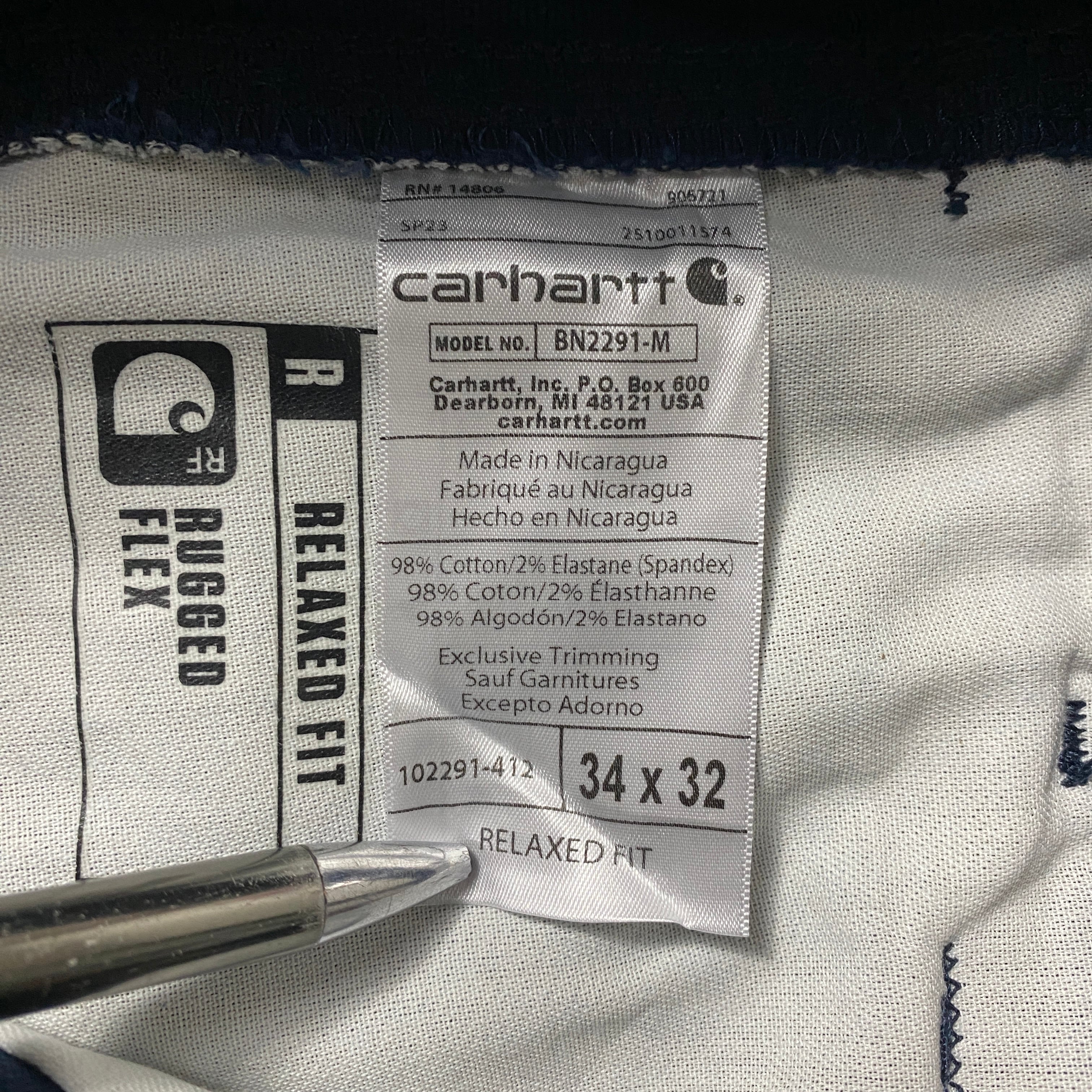 【34×32】carhartt カーハート リラックスフィット ジッパーフライ ネイビー ワークパンツ