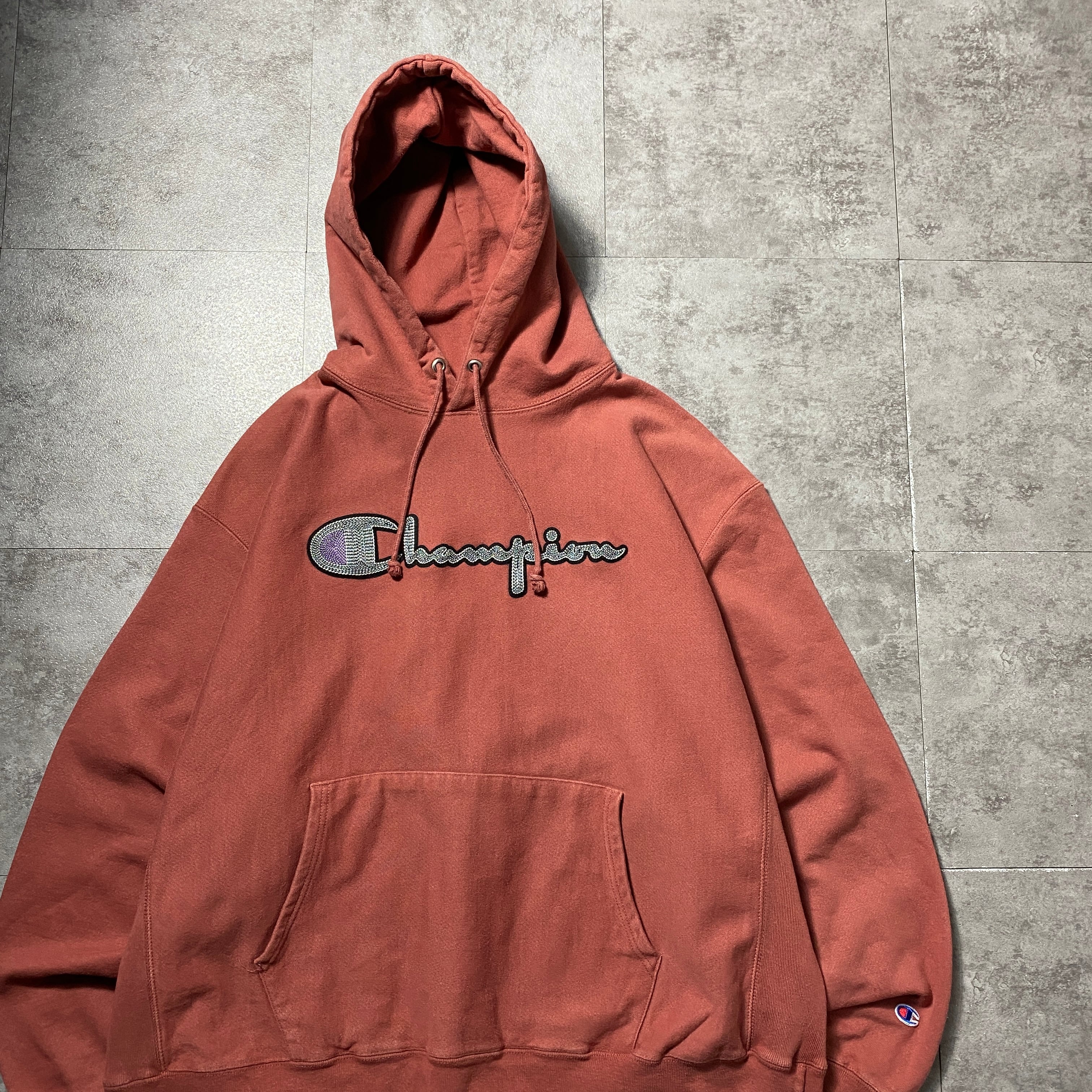 00's Champion チャンピオン リバースウィーブ ワッペンロゴ 2XLサイズ スウェット パーカー フーディ