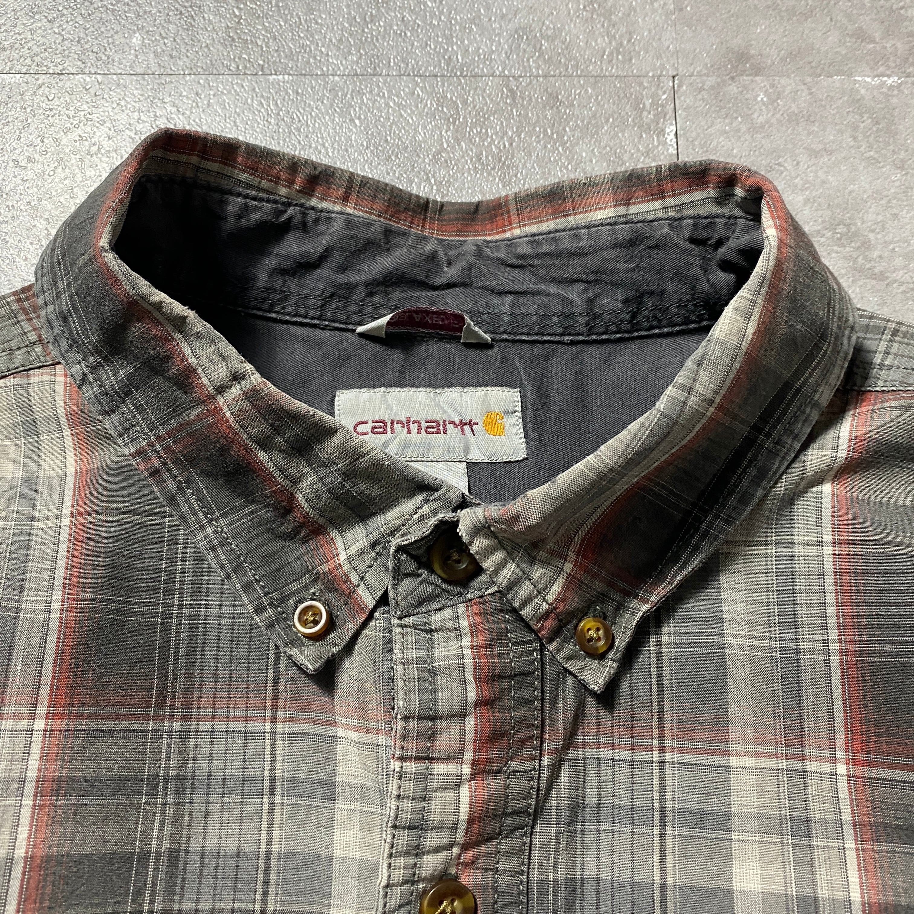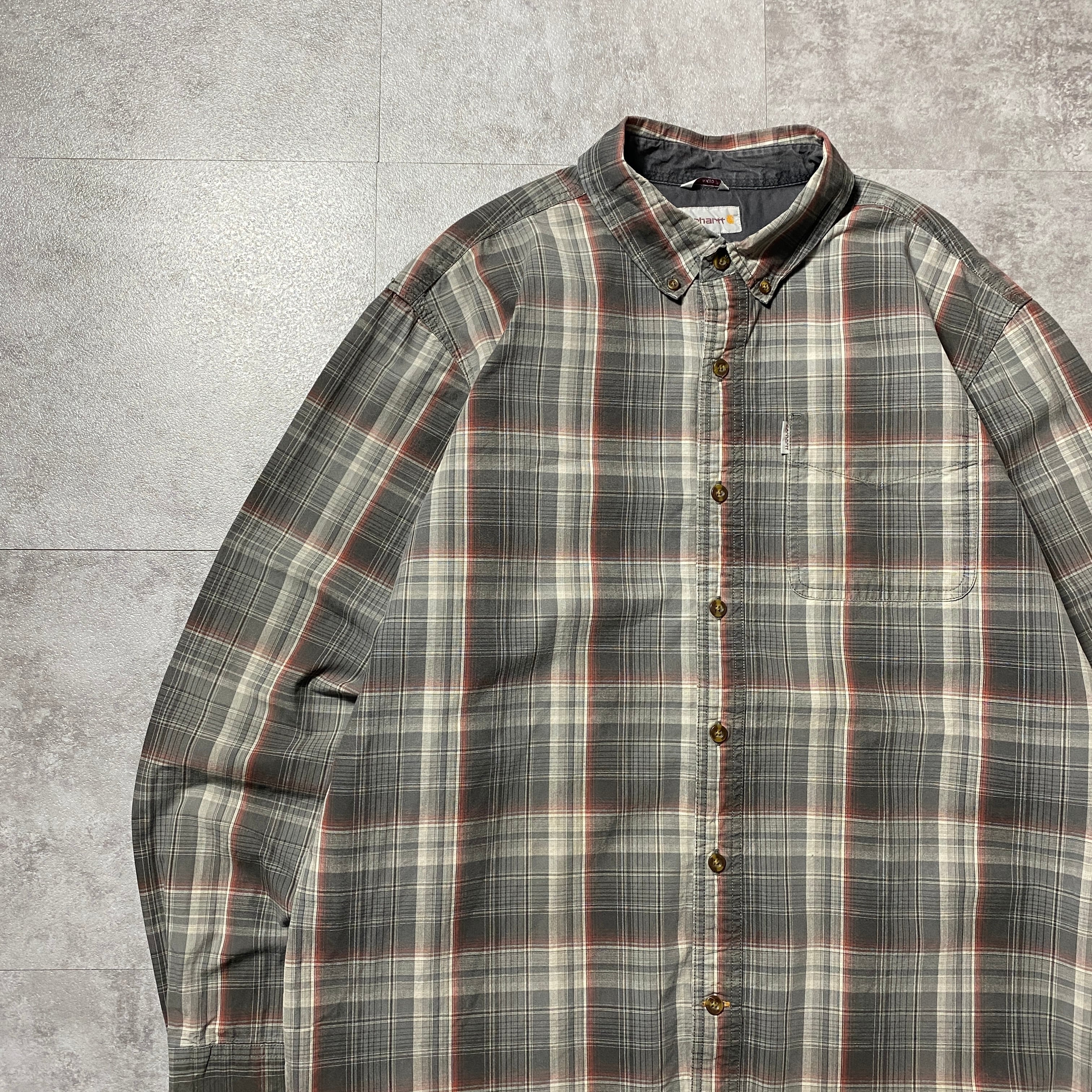 【Size:XL】carhartt カーハート チェック総柄 胸ポケット ボタンダウンシャツ