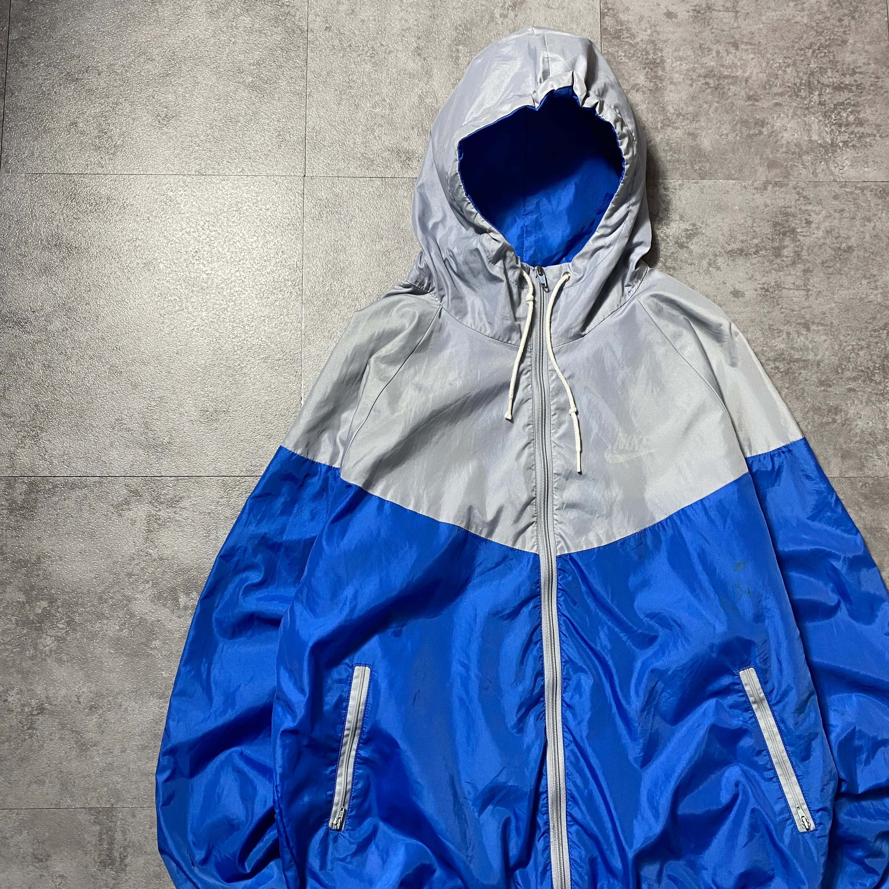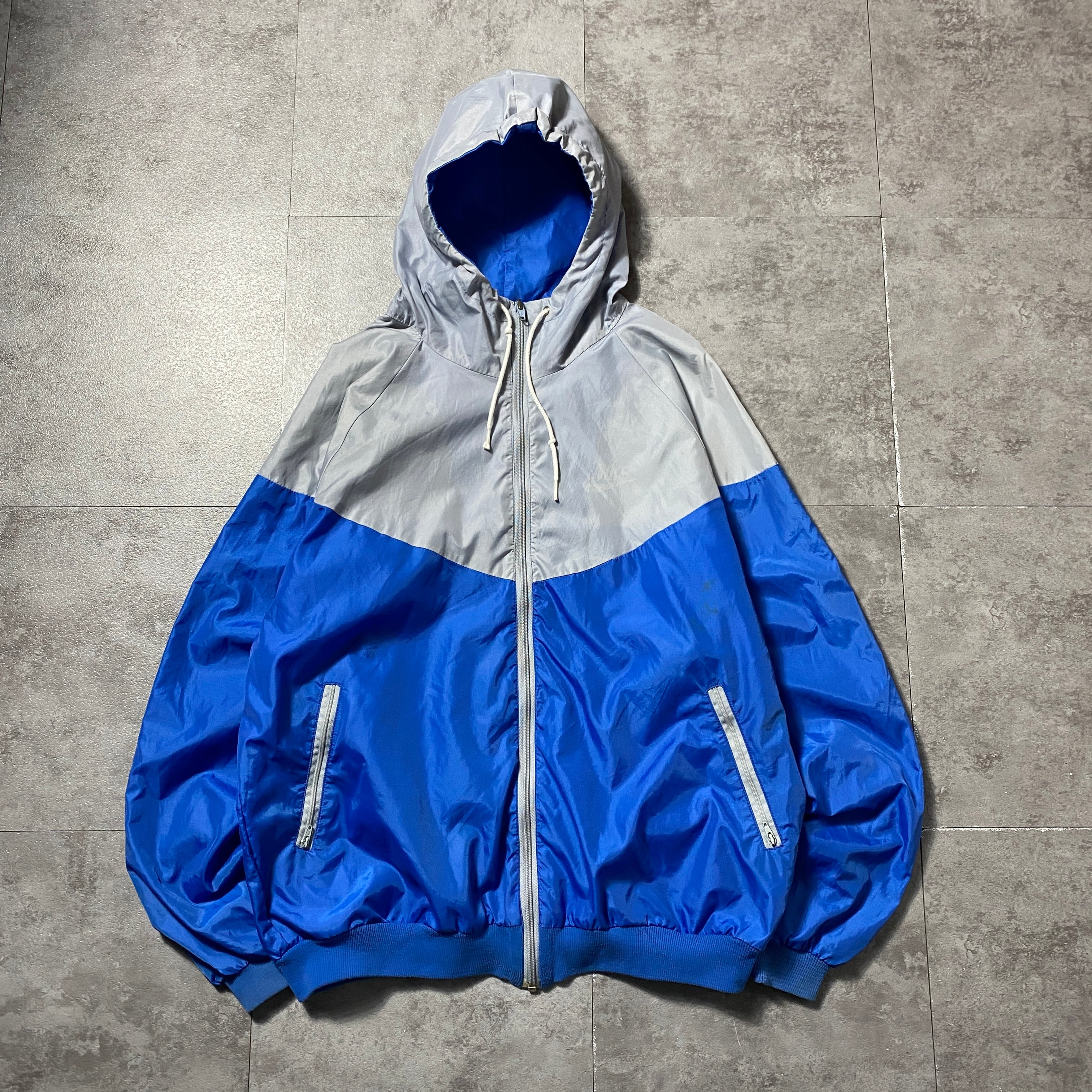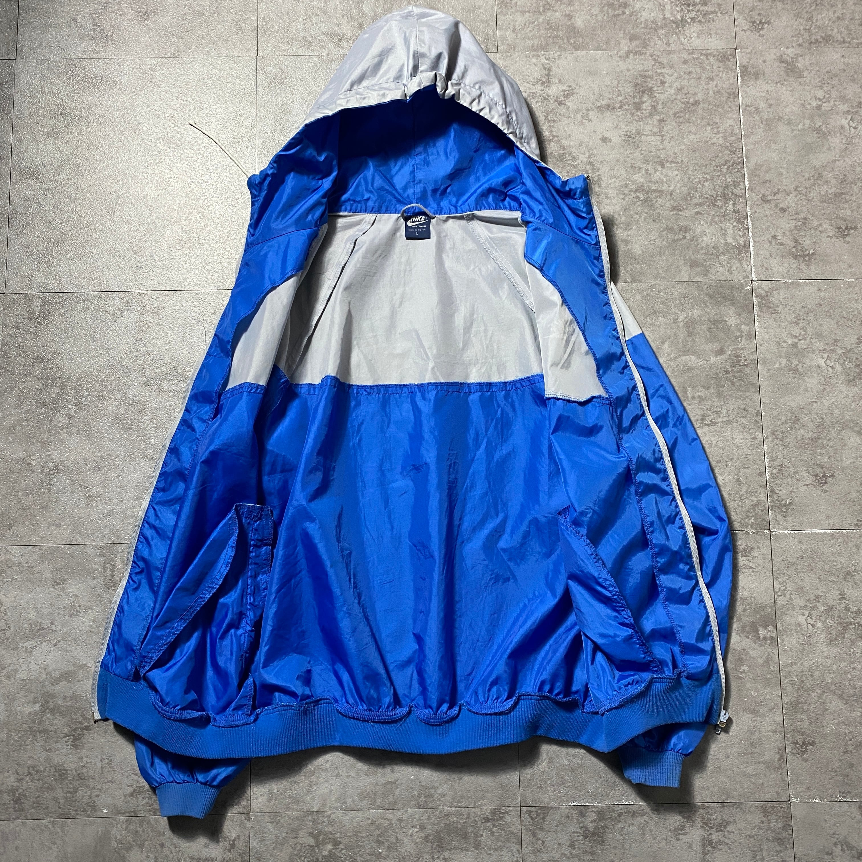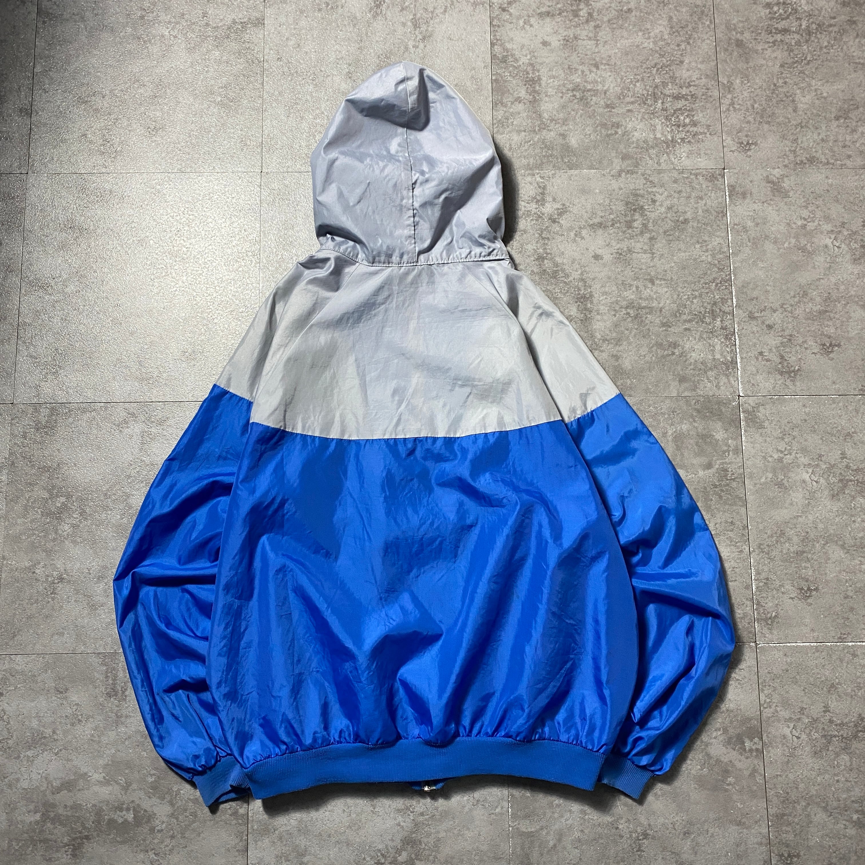 【イギリス製】80's NIKE ナイキ 紺タグ スウォッシュ ワンポイント バイカラー フード付 ナイロンジャケット