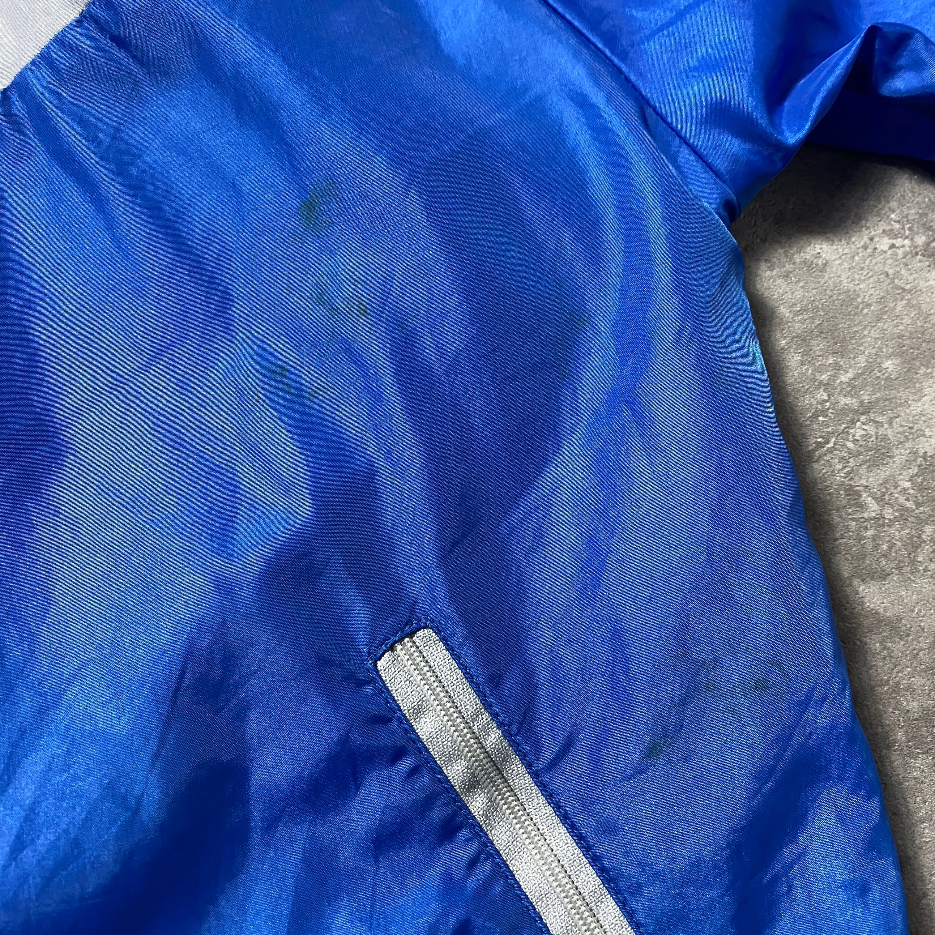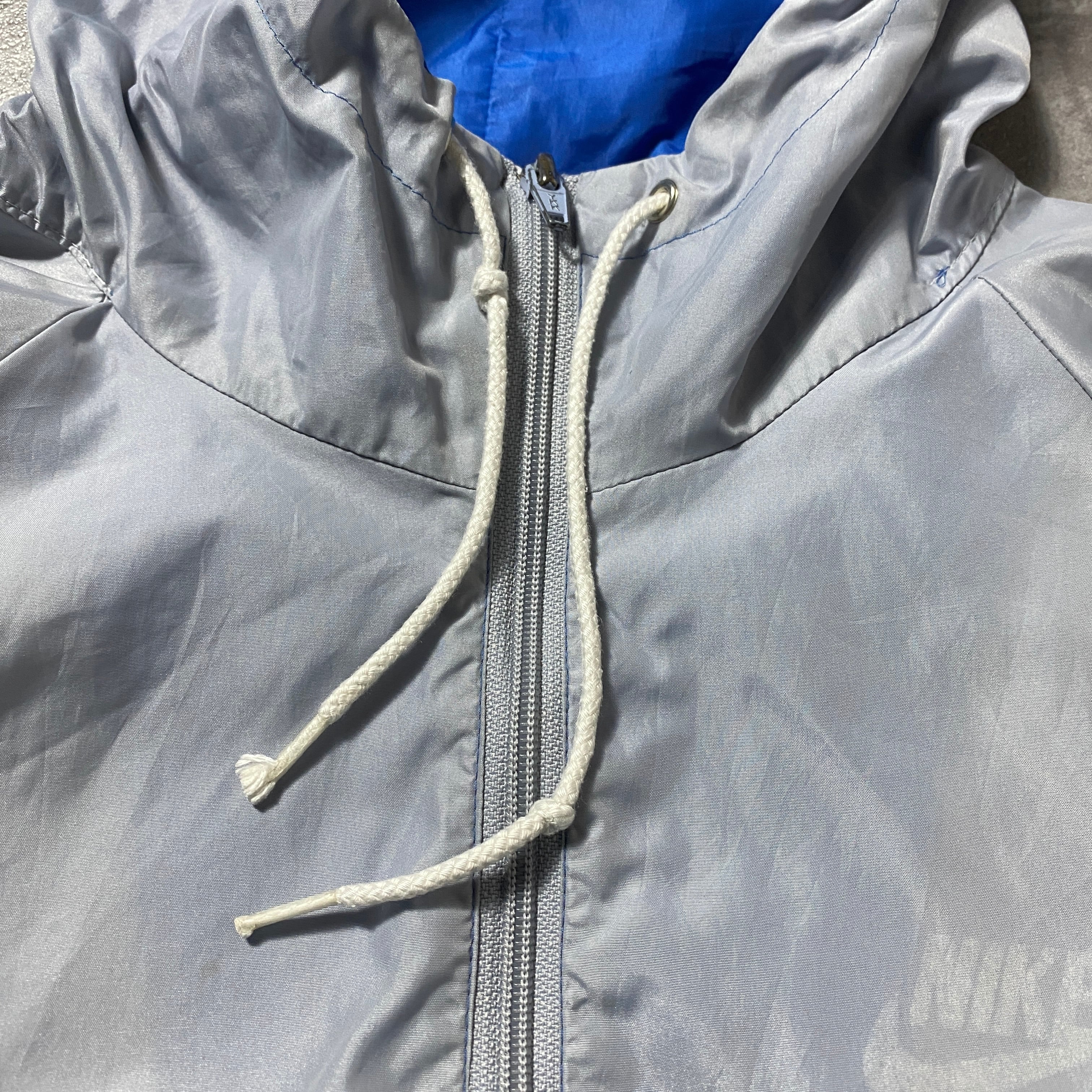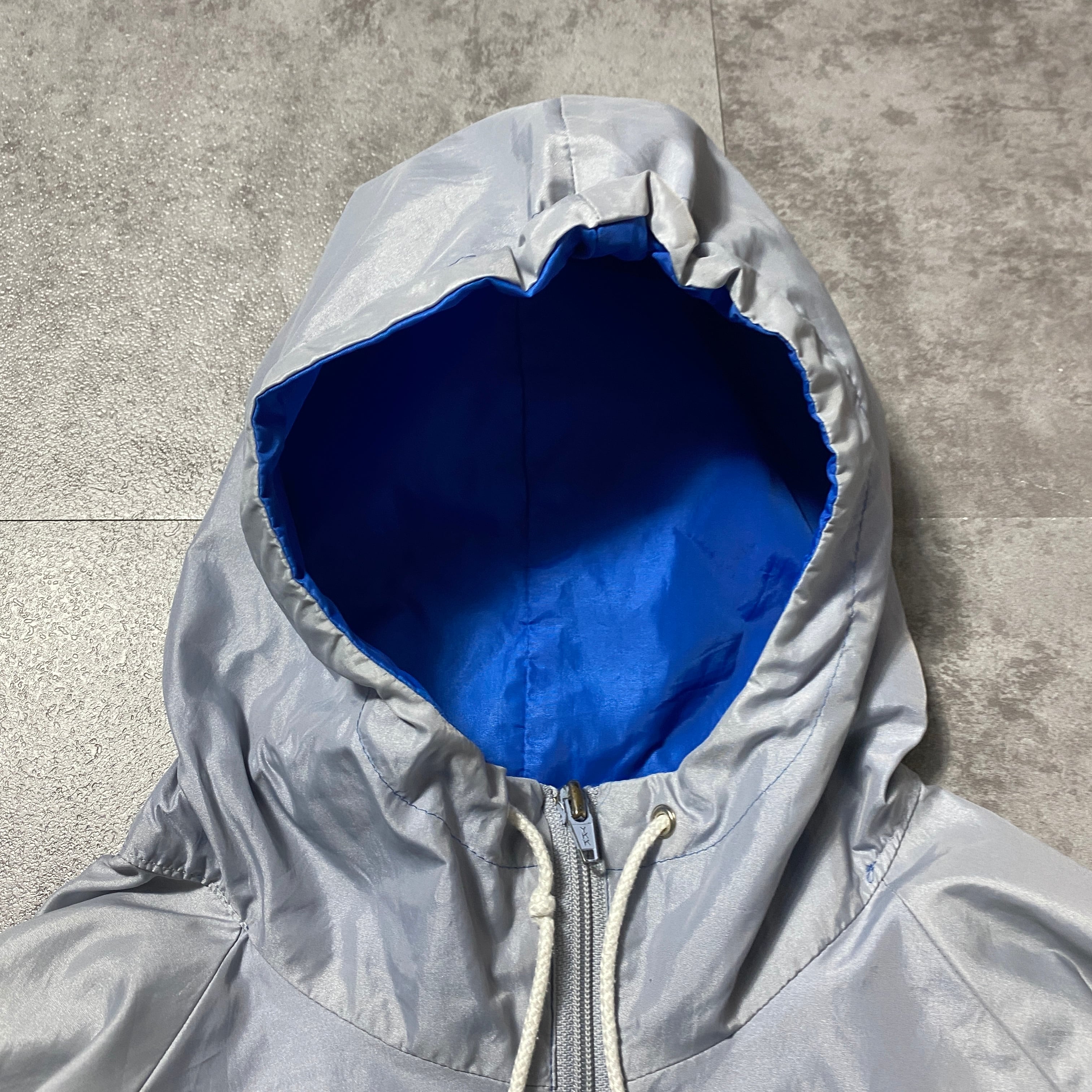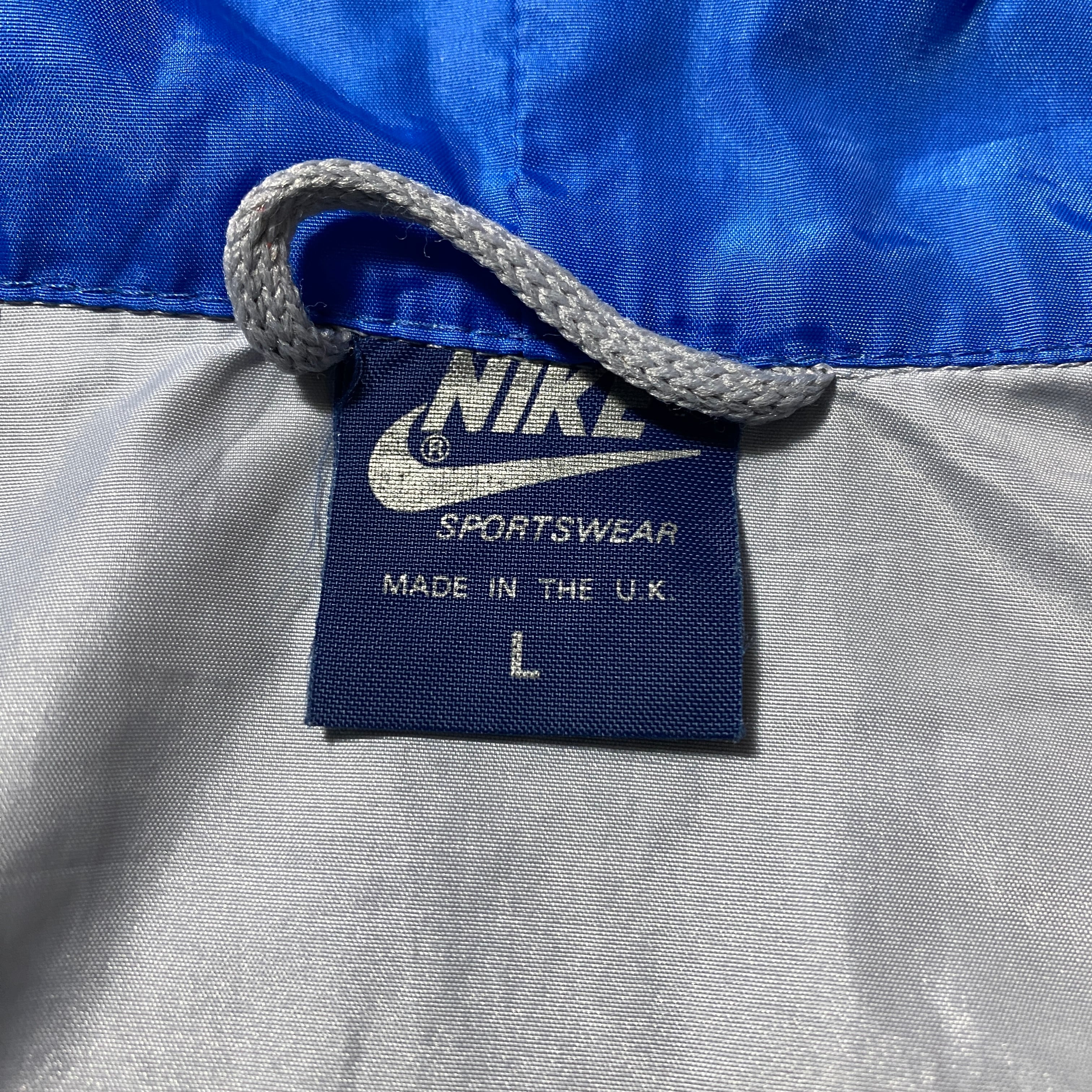 【イギリス製】80's NIKE ナイキ 紺タグ スウォッシュ ワンポイント バイカラー フード付 ナイロンジャケット