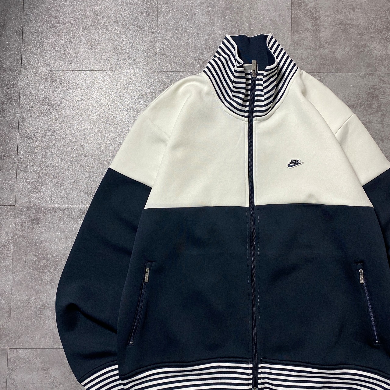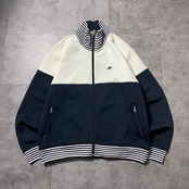 【Size:XL】00's NIKE ナイキ スウォッシュ ワンポイント ワッペン ラインリブ ジップ付ポケット バイカラー ジャージ トラックジャケット