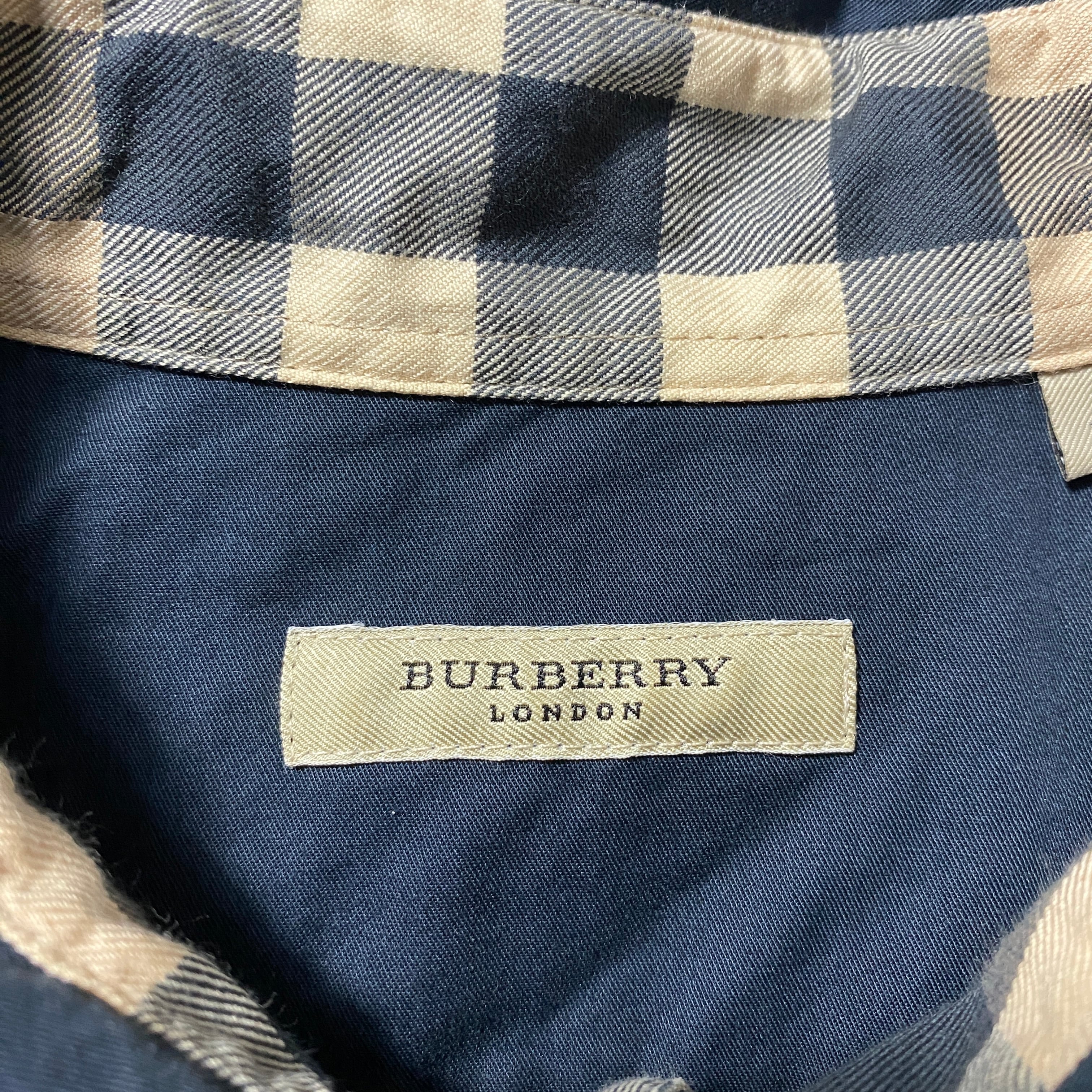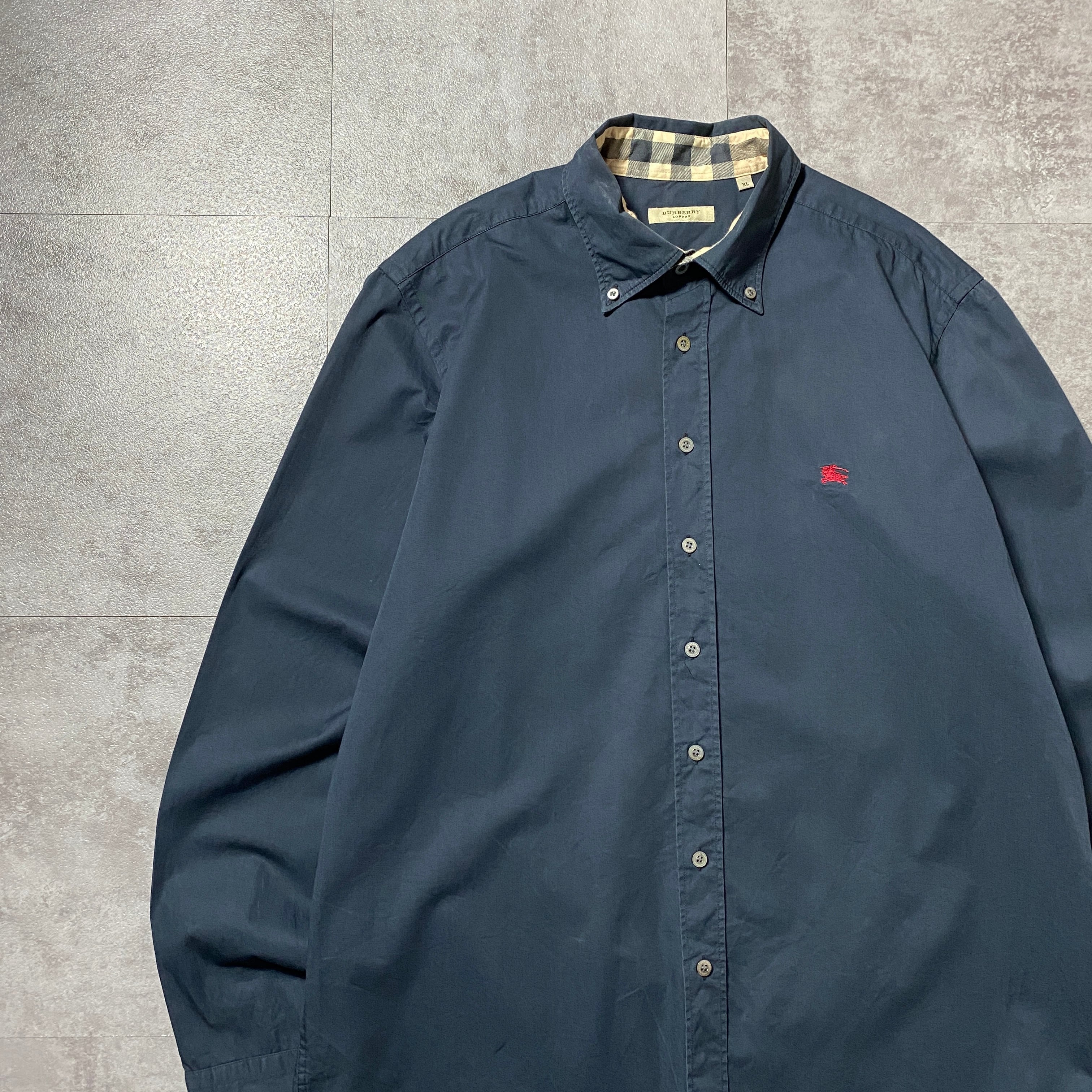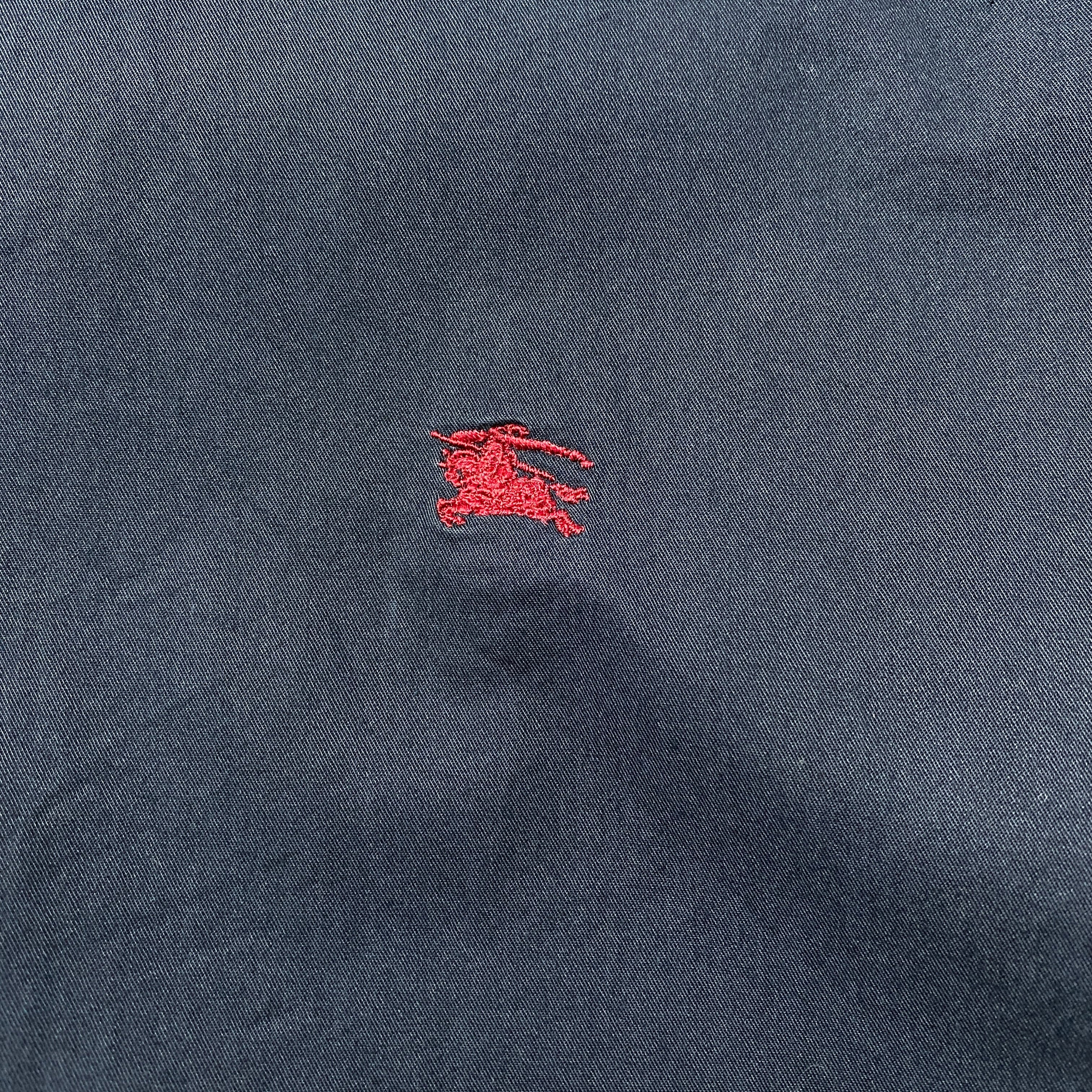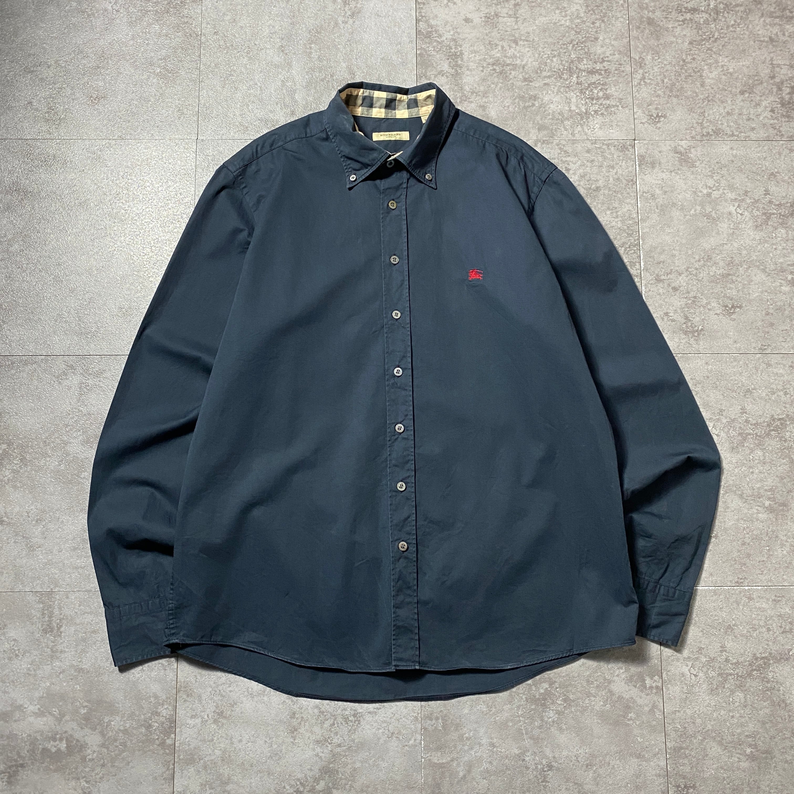 【トルコ製】BURBERRY LONDON バーバリーロンドン 刺繍ワンポイント ホースロゴ 襟元チェック ブラック ボタンダウンシャツ