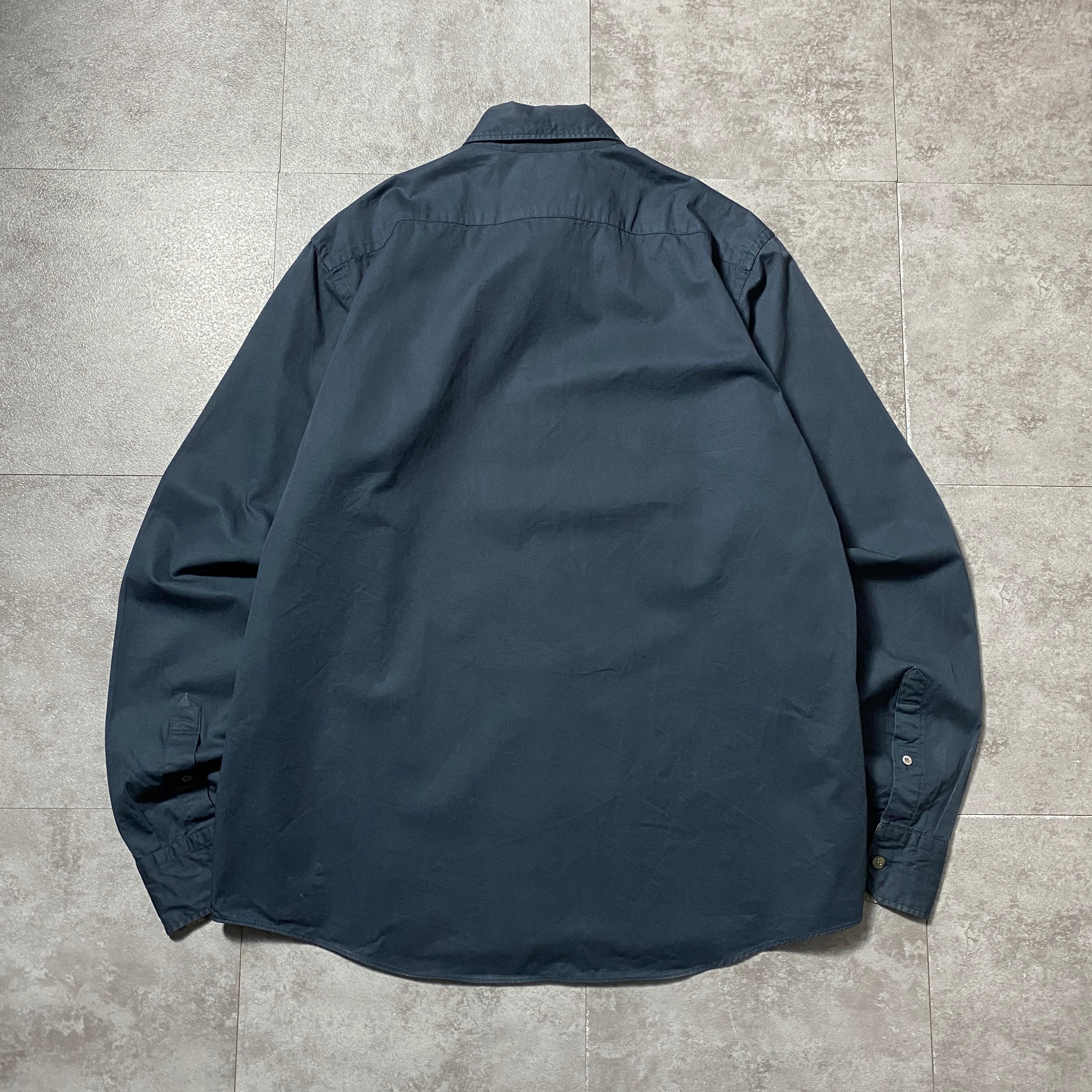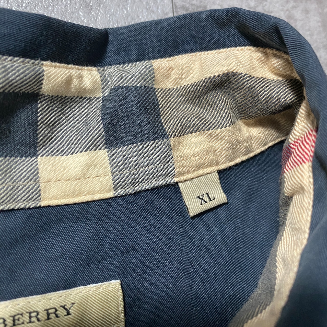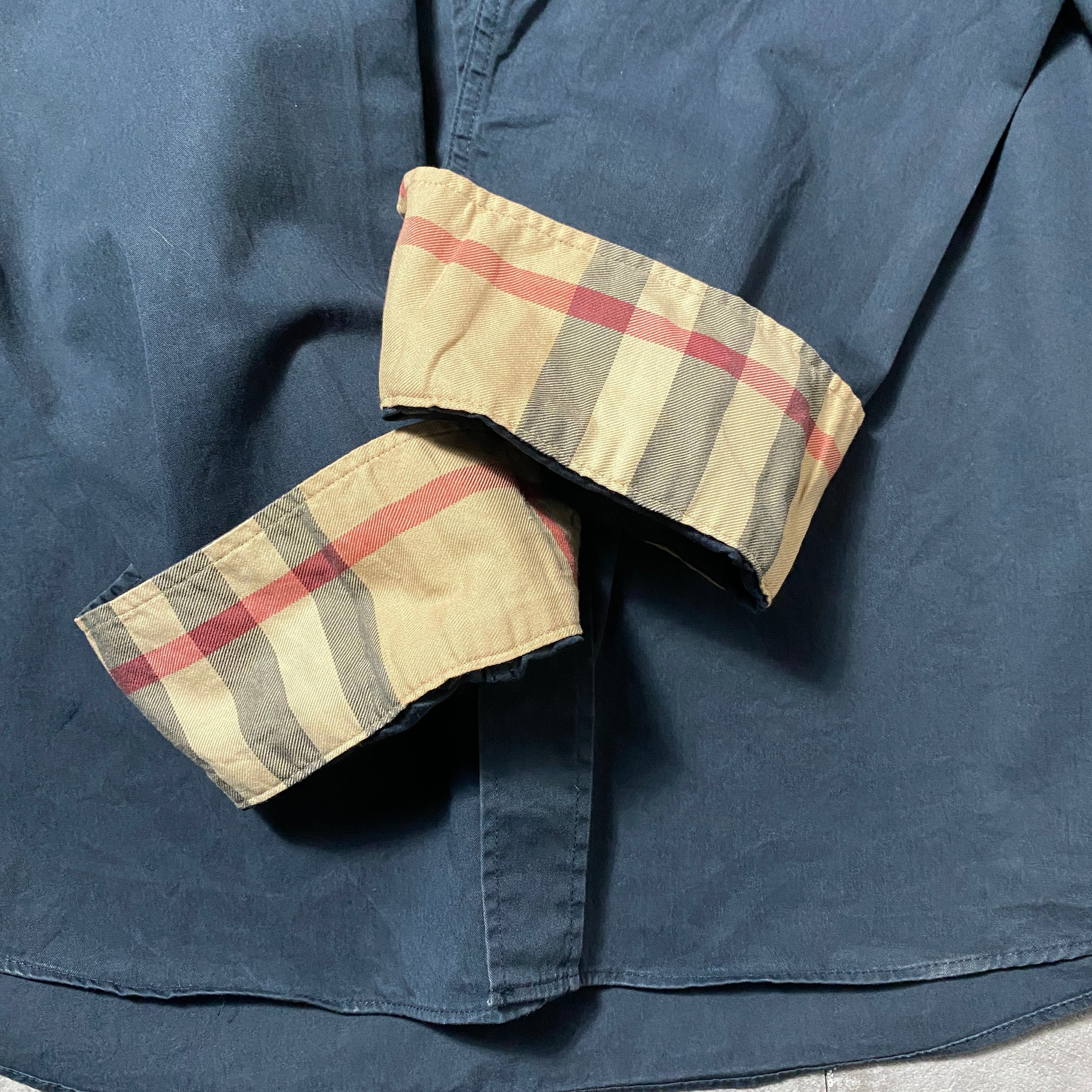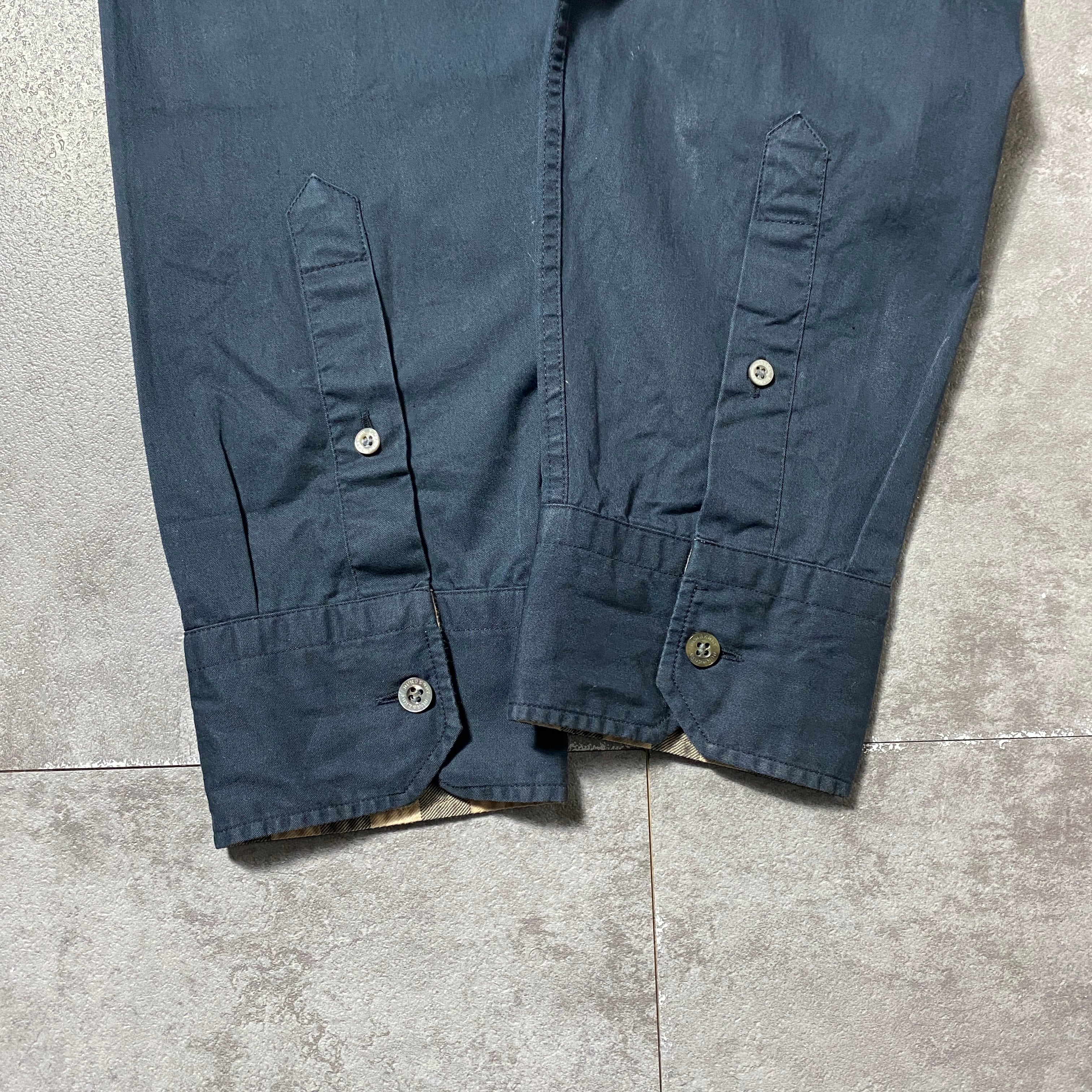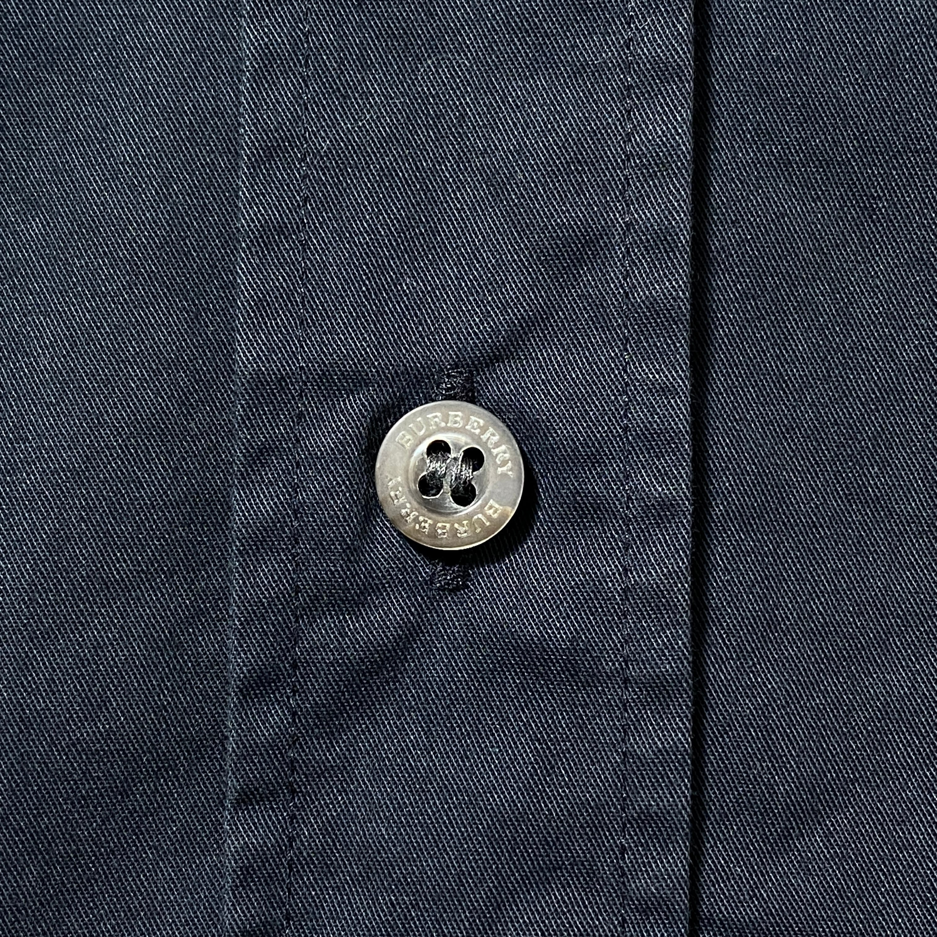 【トルコ製】BURBERRY LONDON バーバリーロンドン 刺繍ワンポイント ホースロゴ 襟元チェック ブラック ボタンダウンシャツ