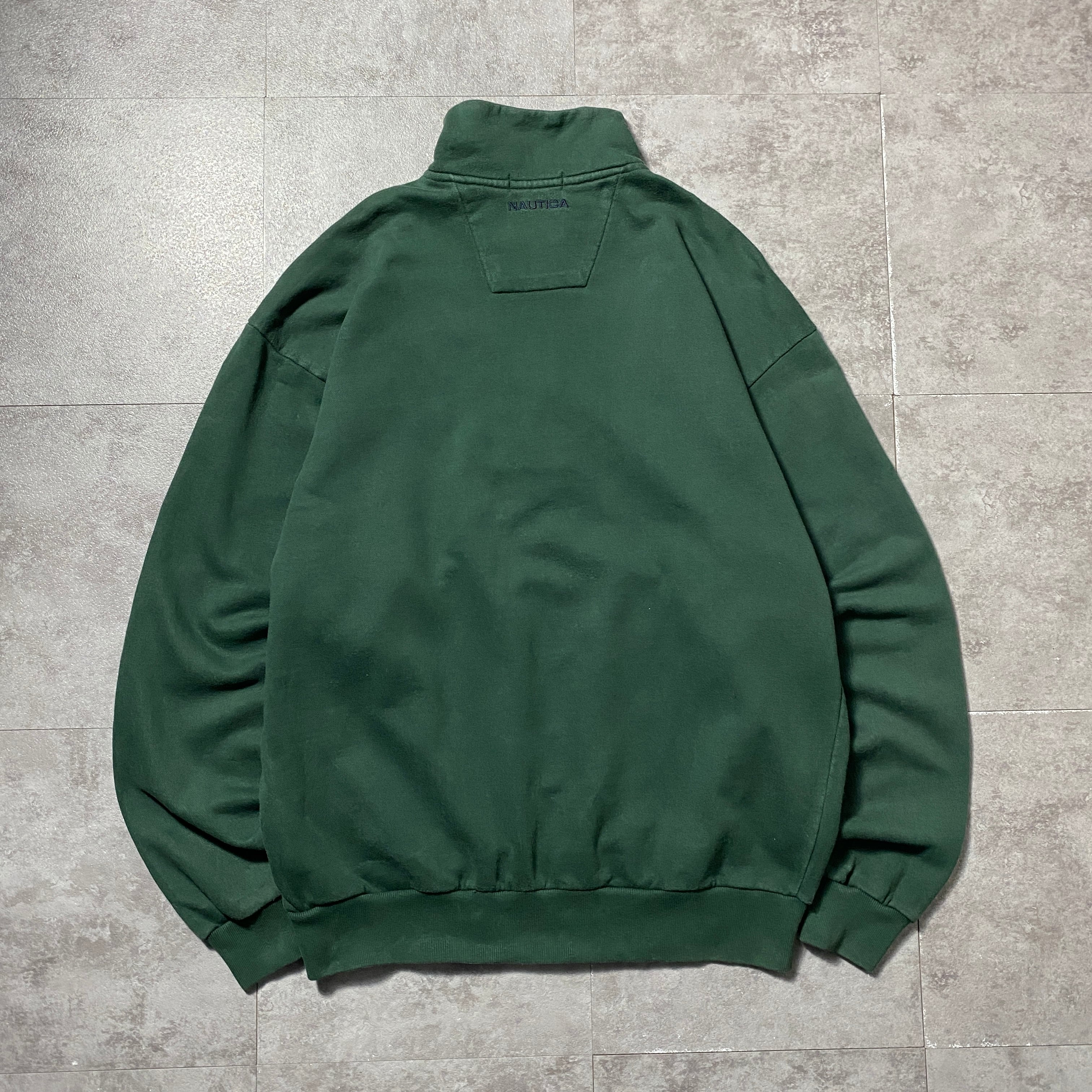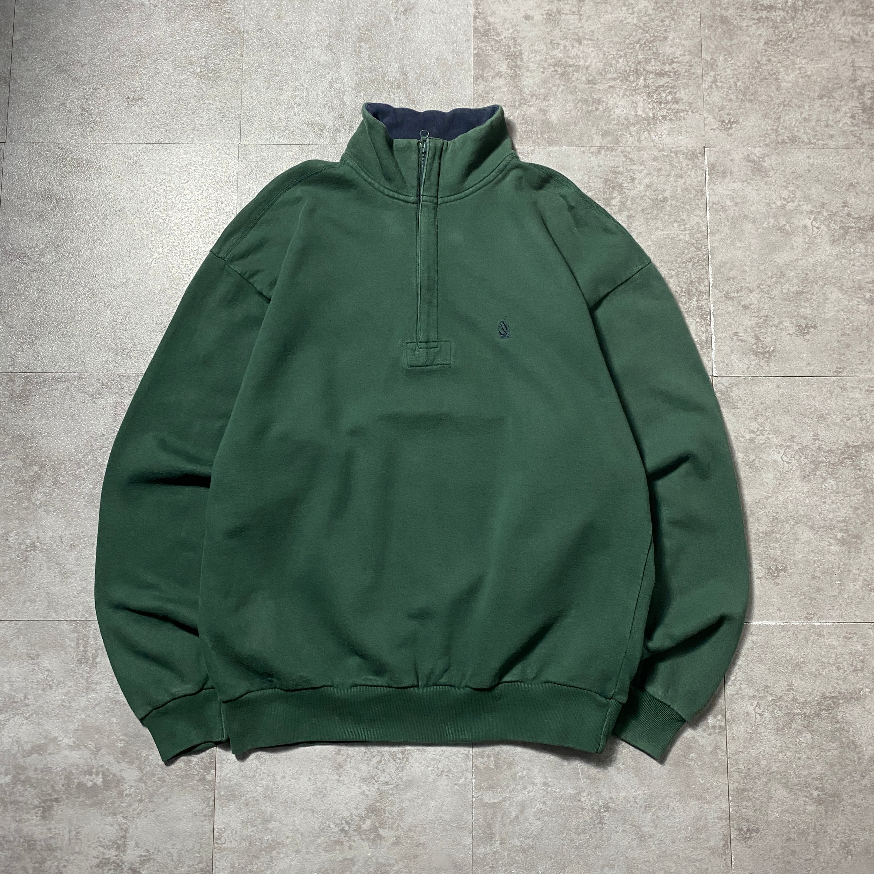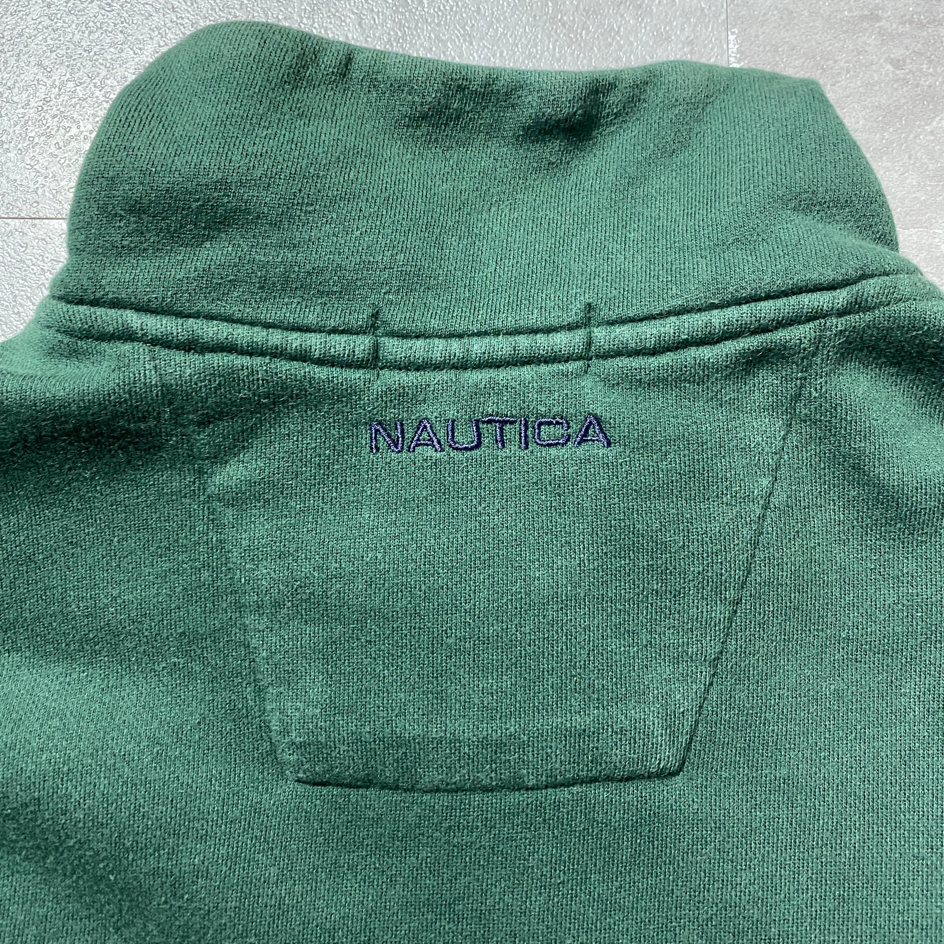 90's nautica ノーティカ 旧タグ ハーフジップ 刺繍ワンポイント グリーン スウェット トレーナー