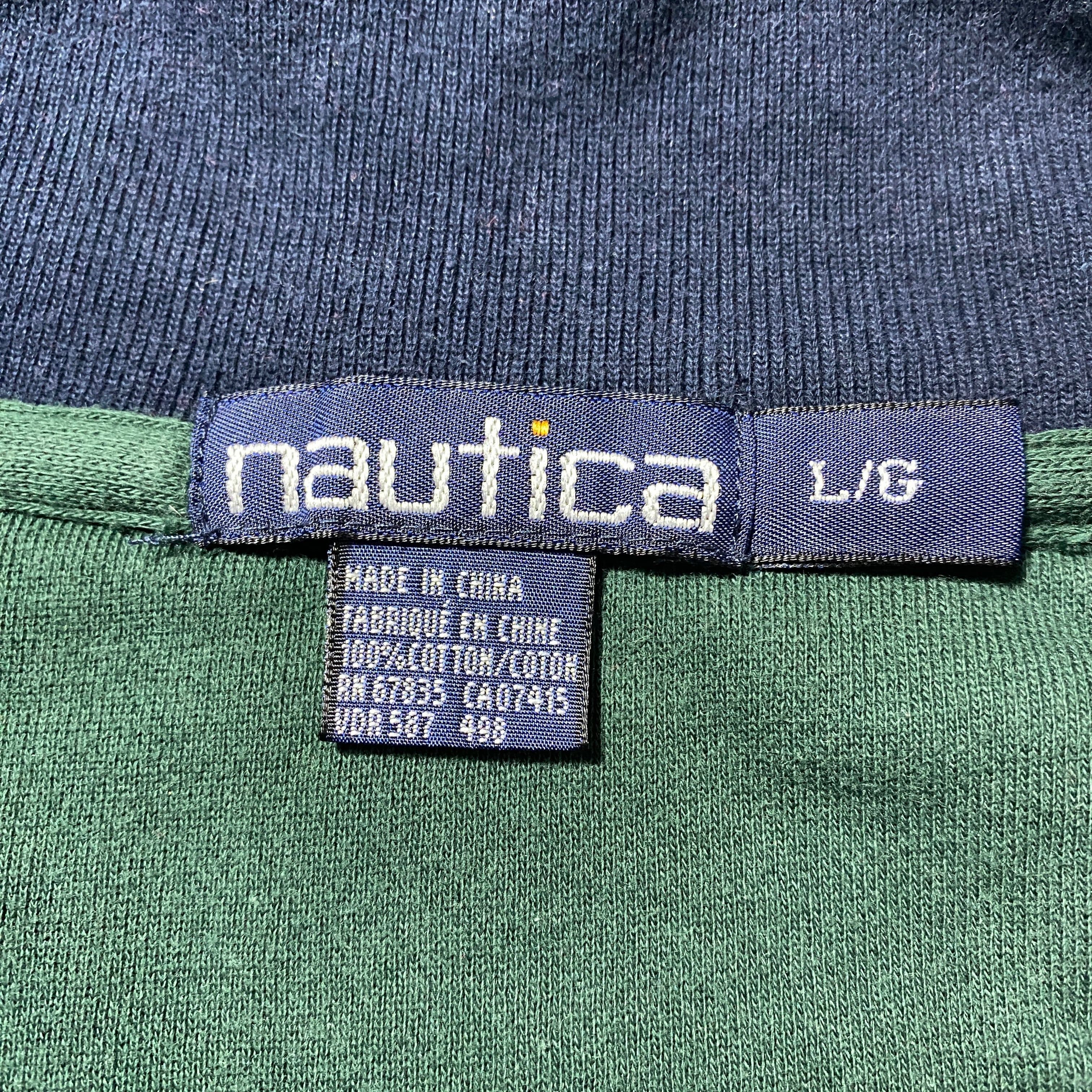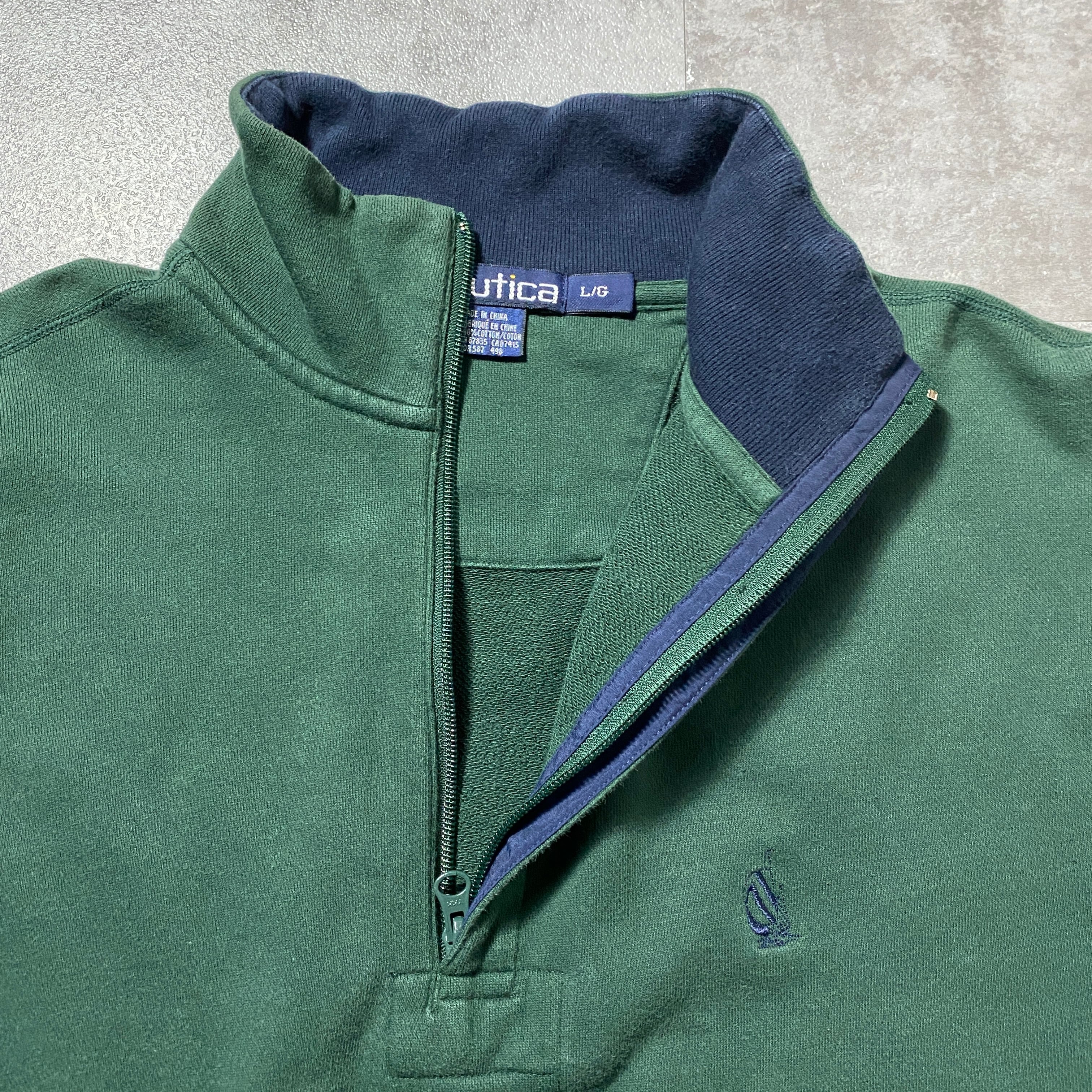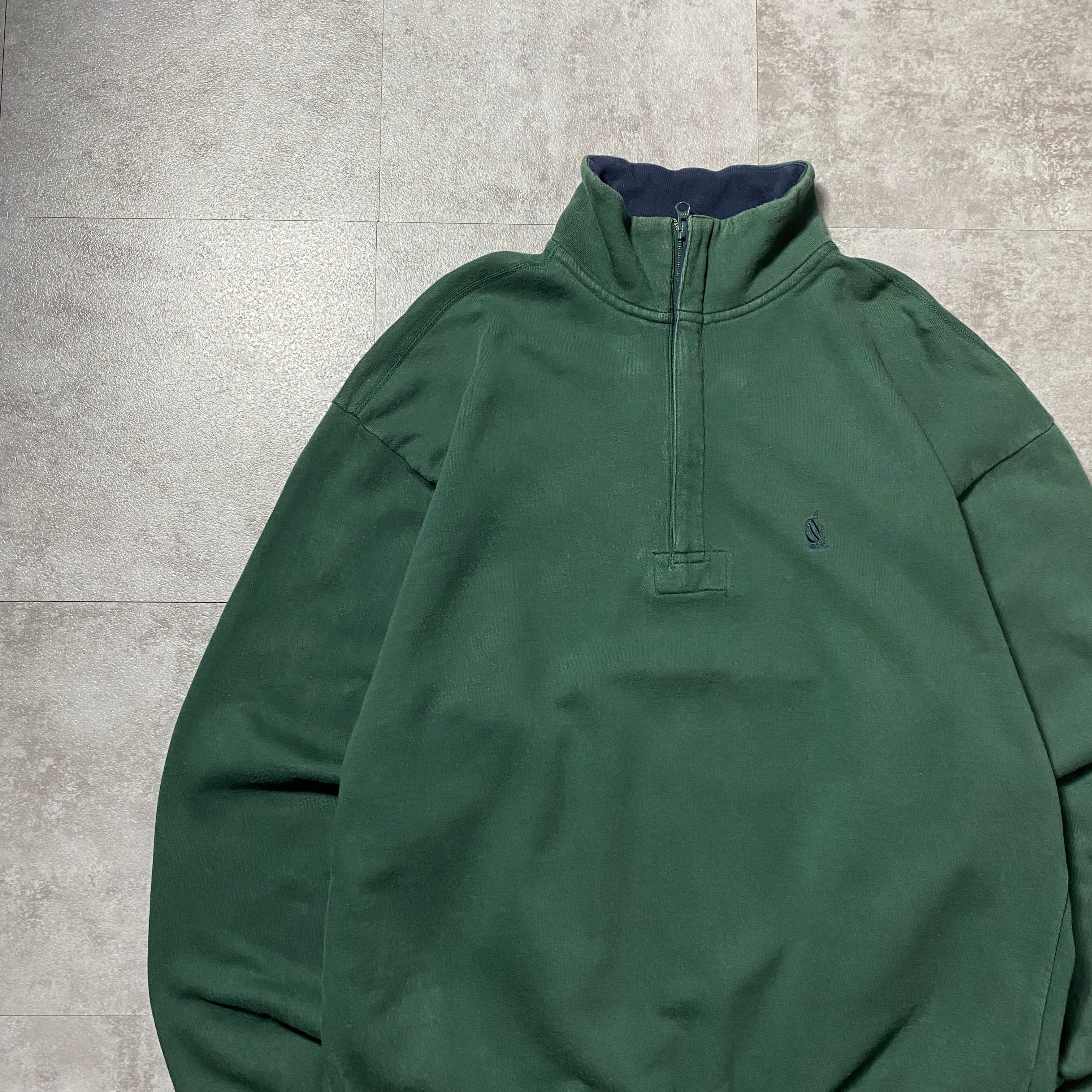 90's nautica ノーティカ 旧タグ ハーフジップ 刺繍ワンポイント グリーン スウェット トレーナー