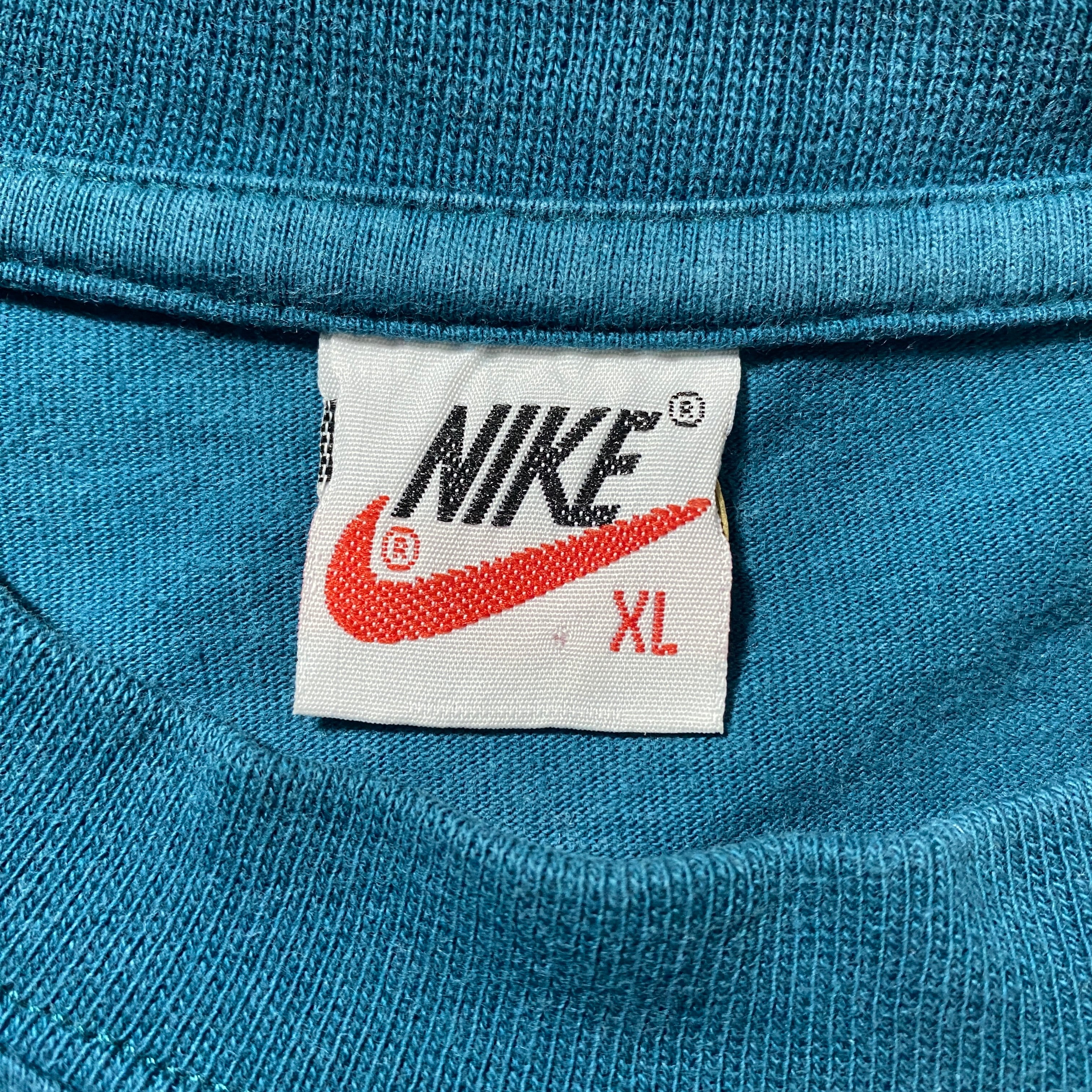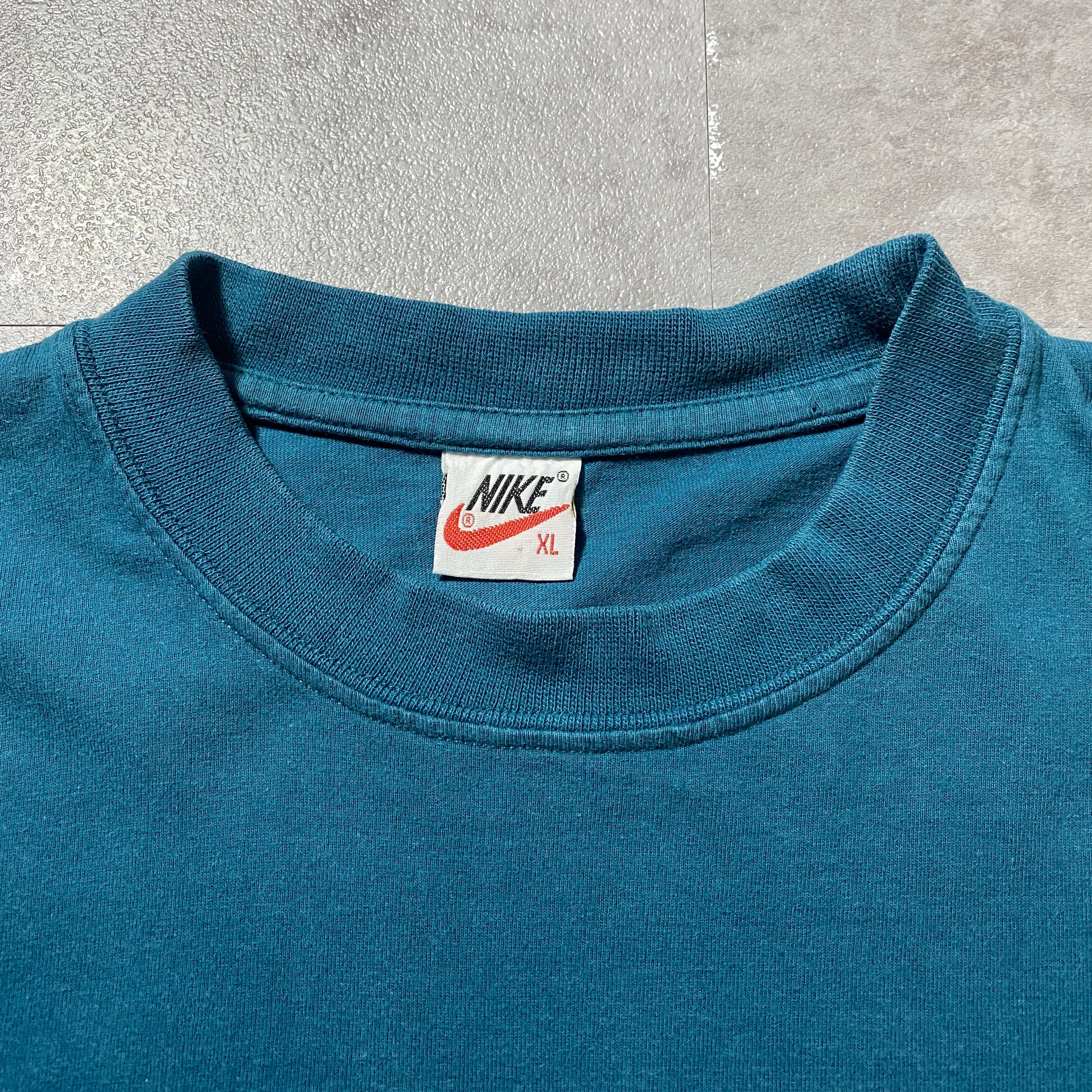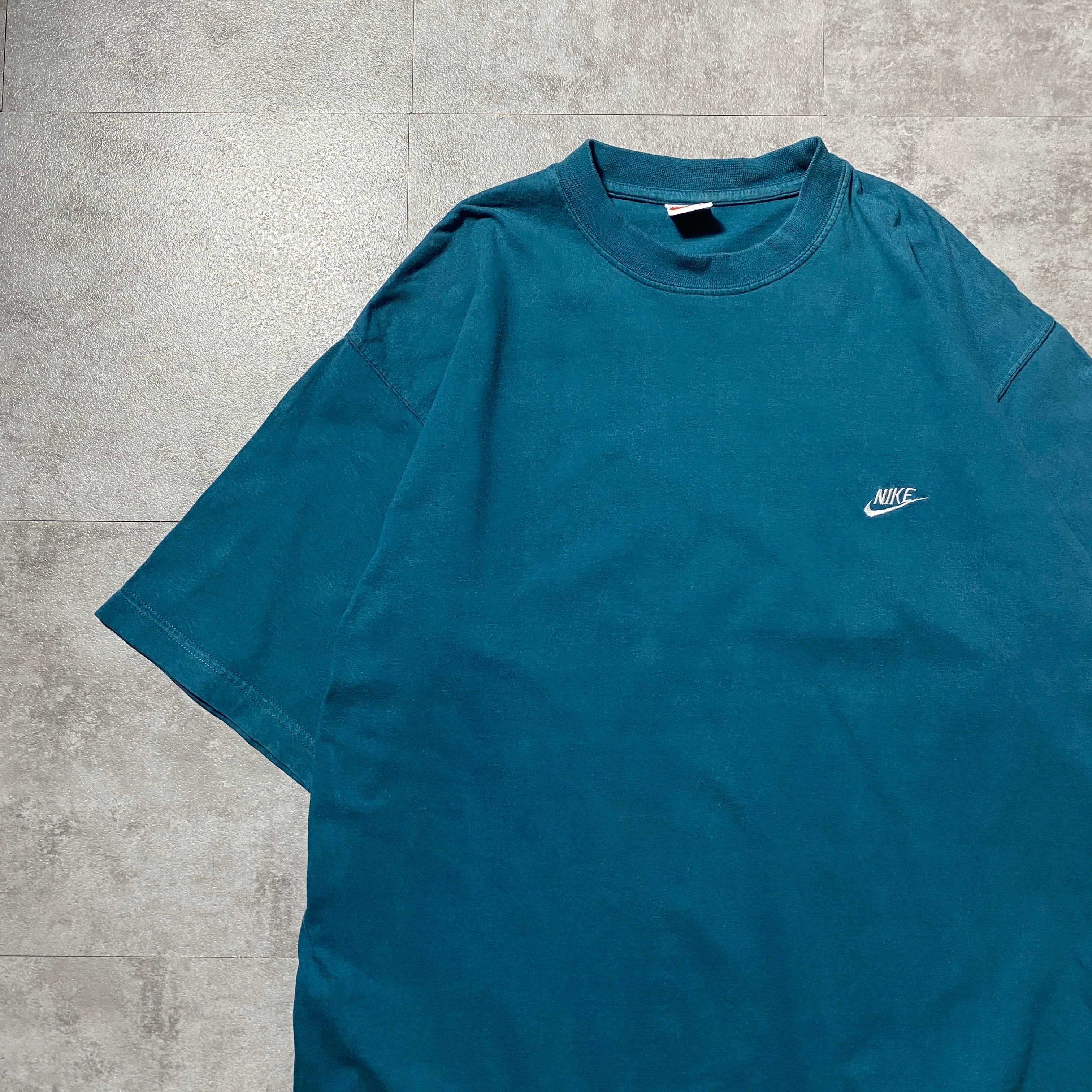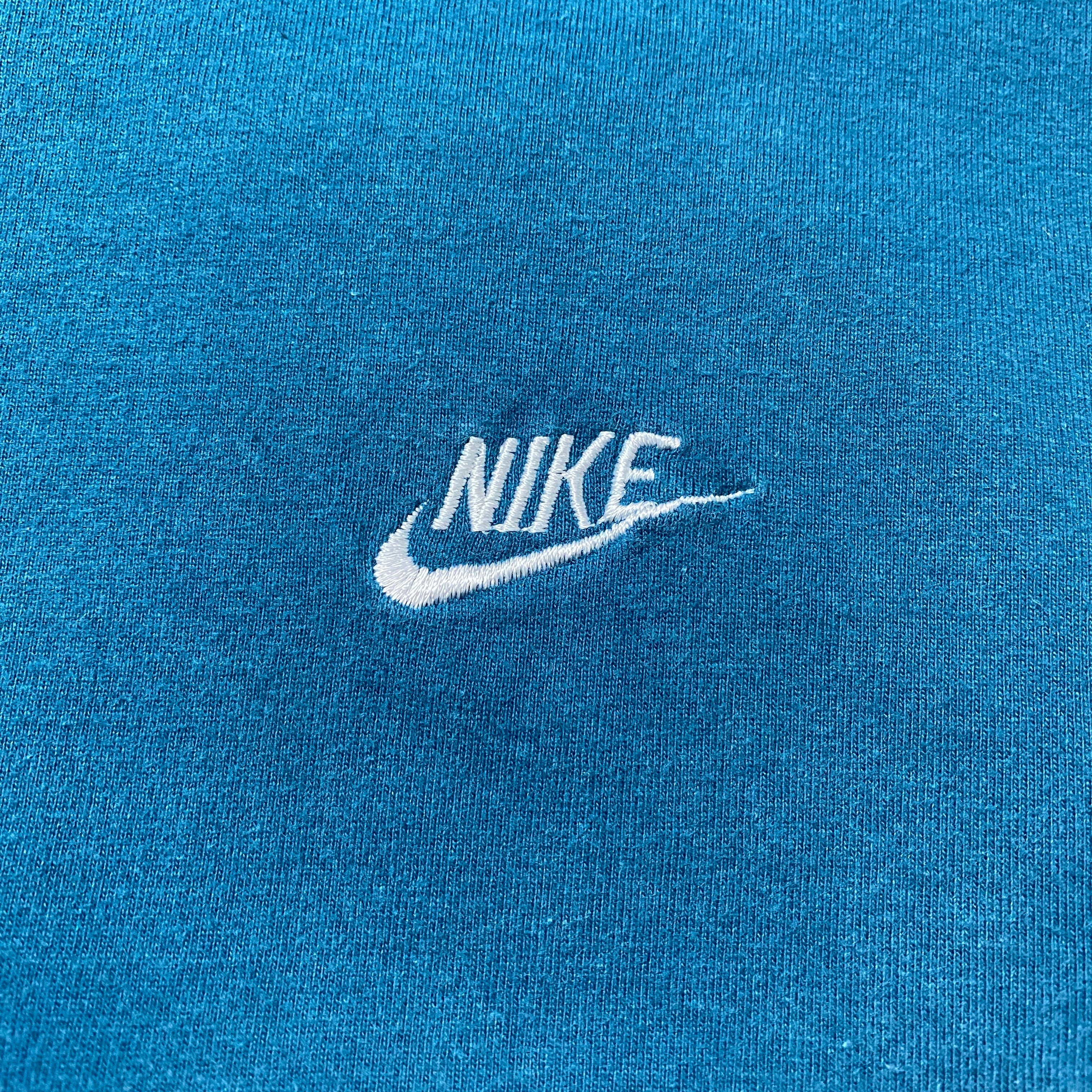 【Size:XL】90's NIKE boot leg ナイキ ブートレグ スウォッシュ 刺繍ワンポイント ターコイズブルー Tシャツ