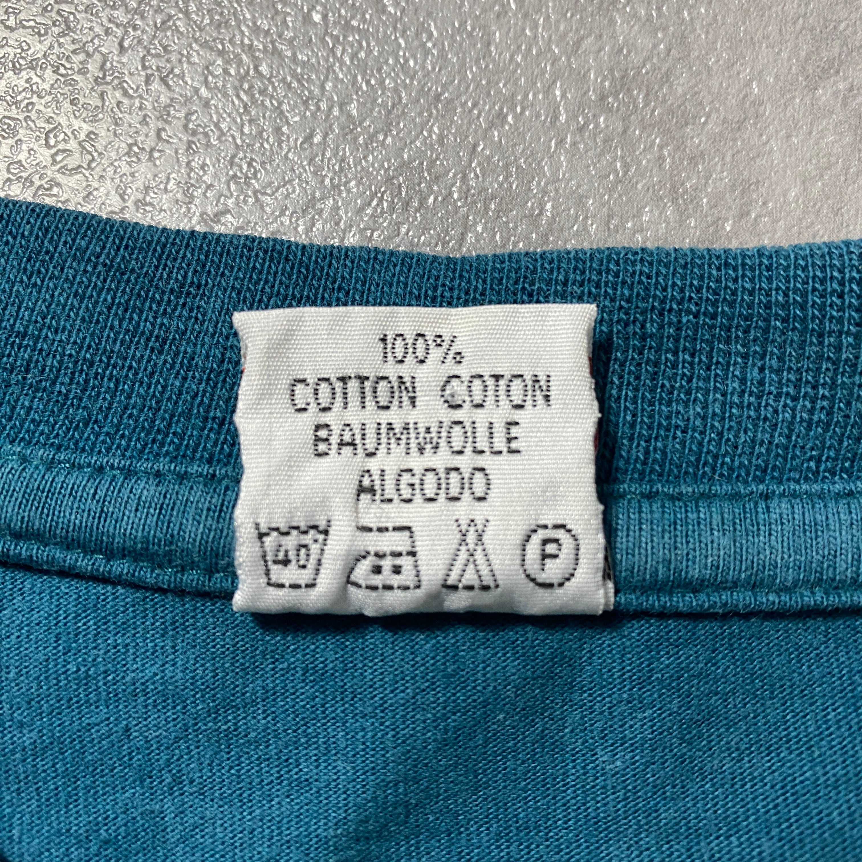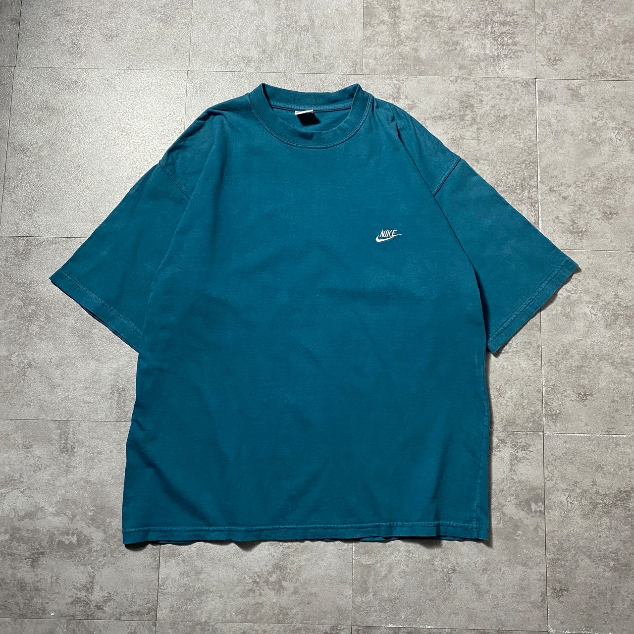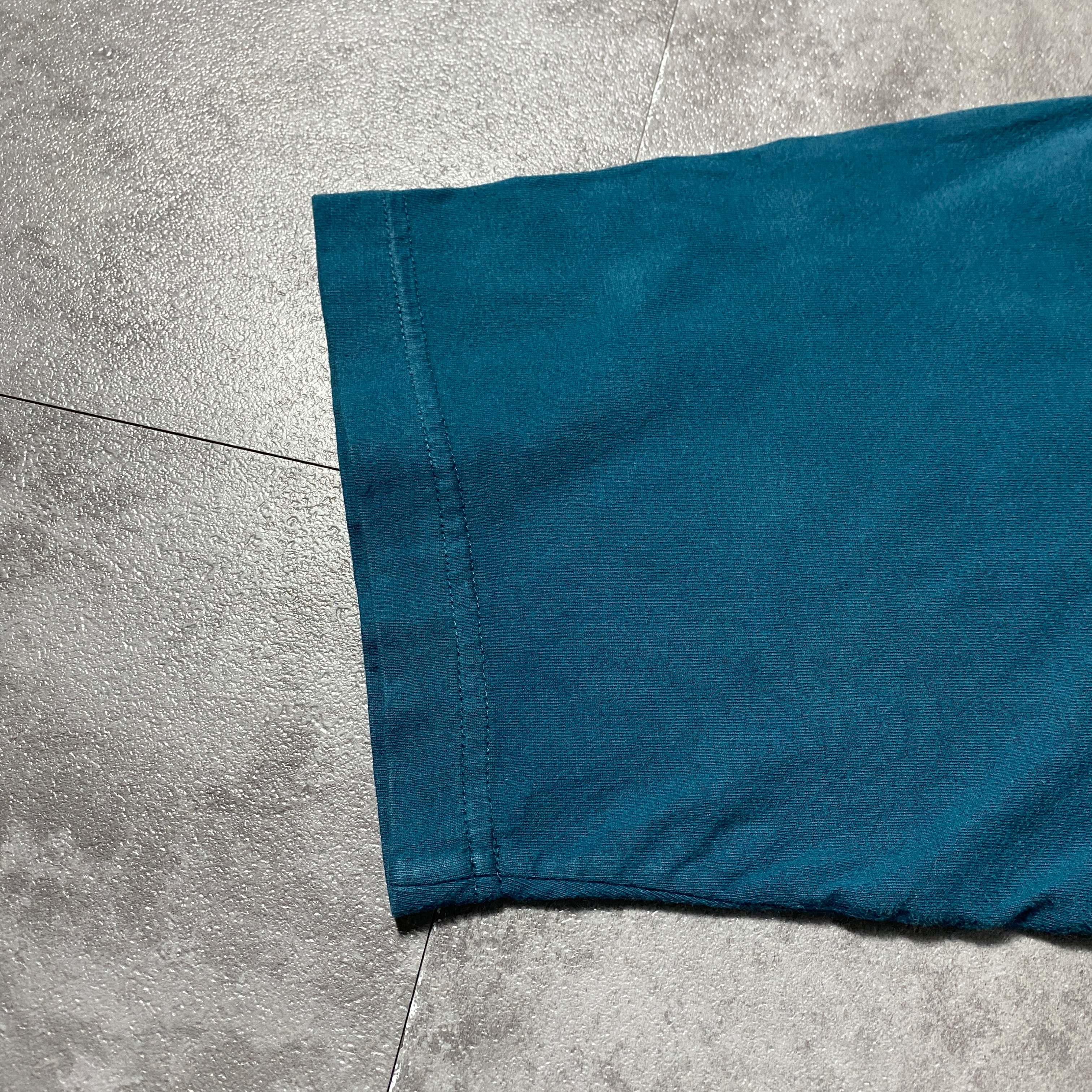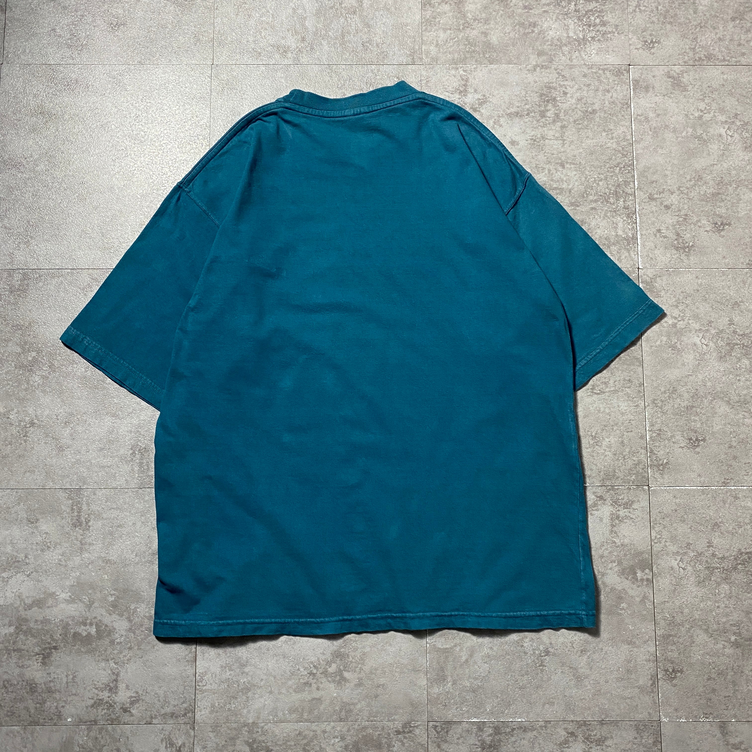 【Size:XL】90's NIKE boot leg ナイキ ブートレグ スウォッシュ 刺繍ワンポイント ターコイズブルー Tシャツ