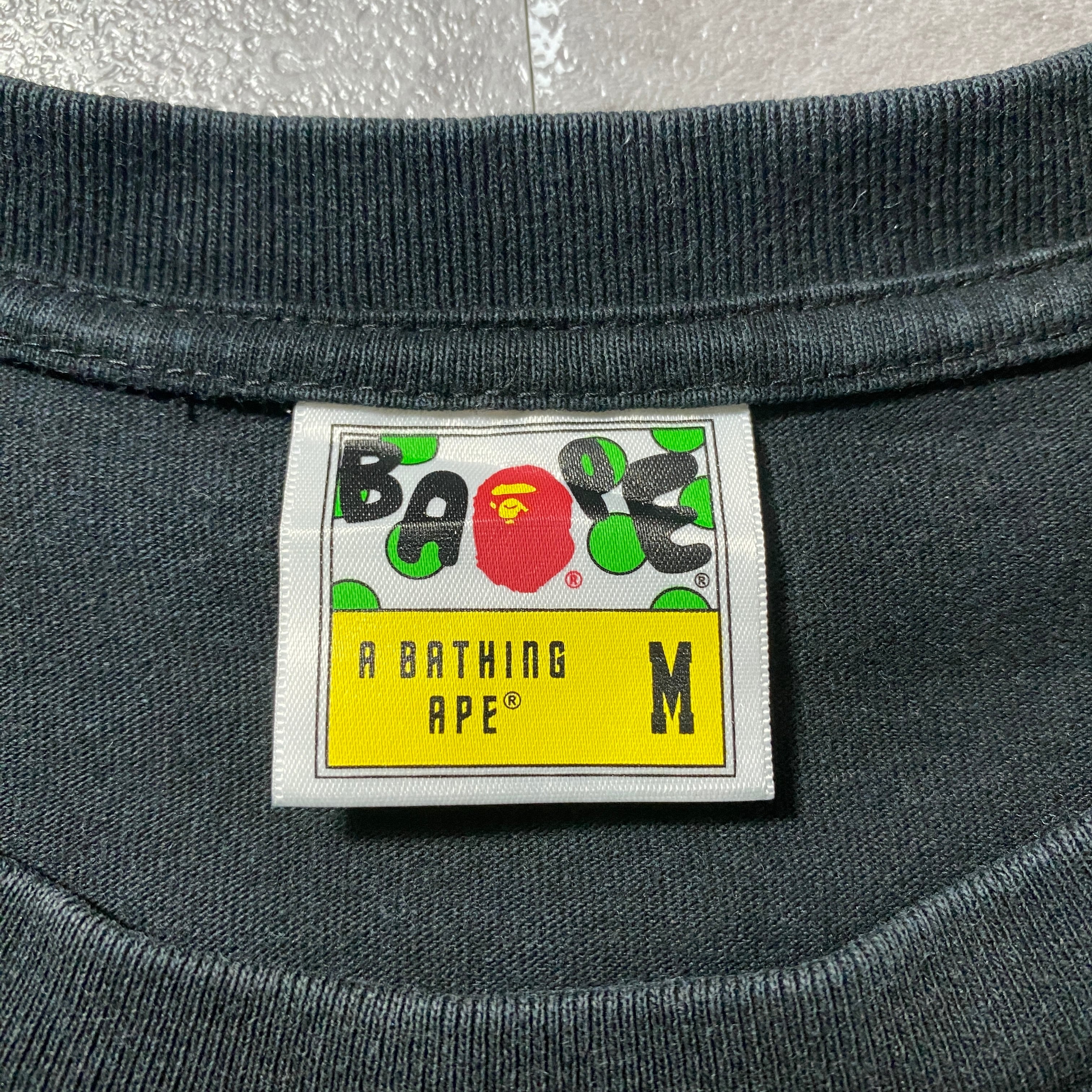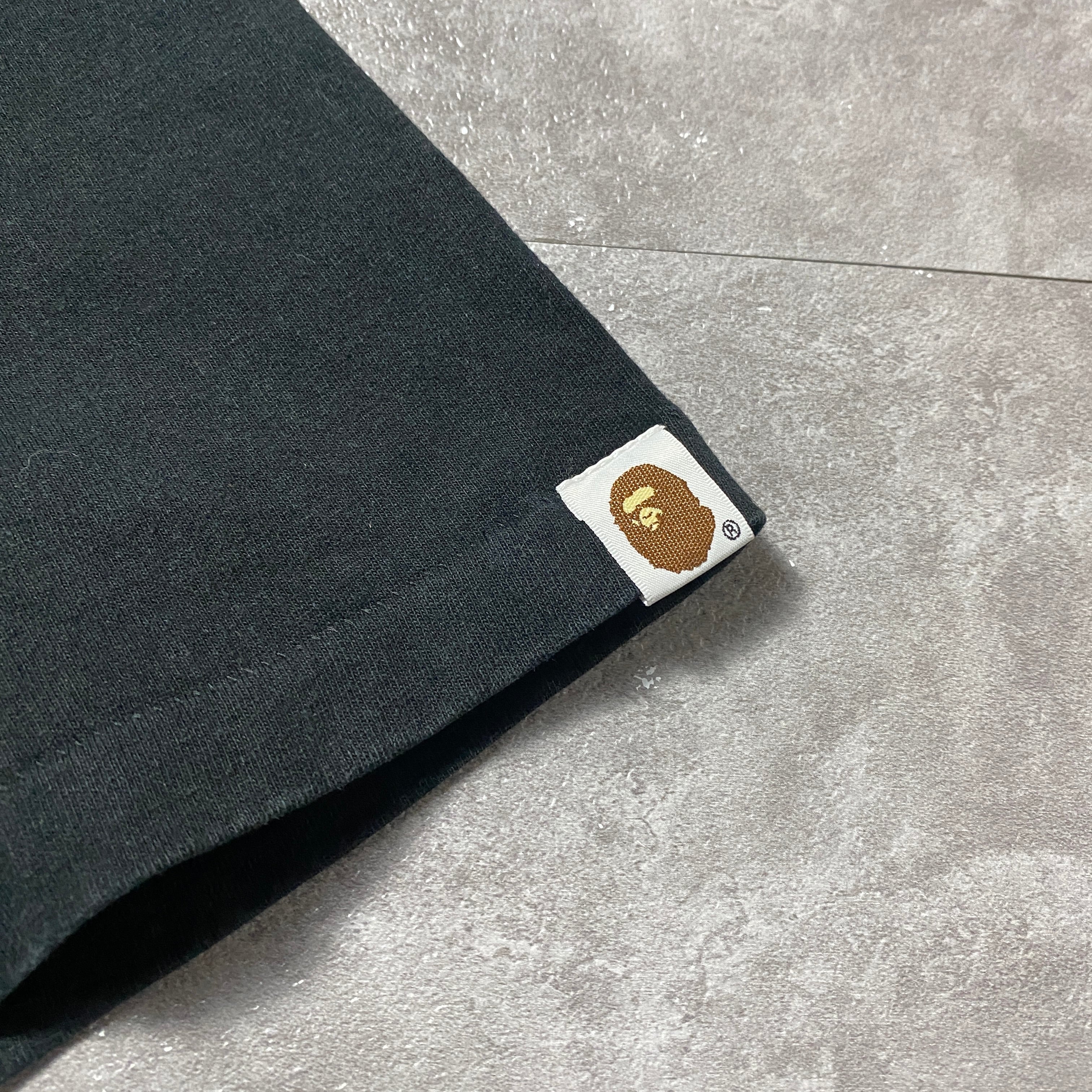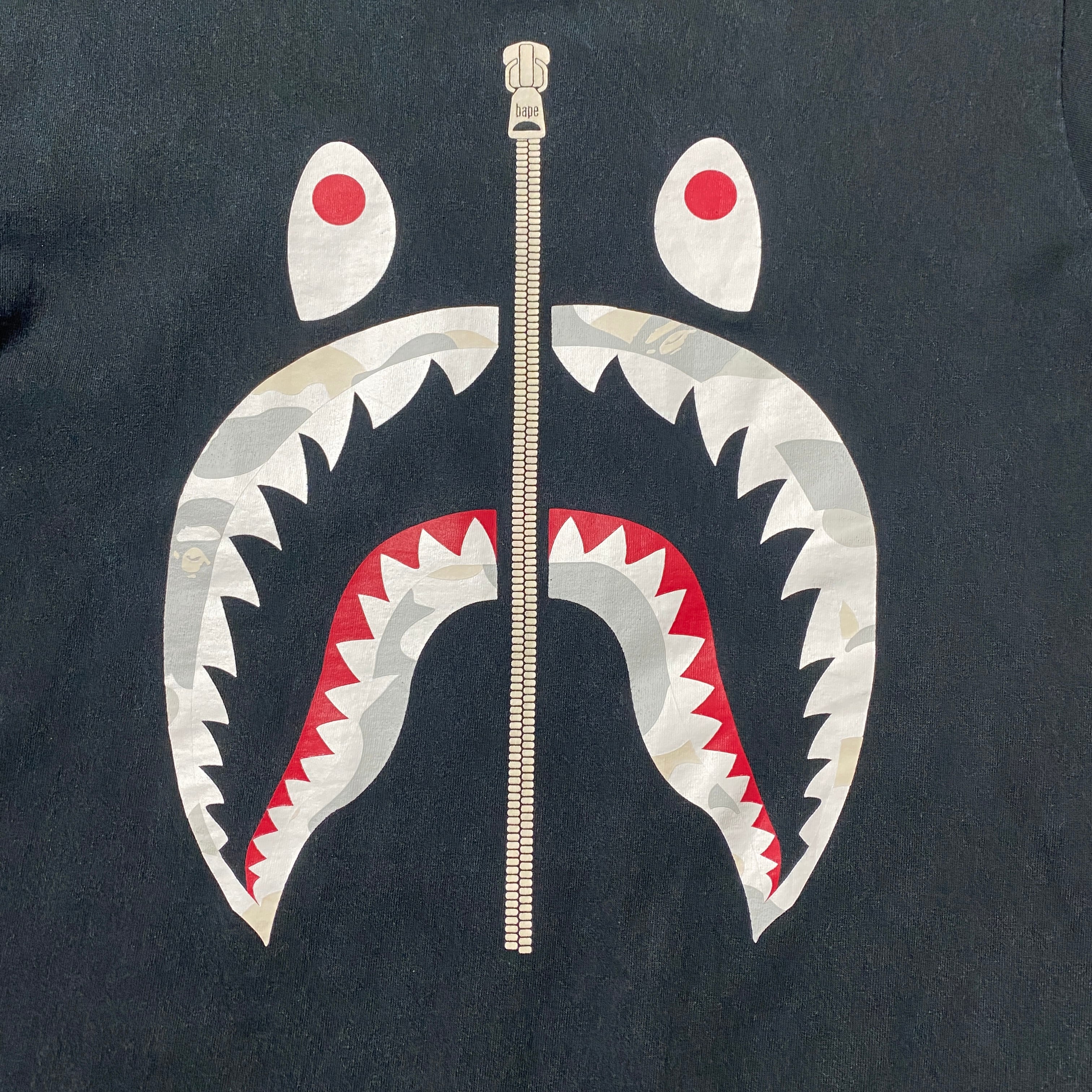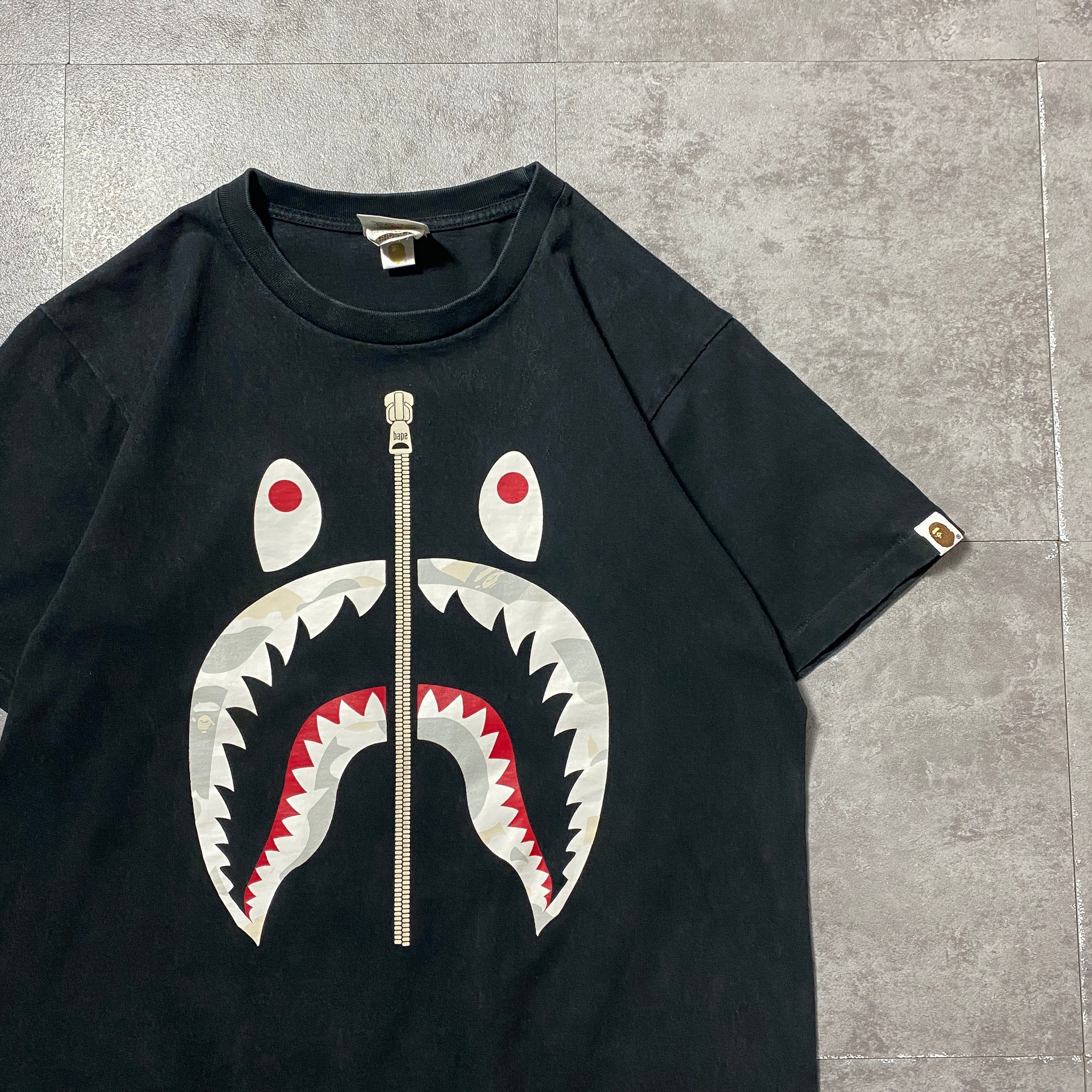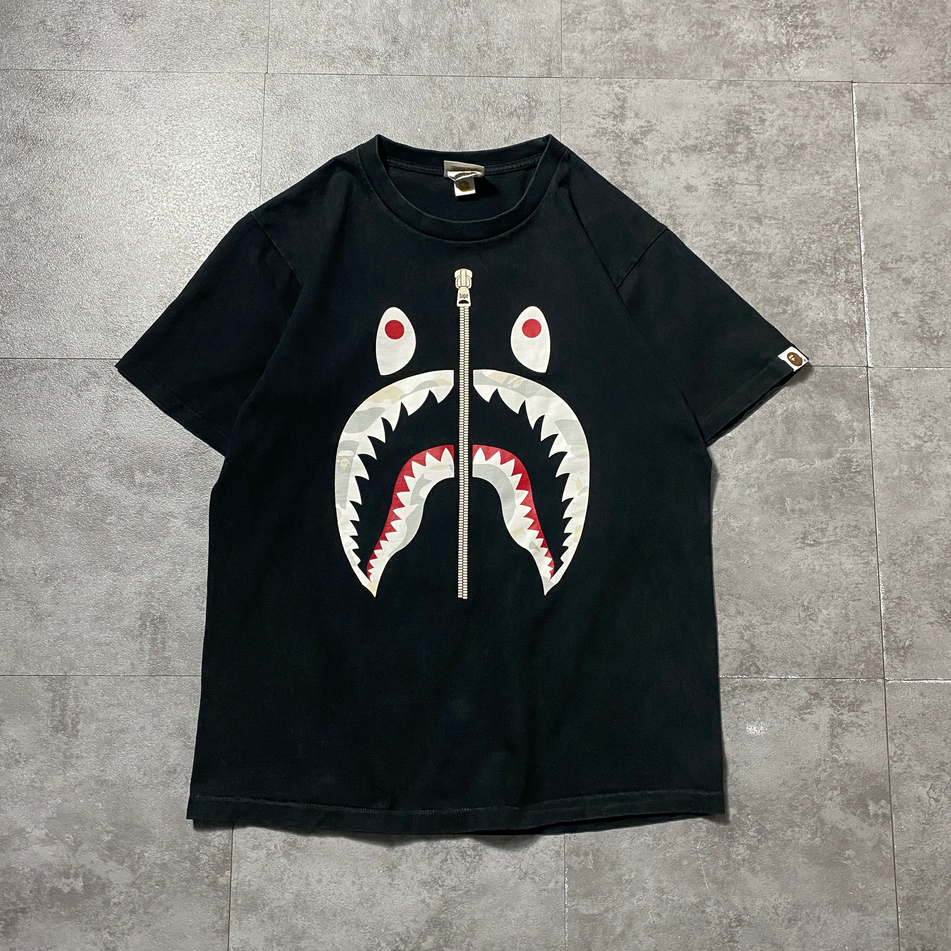 90's A BATHING APE BAPE アベイシングエイプ シャーク プリント シングルステッチ ブラック 黒 Tシャツ