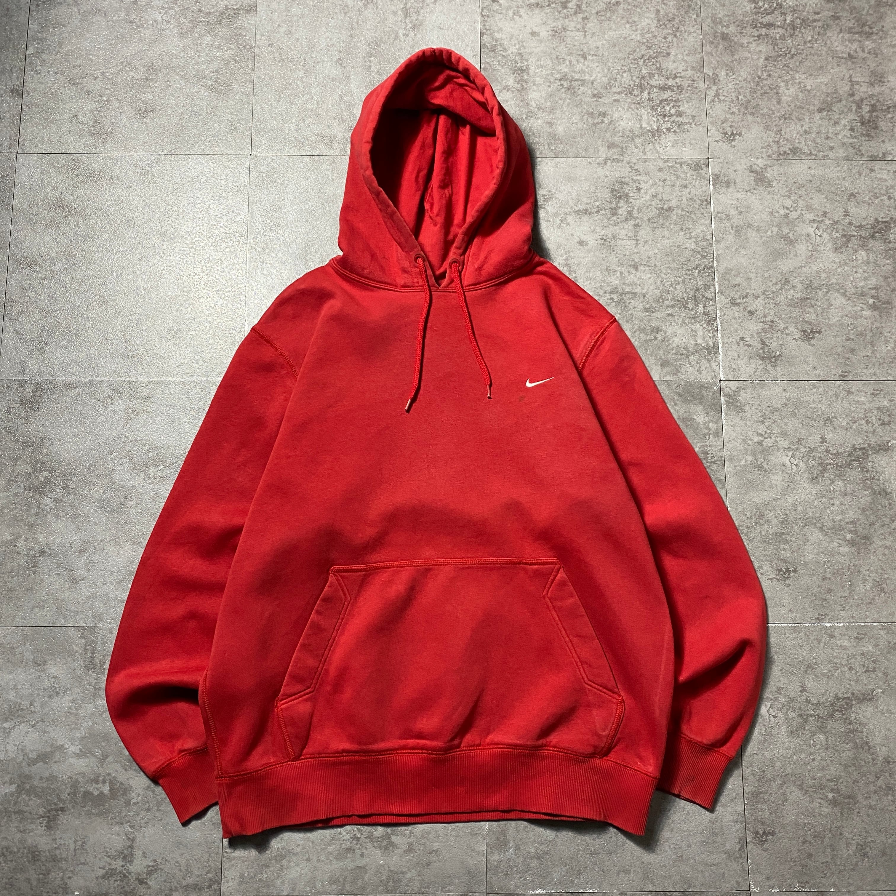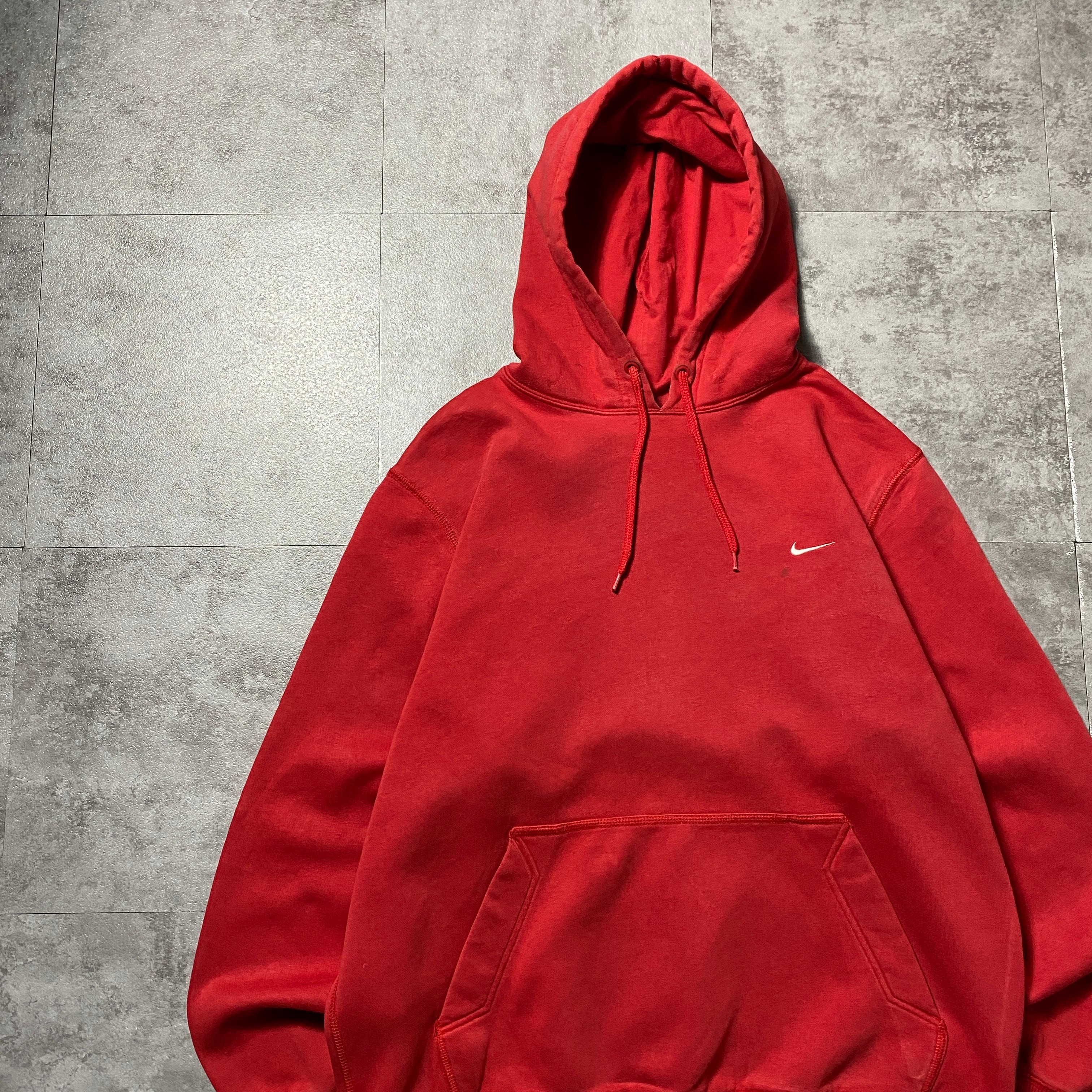 00's NIKE ナイキ スウォッシュ 刺繍ワンポイント レッド 赤 スウェット パーカー フーディ