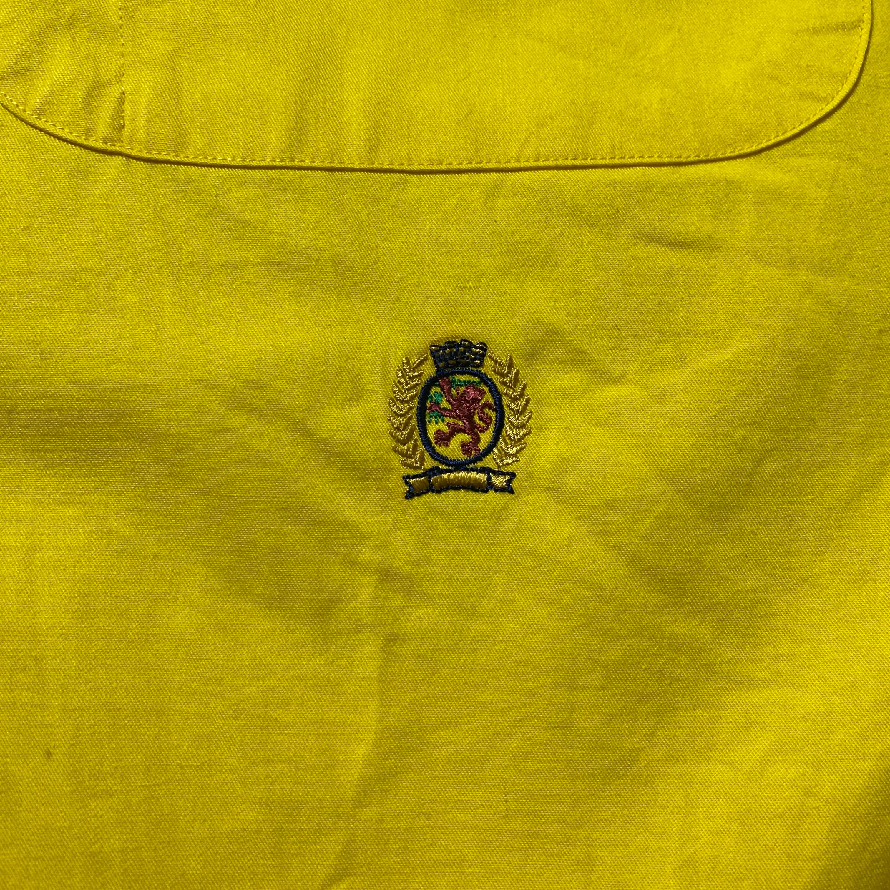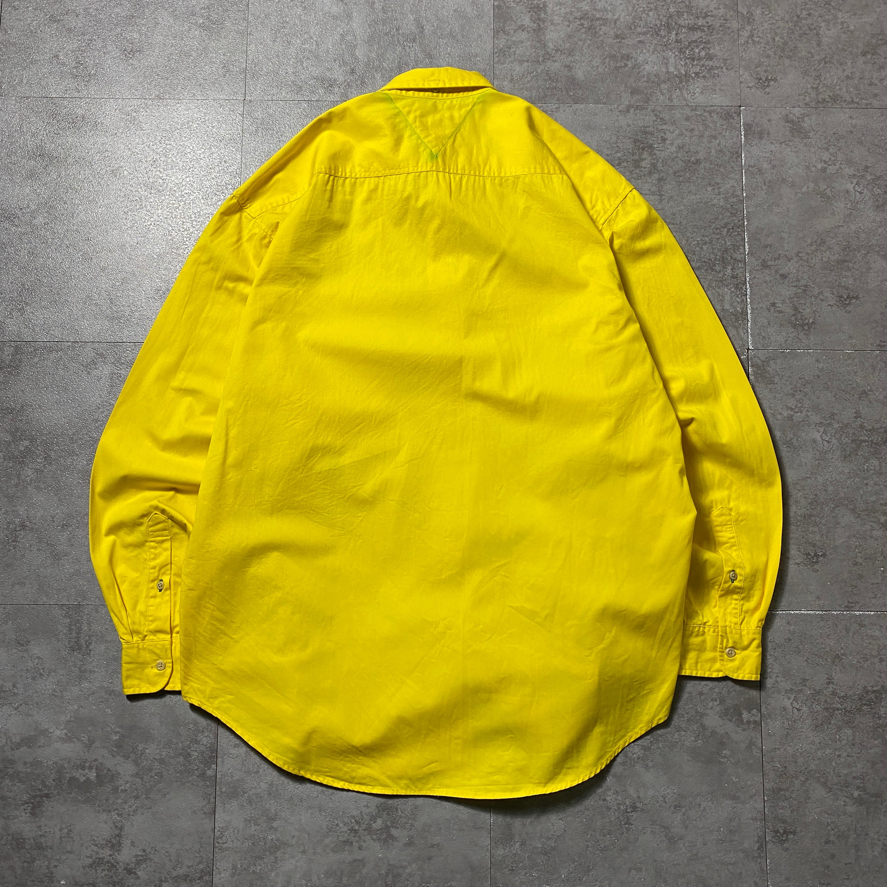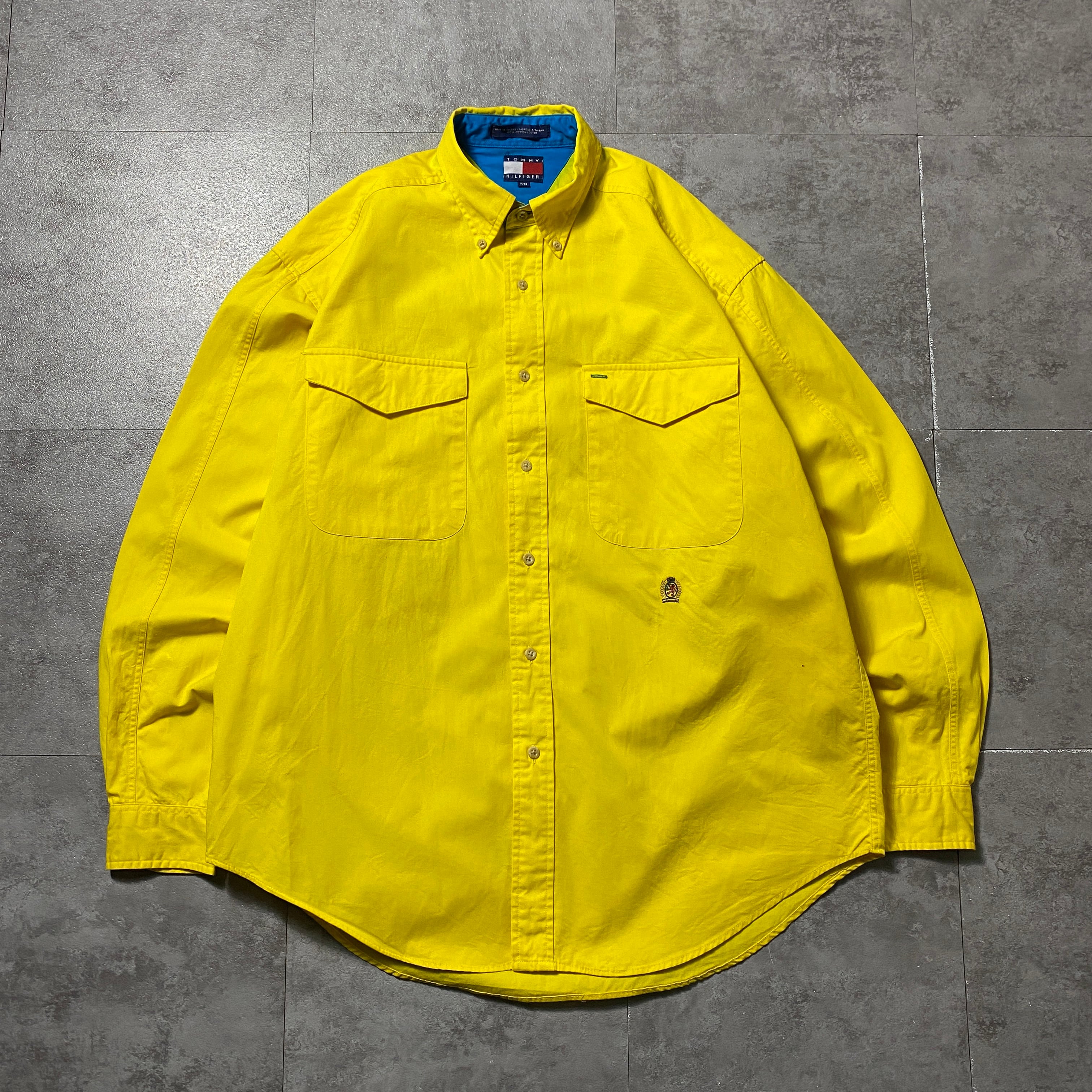 90's 00's Tommy Hilfiger トミーヒルフィガー 刺繍ロゴ フラップ付ポケット イエロー ボタンダウンシャツ