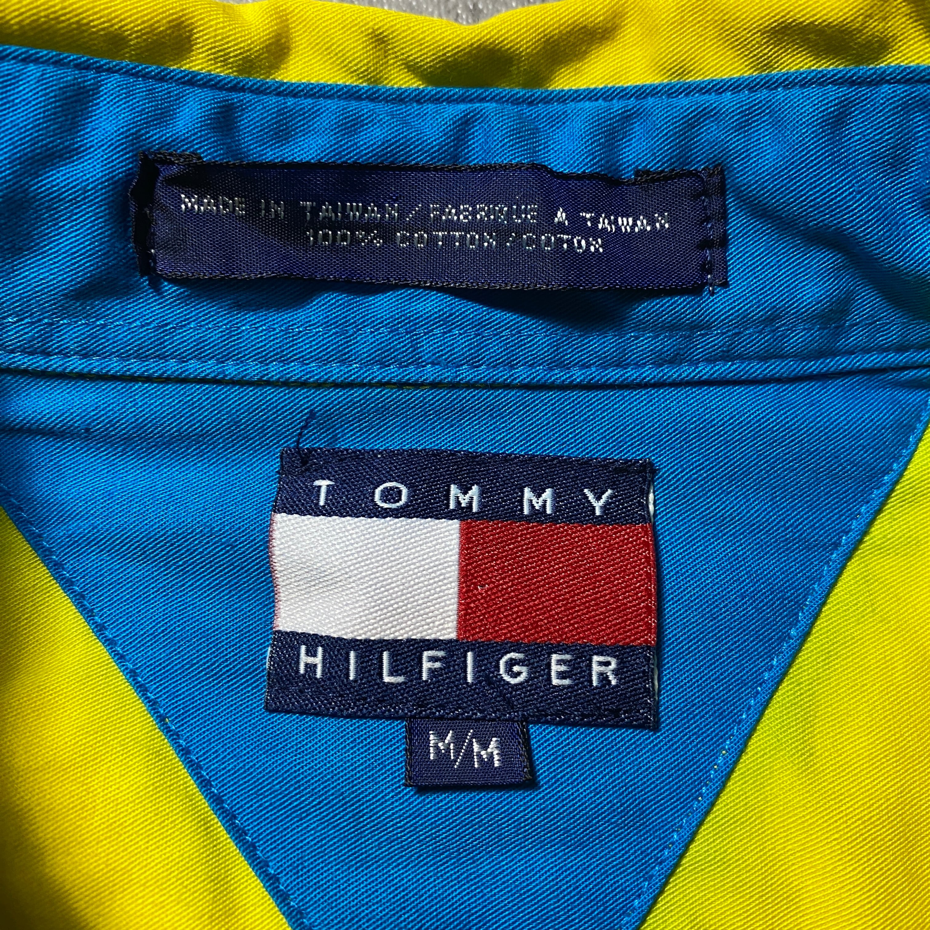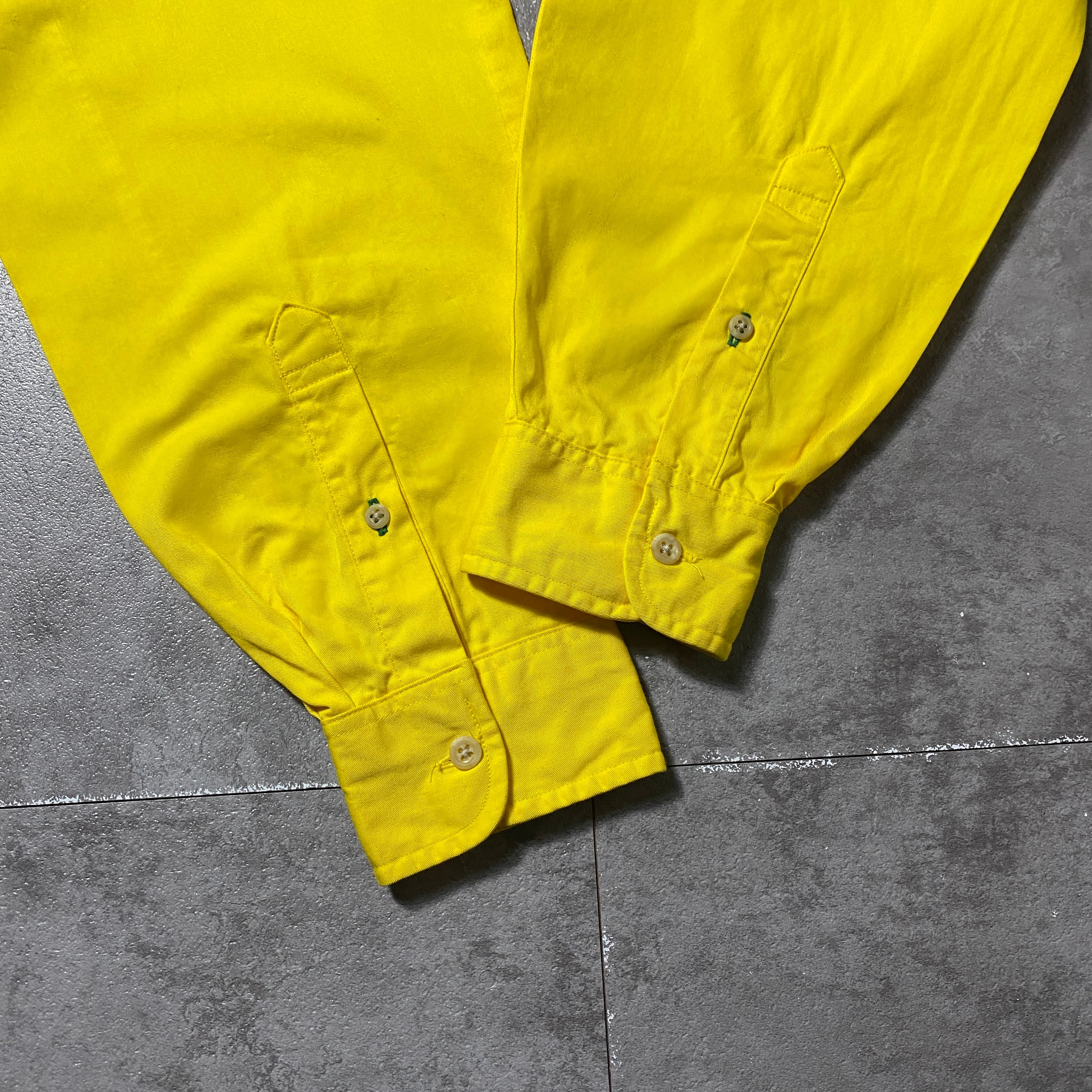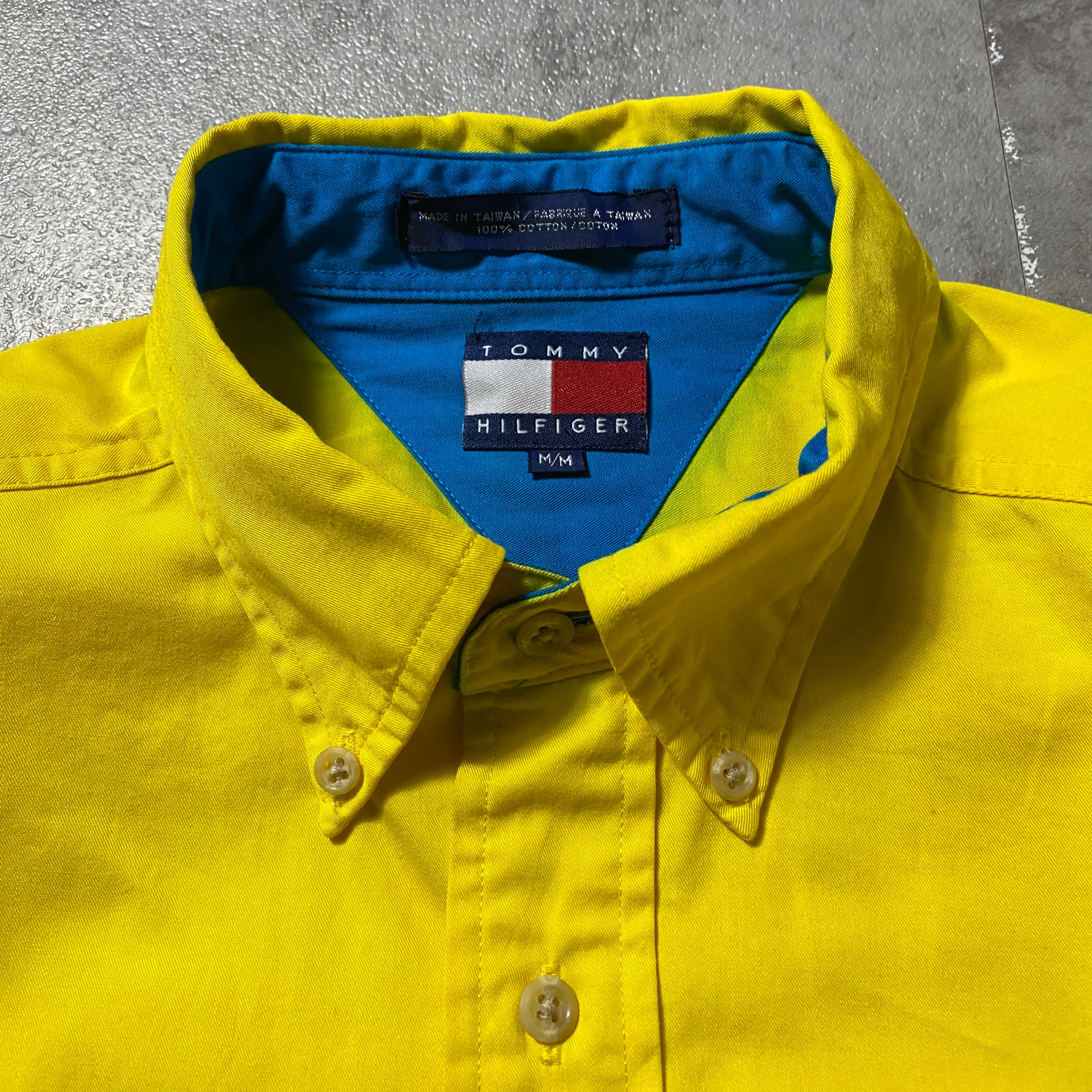 90's 00's Tommy Hilfiger トミーヒルフィガー 刺繍ロゴ フラップ付ポケット イエロー ボタンダウンシャツ