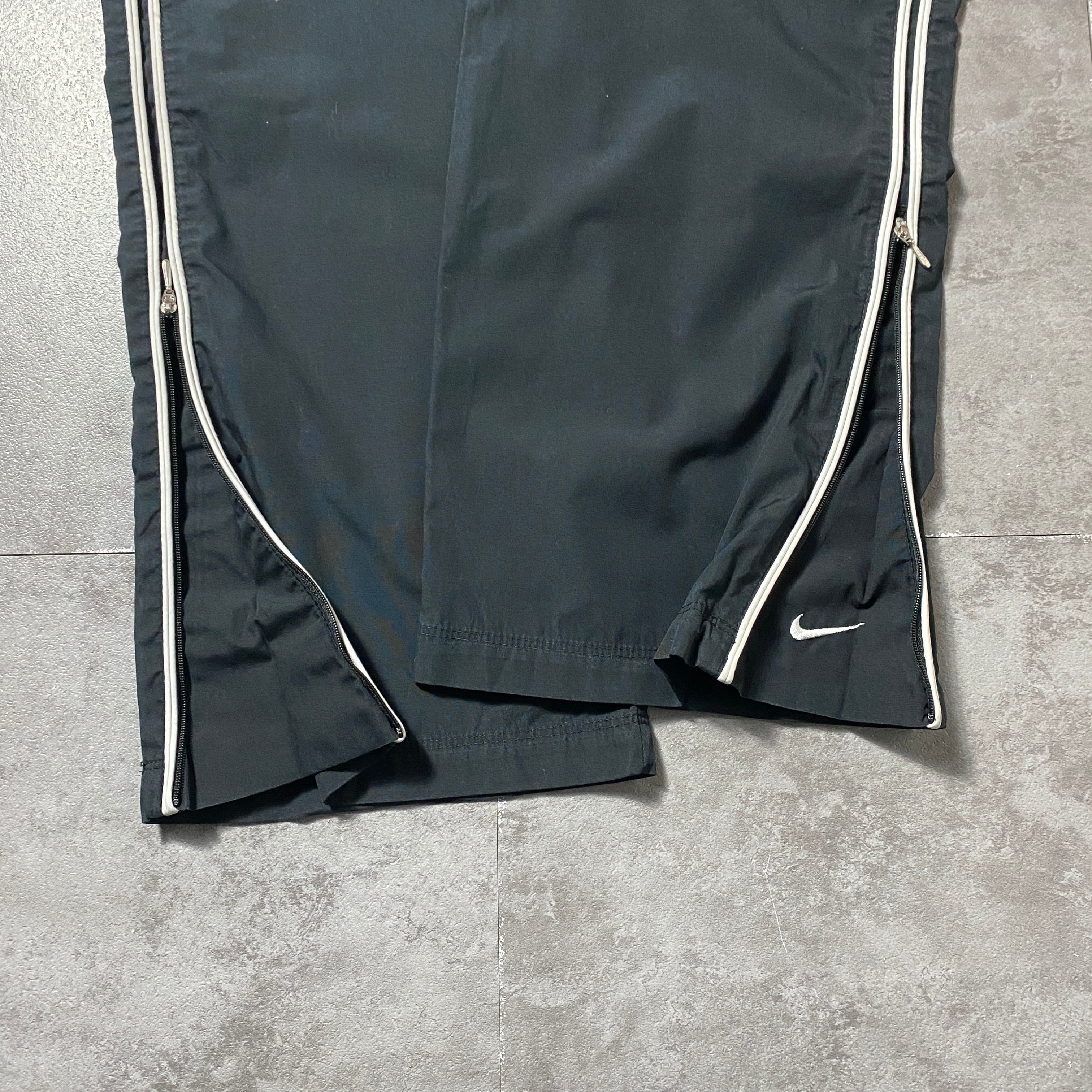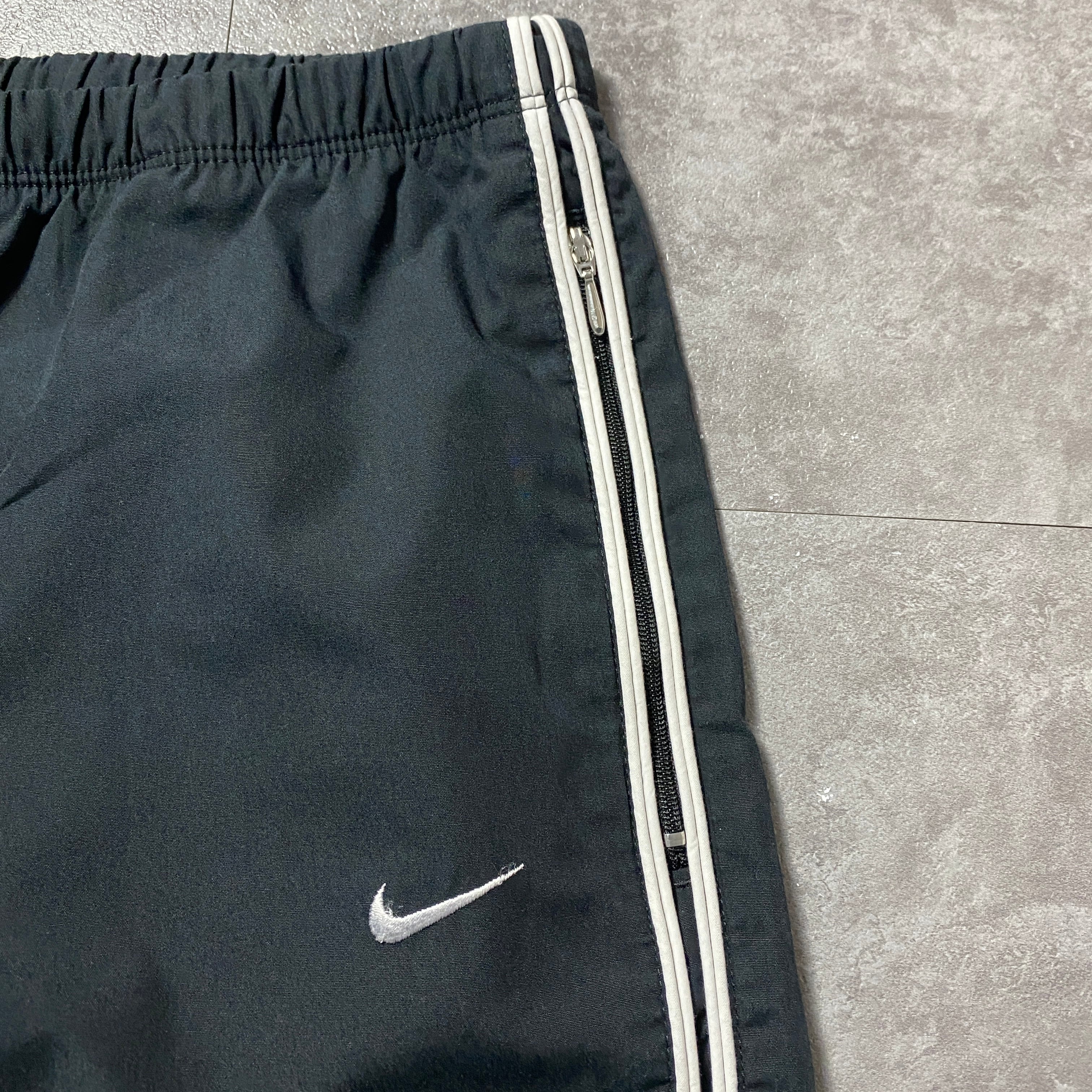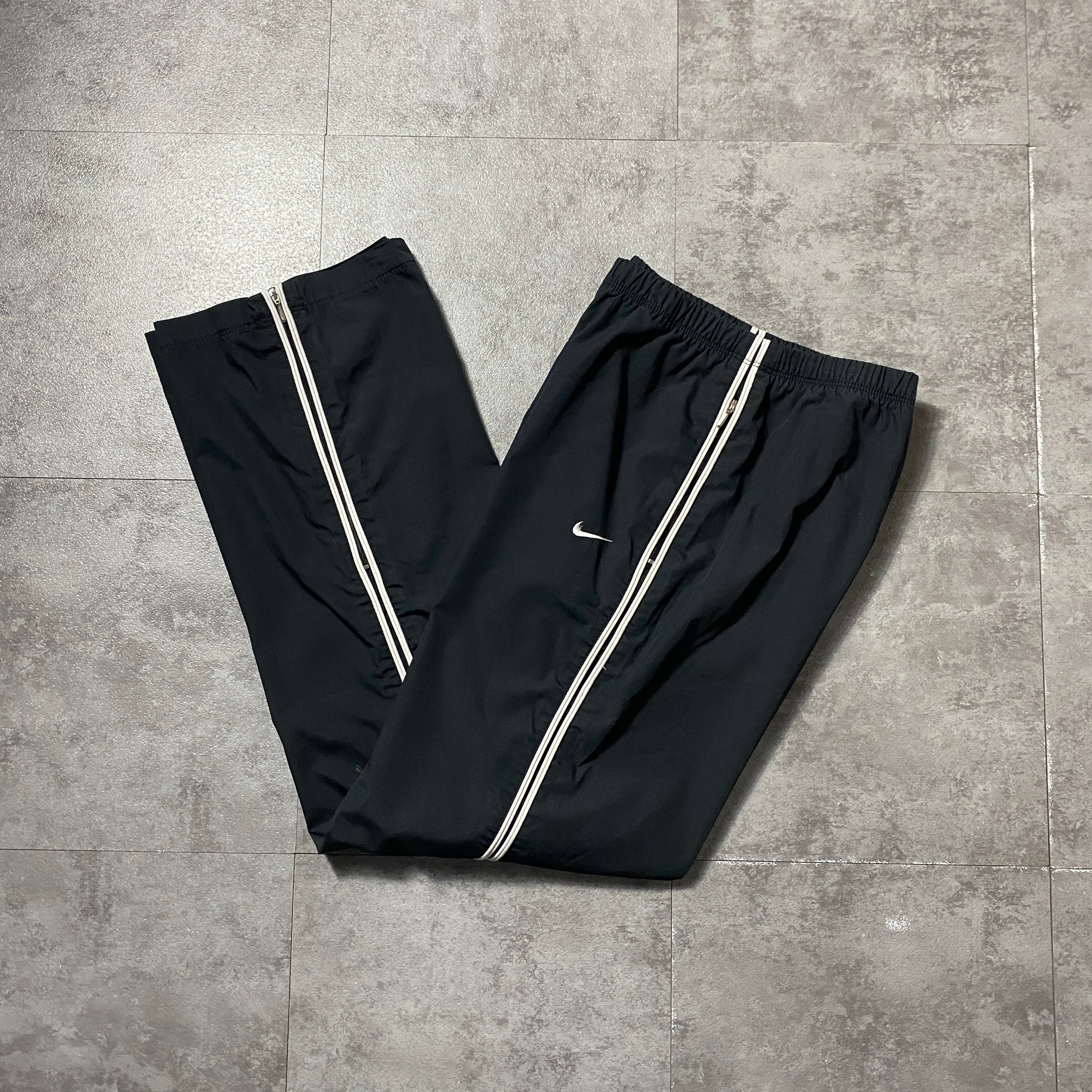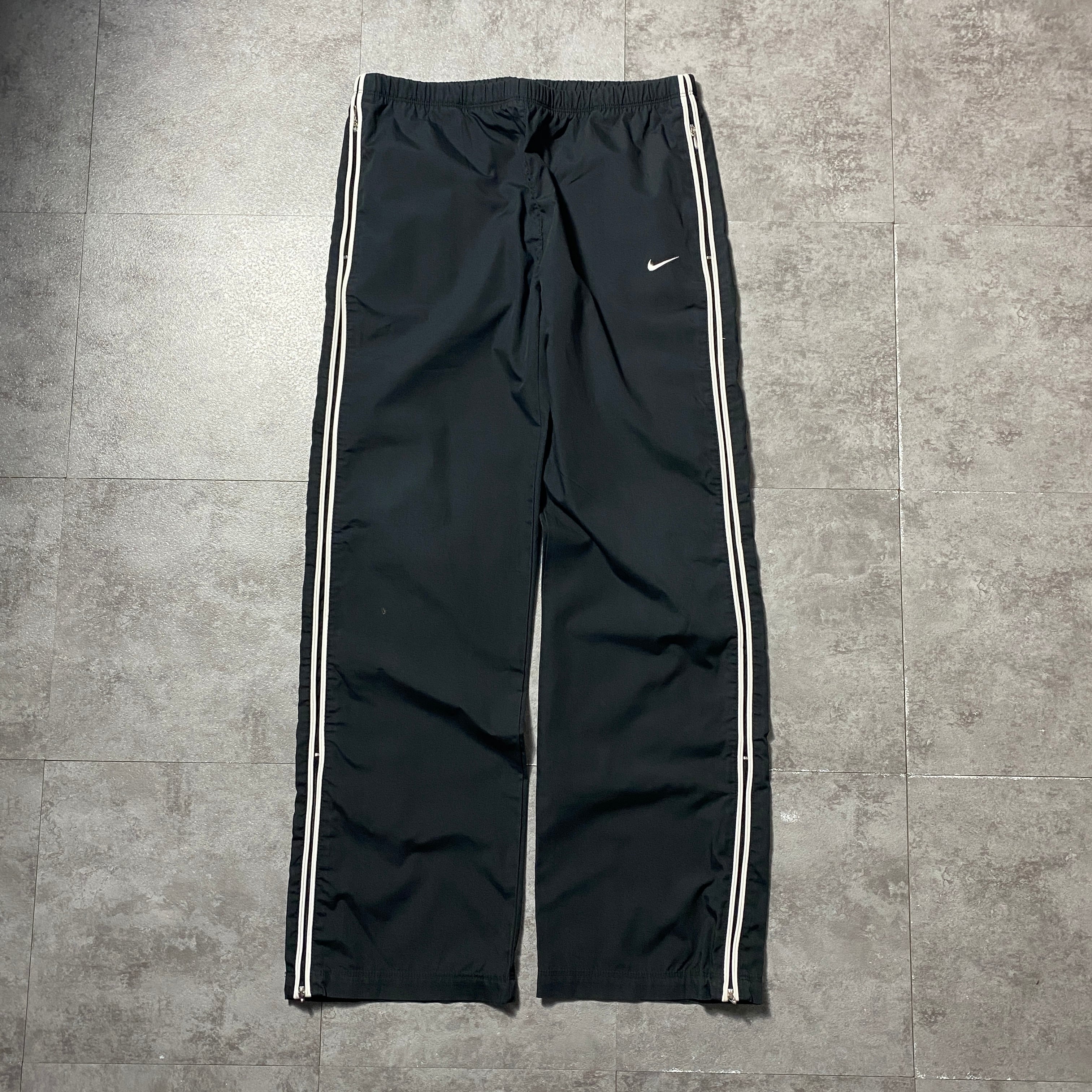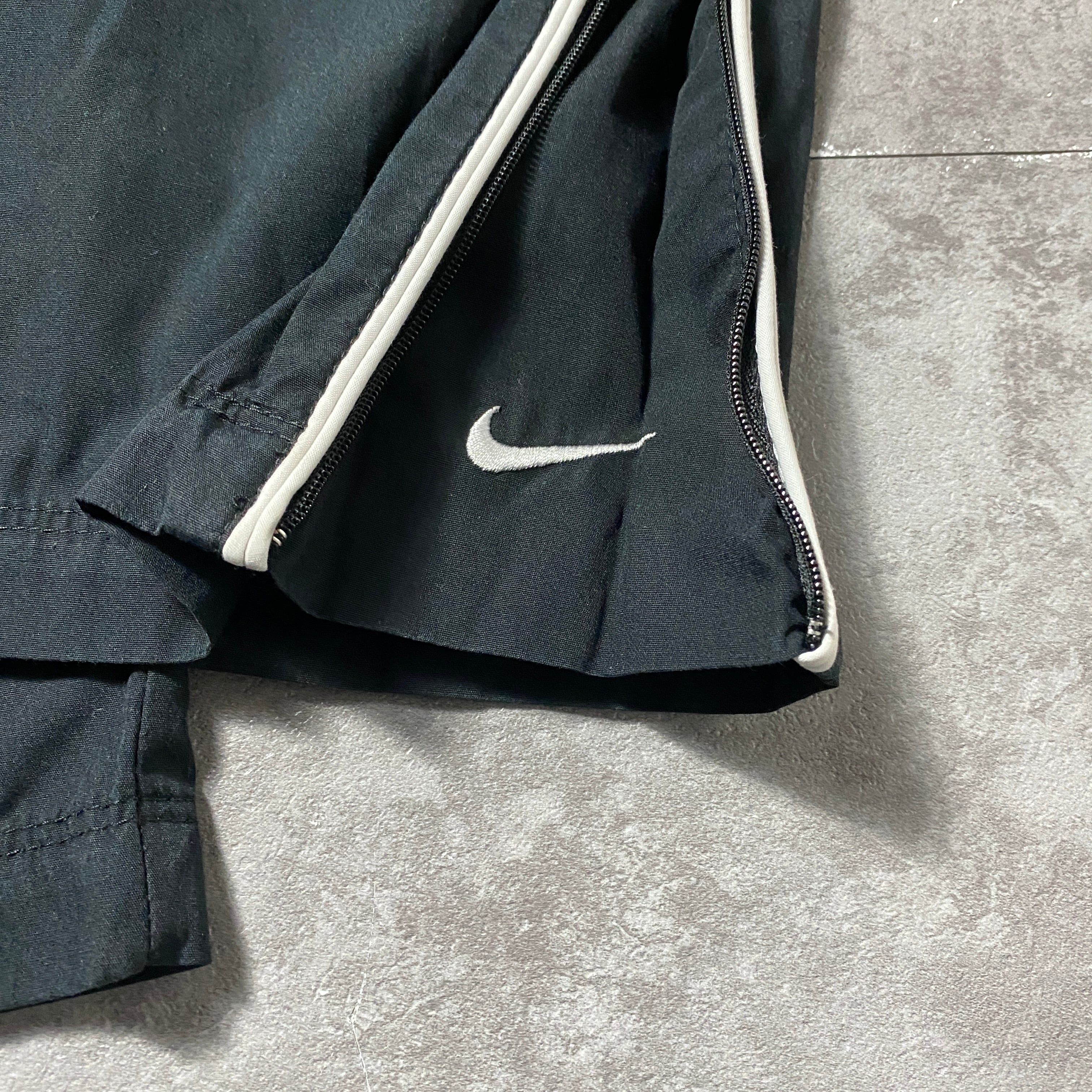 00's NIKE ナイキ スウォッシュ 刺繍ロゴ サイドライン ブラック 黒 ナイロン トラックパンツ