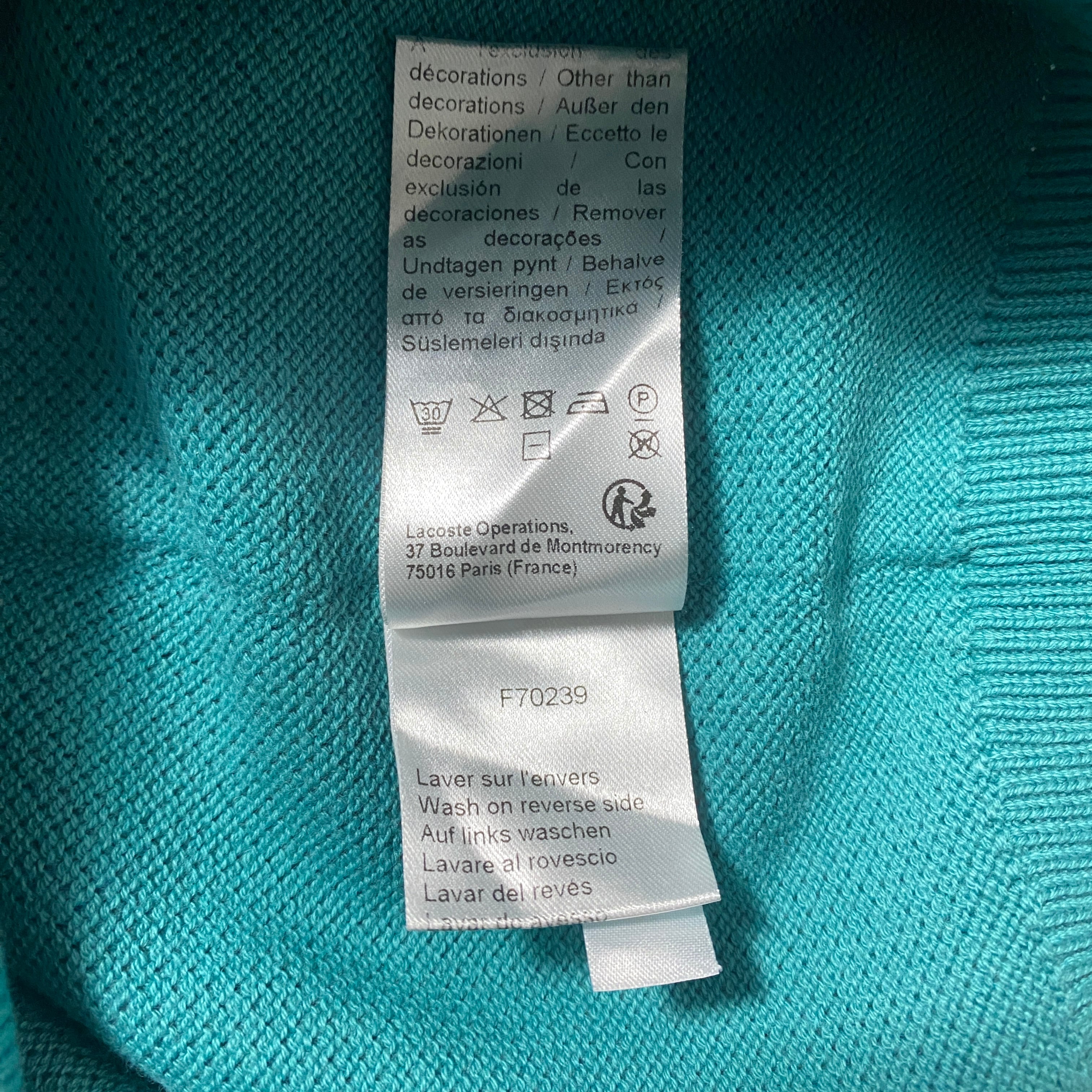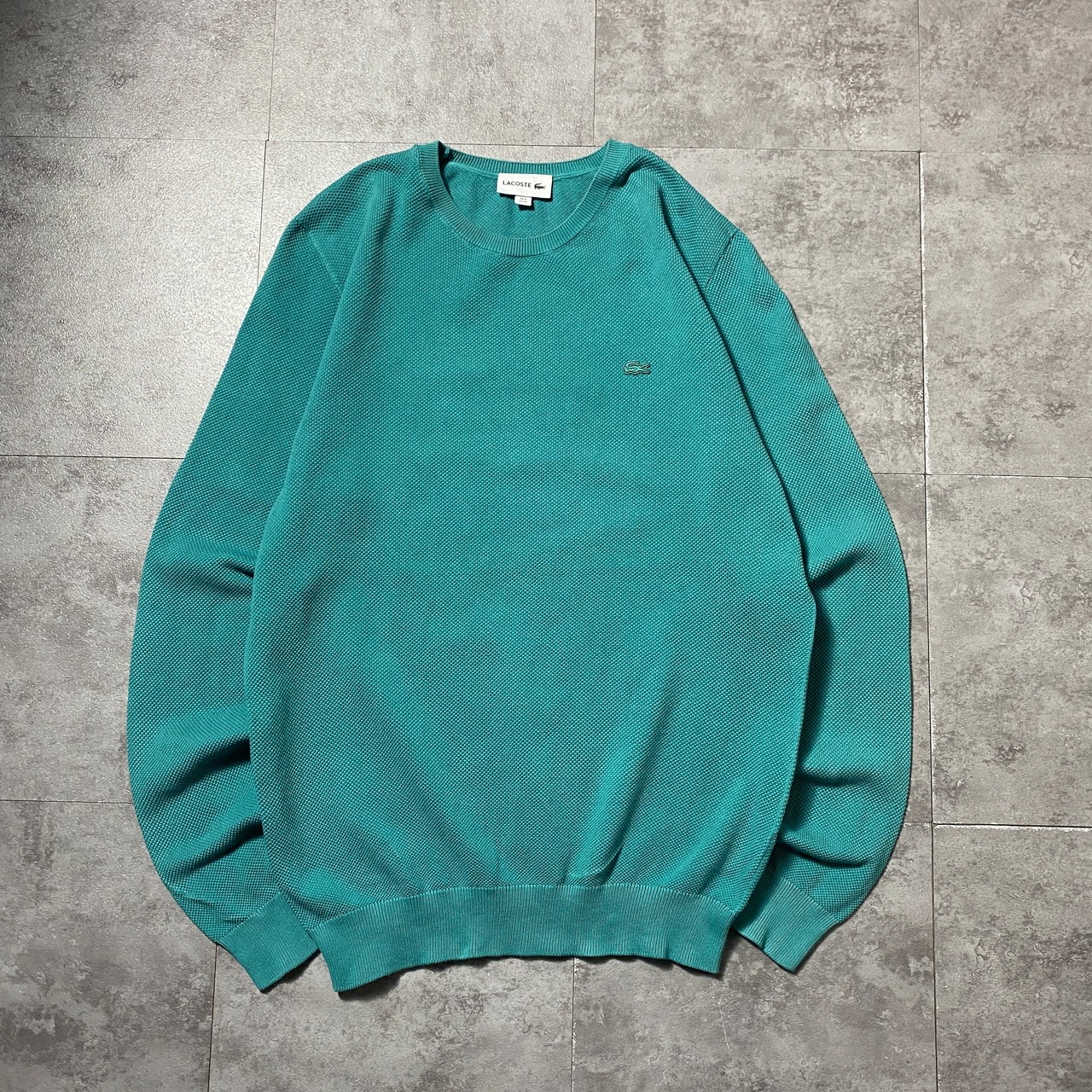 LACOSTE ラコステ ワンポイント ワニ ターコイズブルー ワッフル生地 スウェット トレーナー