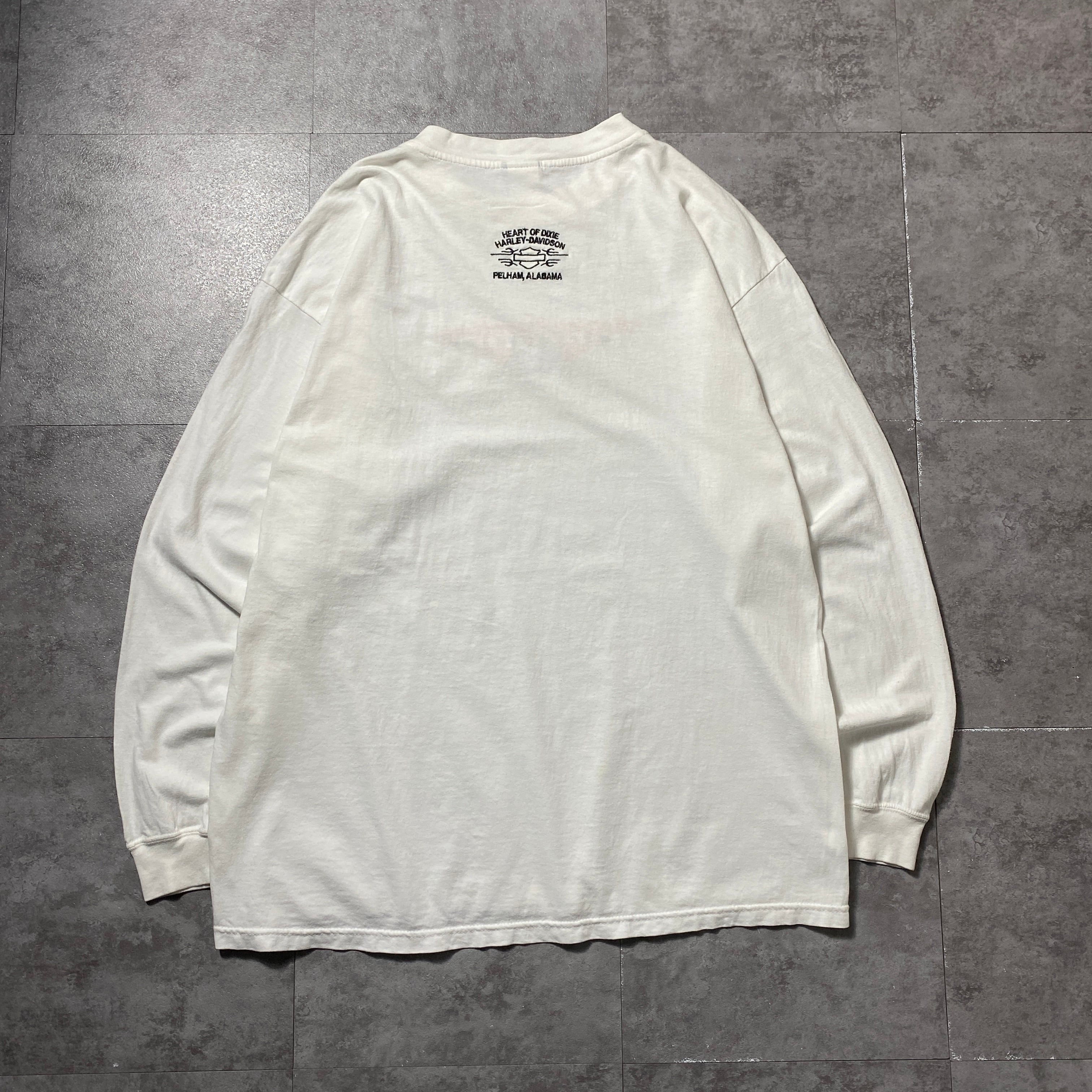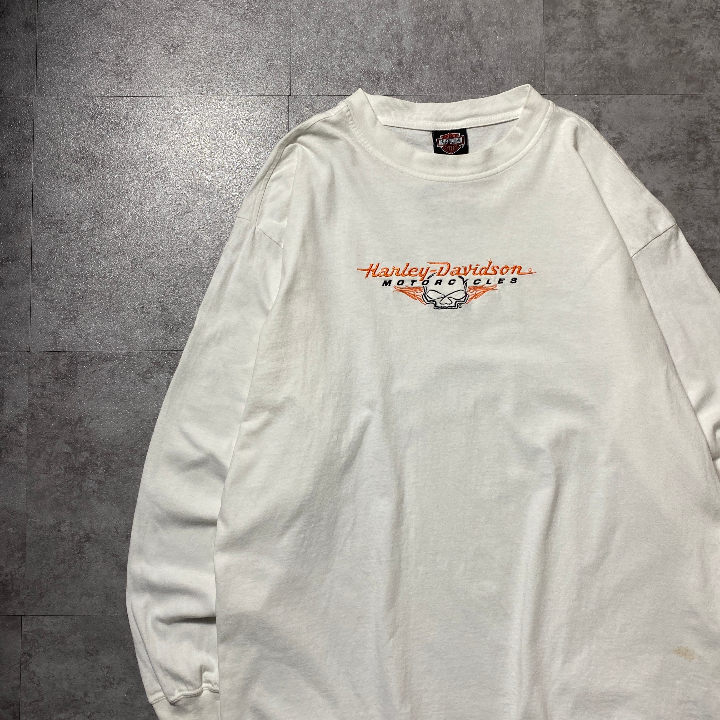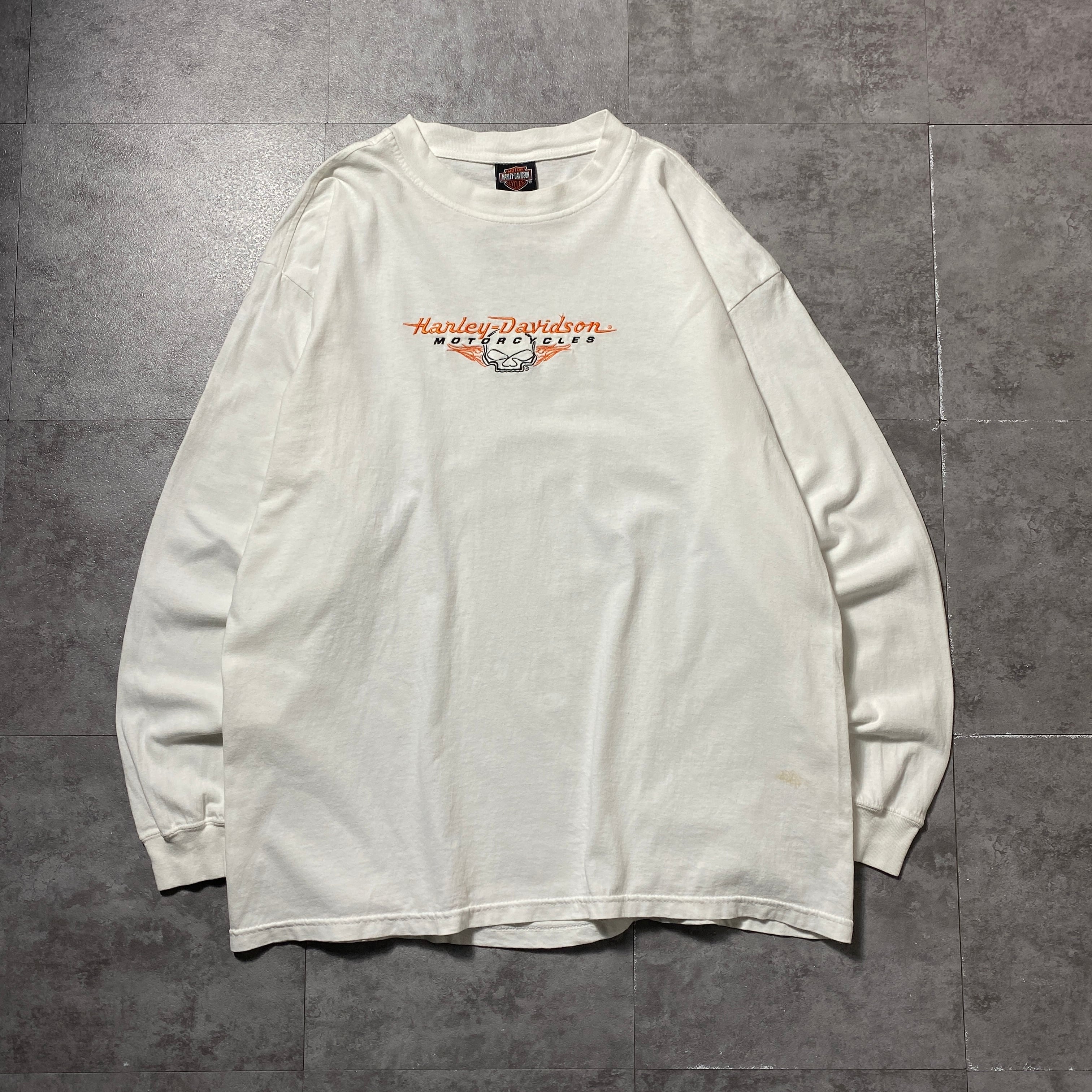 00's Harley-Davidson ハーレーダビッドソン スカル センター刺繍ロゴ ホワイト 白 Tシャツ ロンT