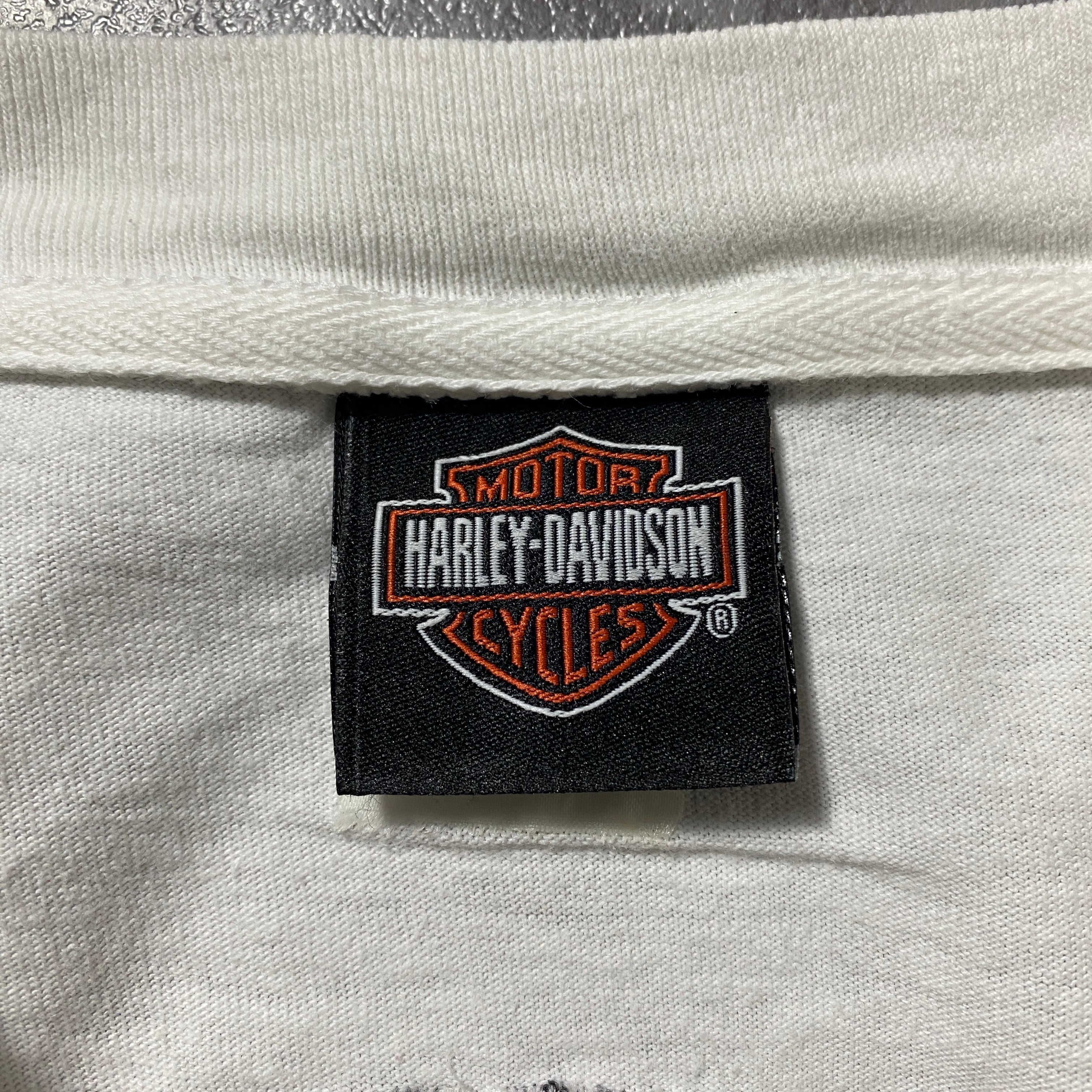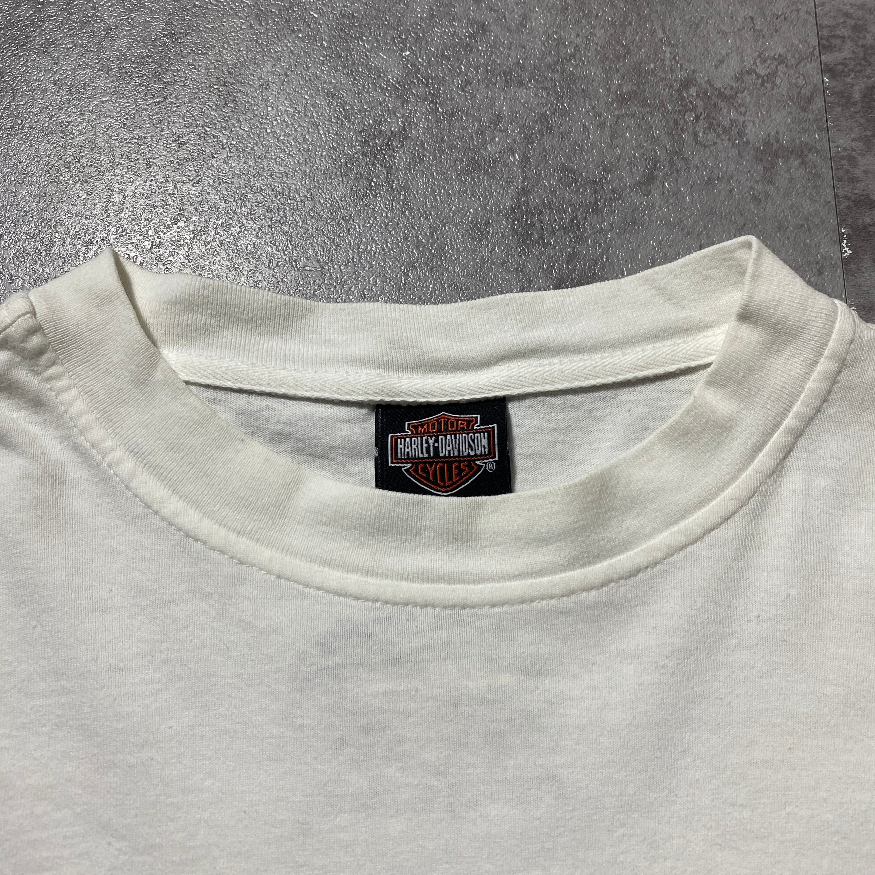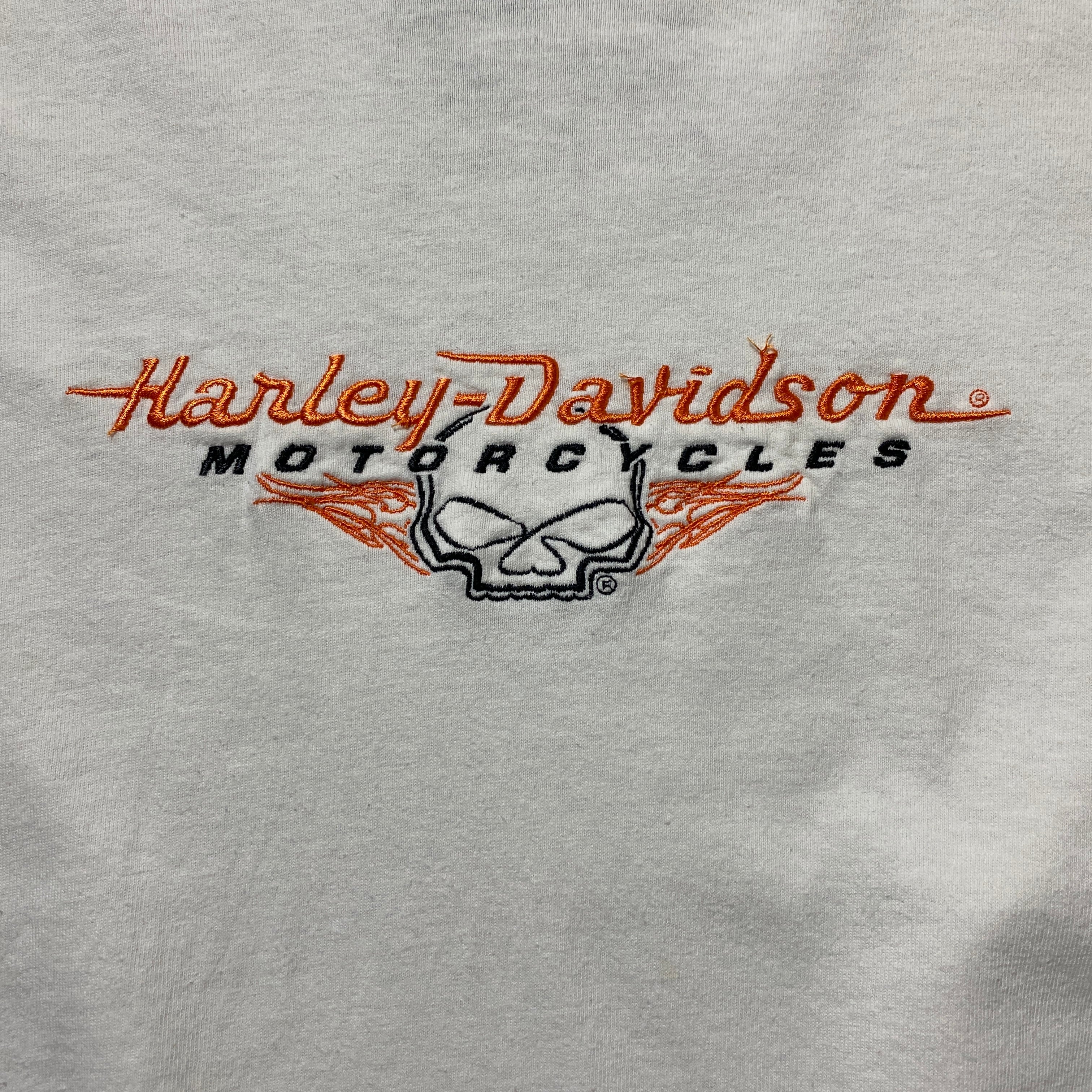 00's Harley-Davidson ハーレーダビッドソン スカル センター刺繍ロゴ ホワイト 白 Tシャツ ロンT