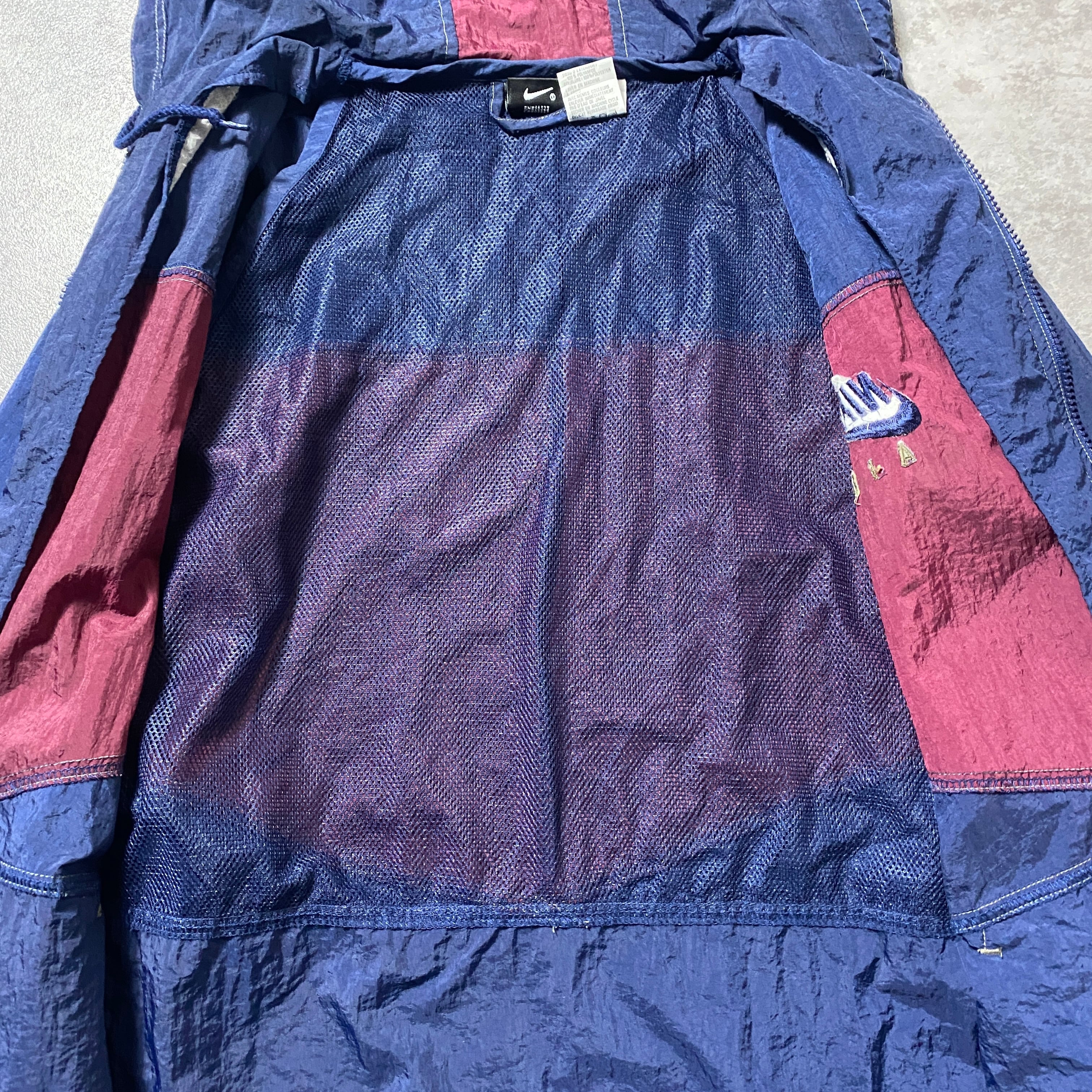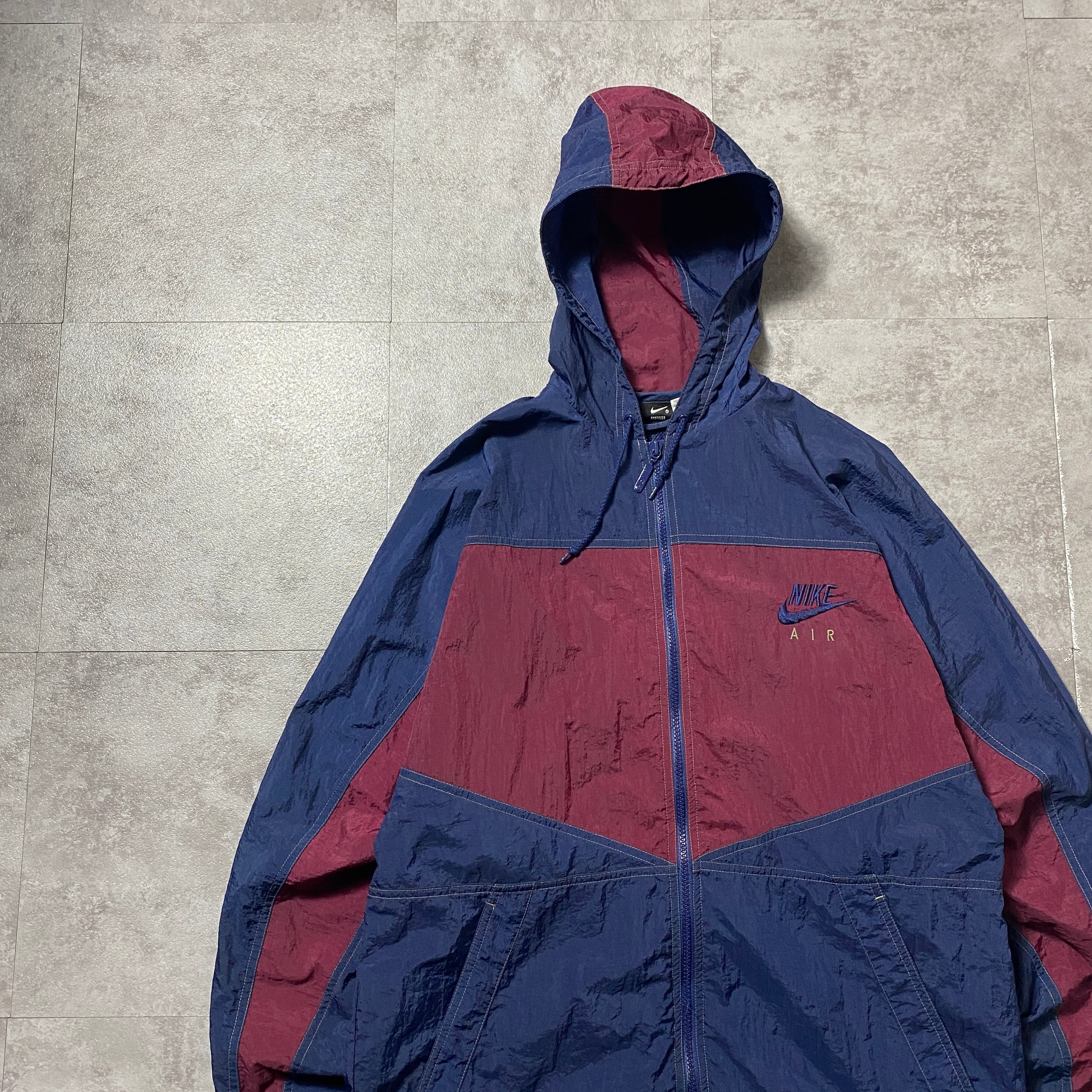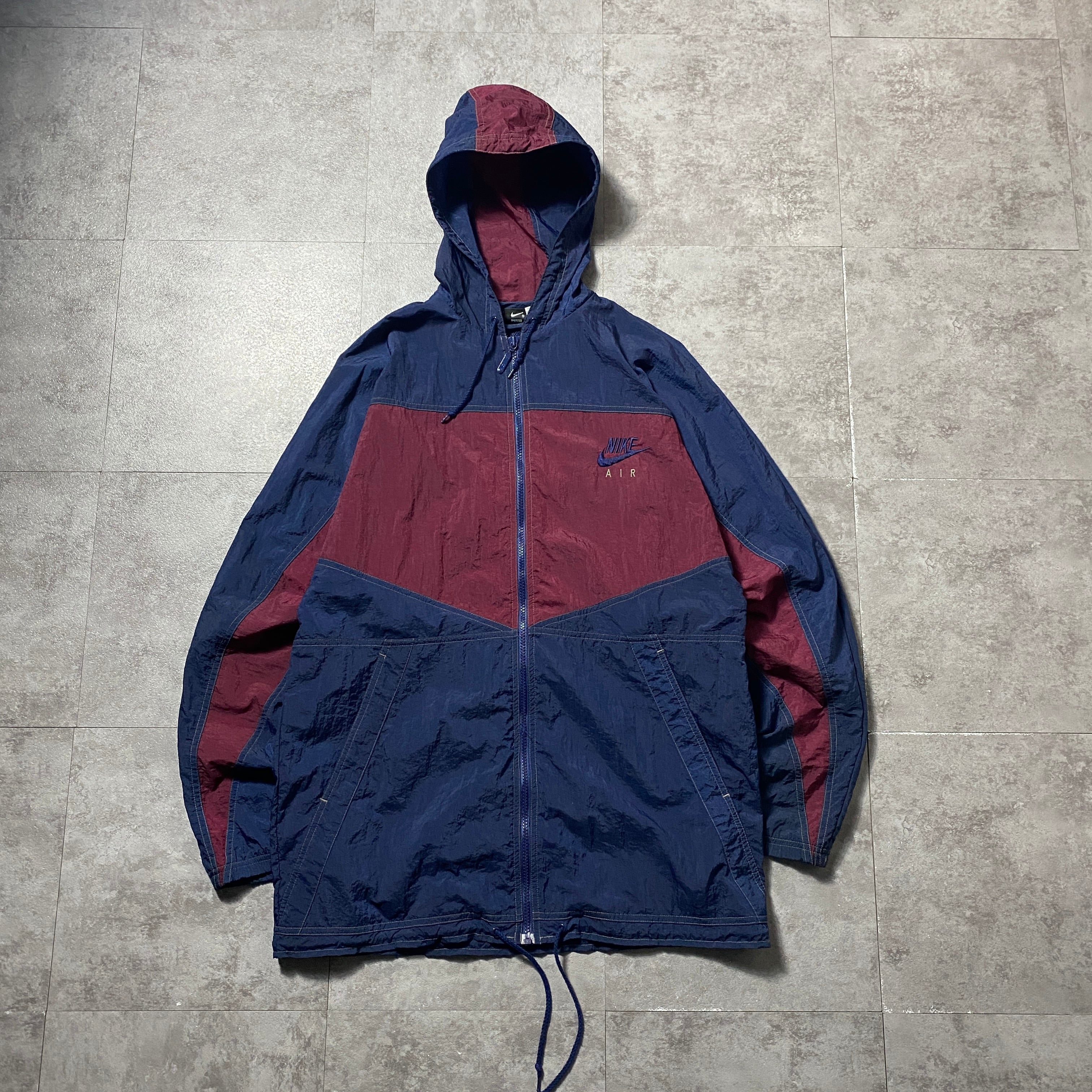 90's NIKE AIR ナイキ CHAMPSタグ スウォッシュ 刺繍ワンポイント フード付 ナイロンジャケット