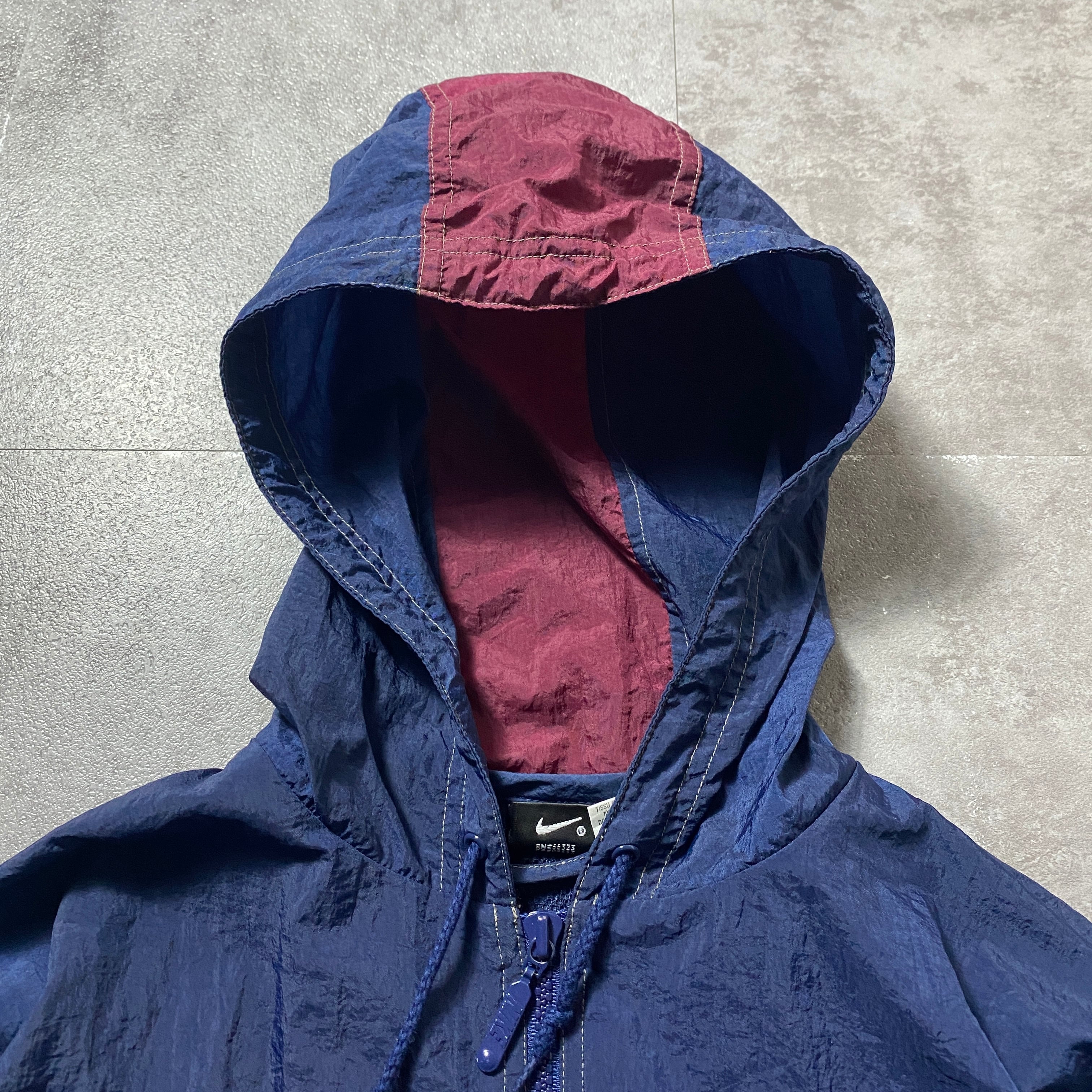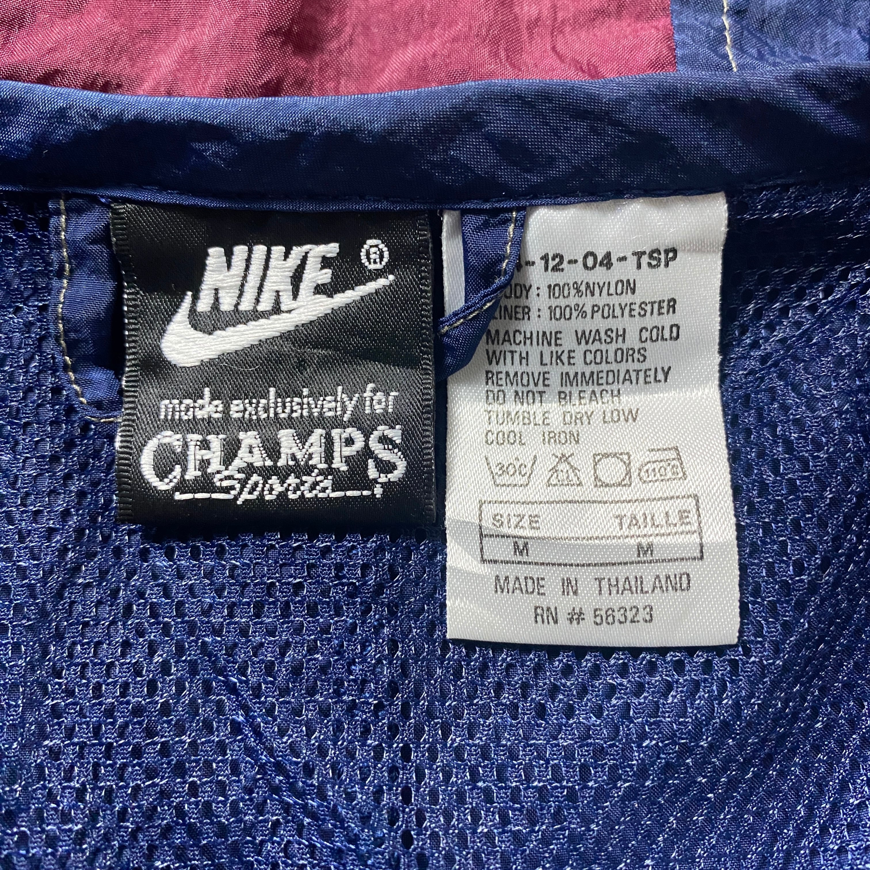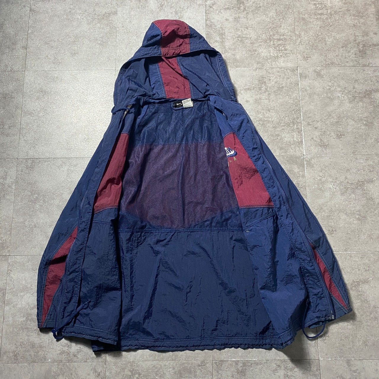 90's NIKE AIR ナイキ CHAMPSタグ スウォッシュ 刺繍ワンポイント フード付 ナイロンジャケット