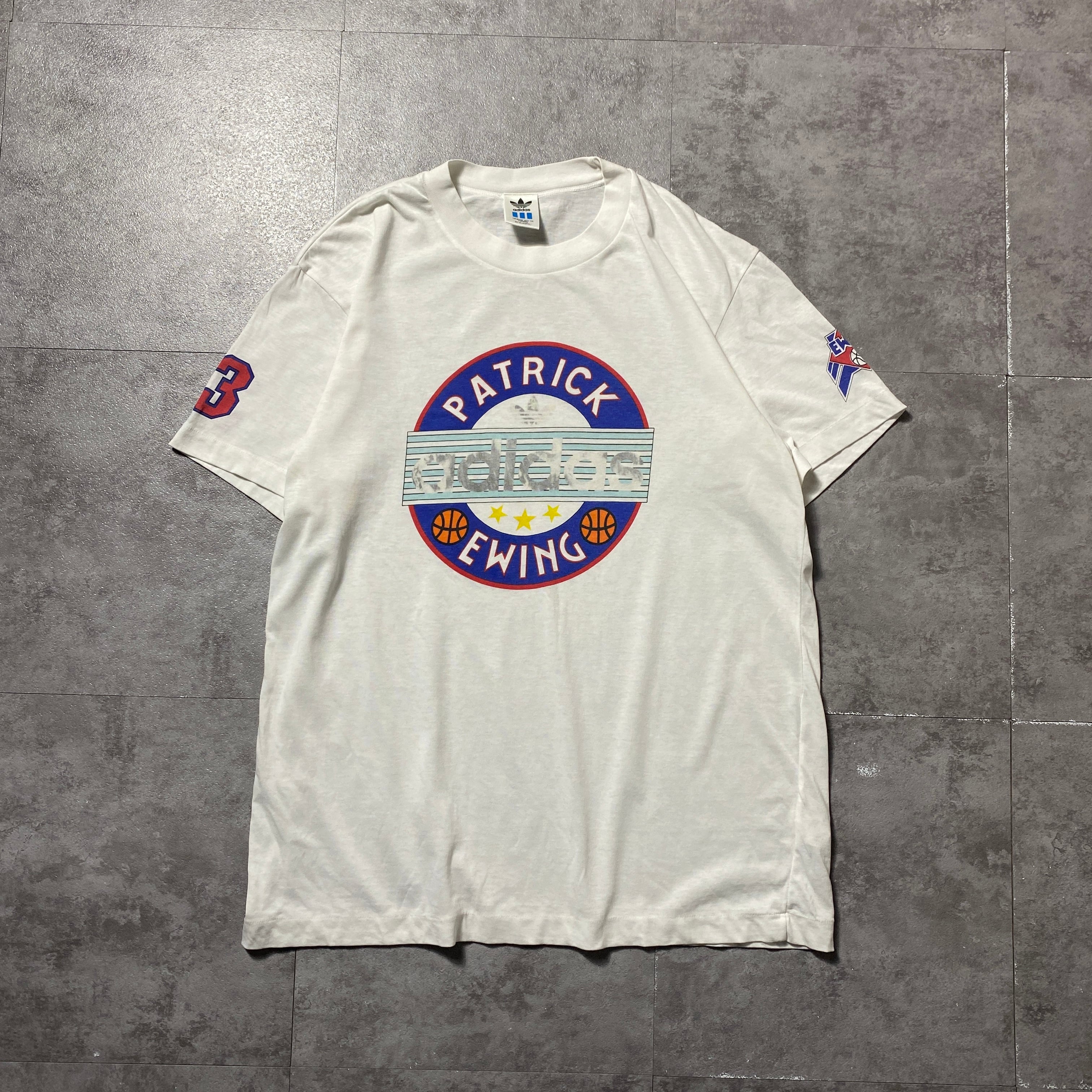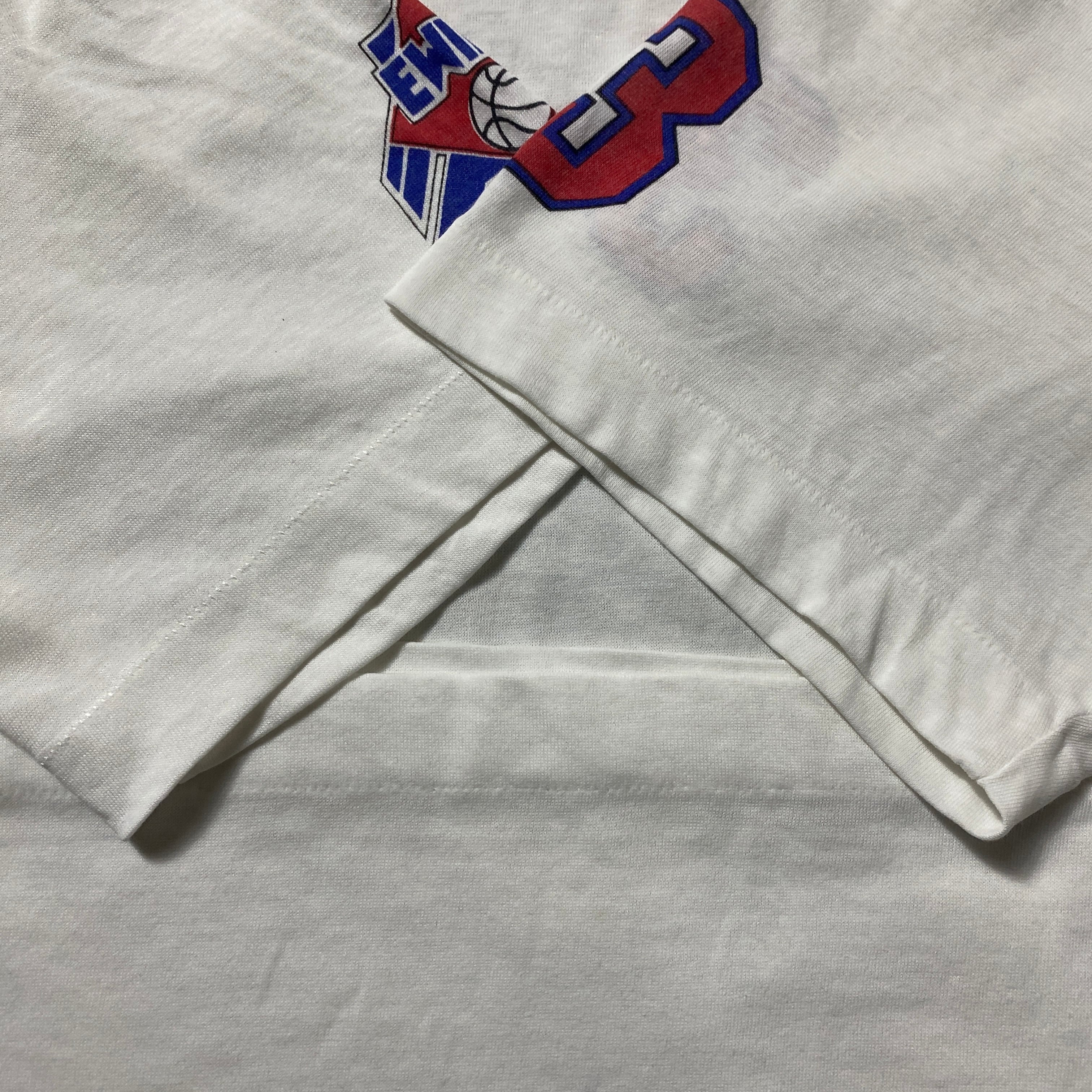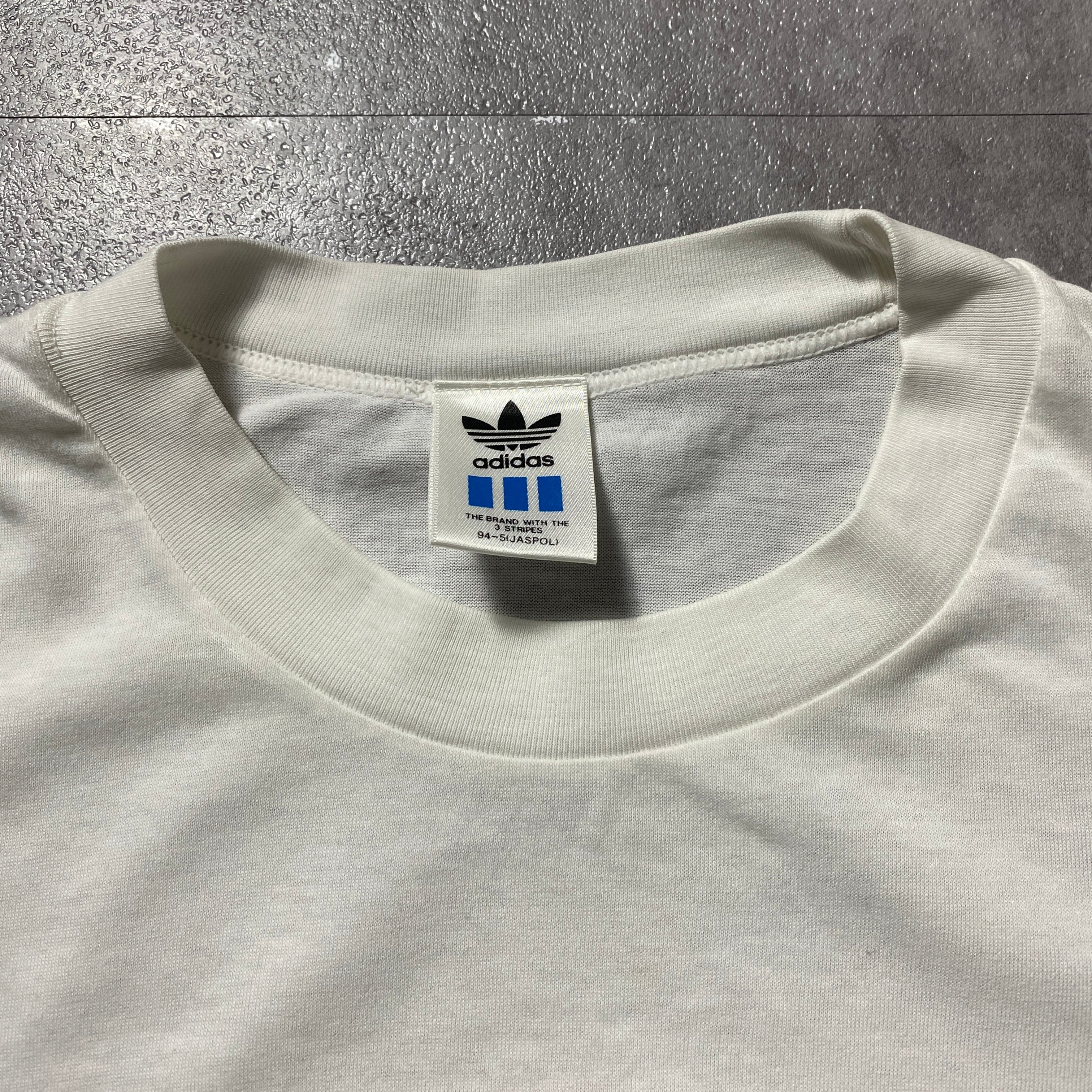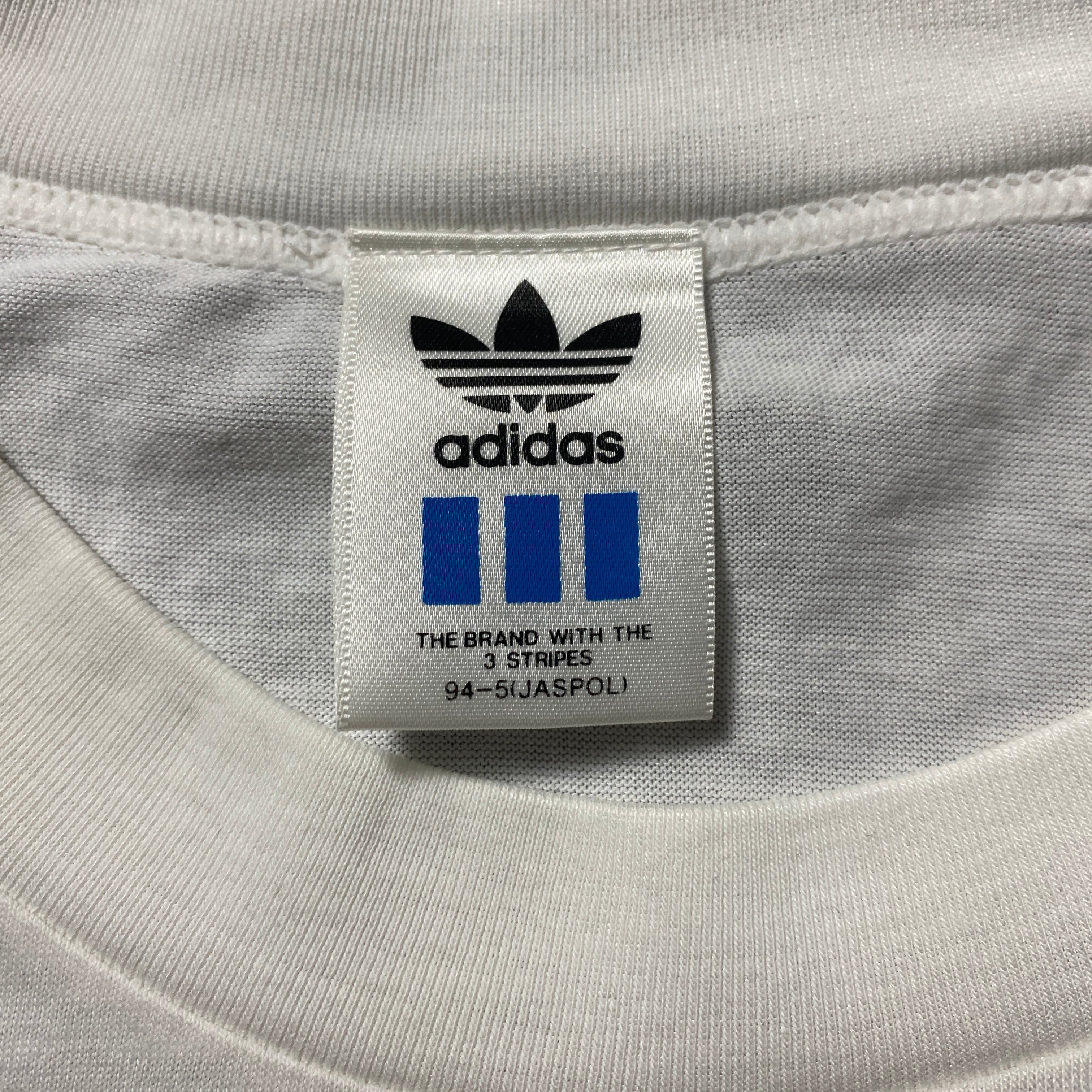 80's 90's adidas デサント製アディダス プリント シングルステッチ ホワイト 白 Tシャツ