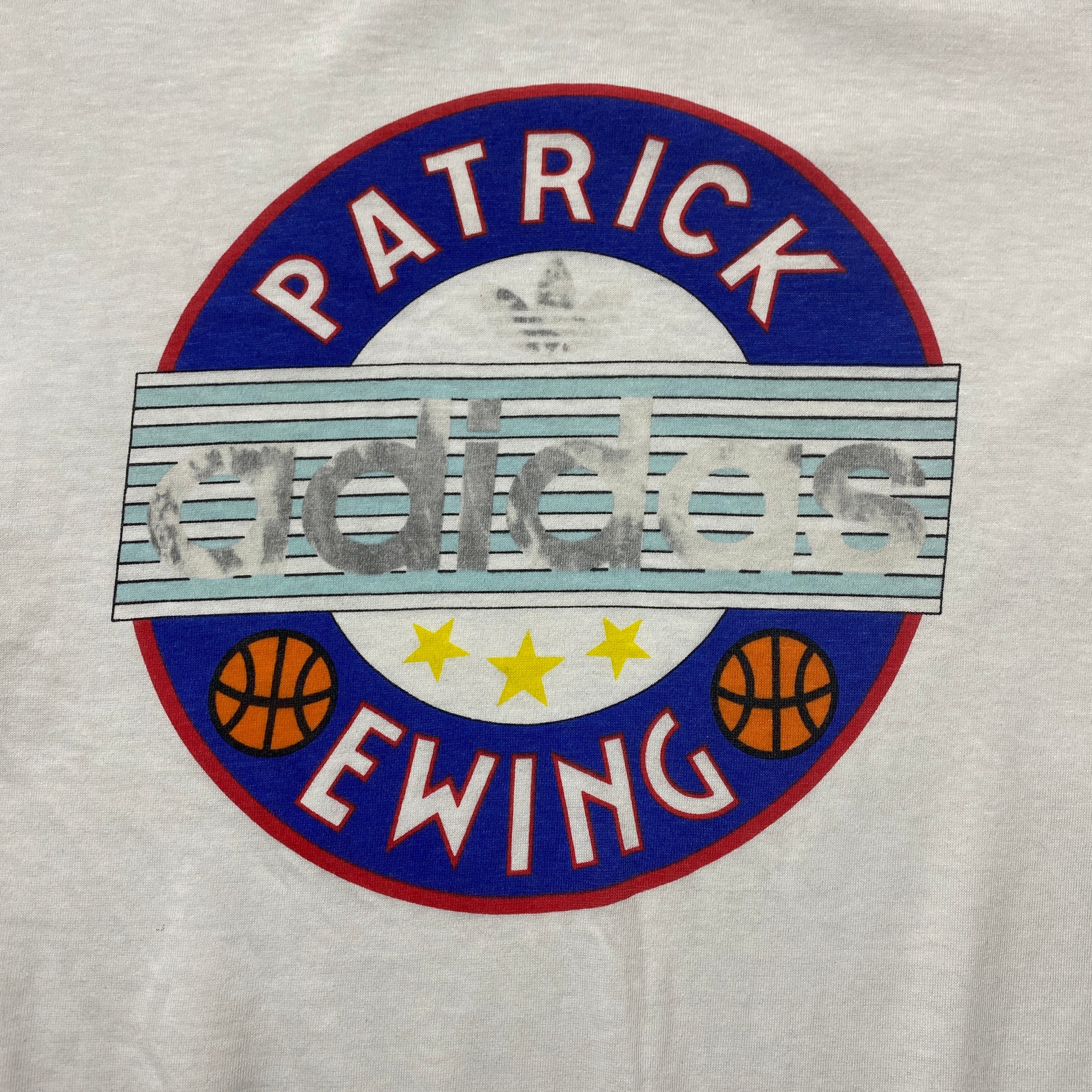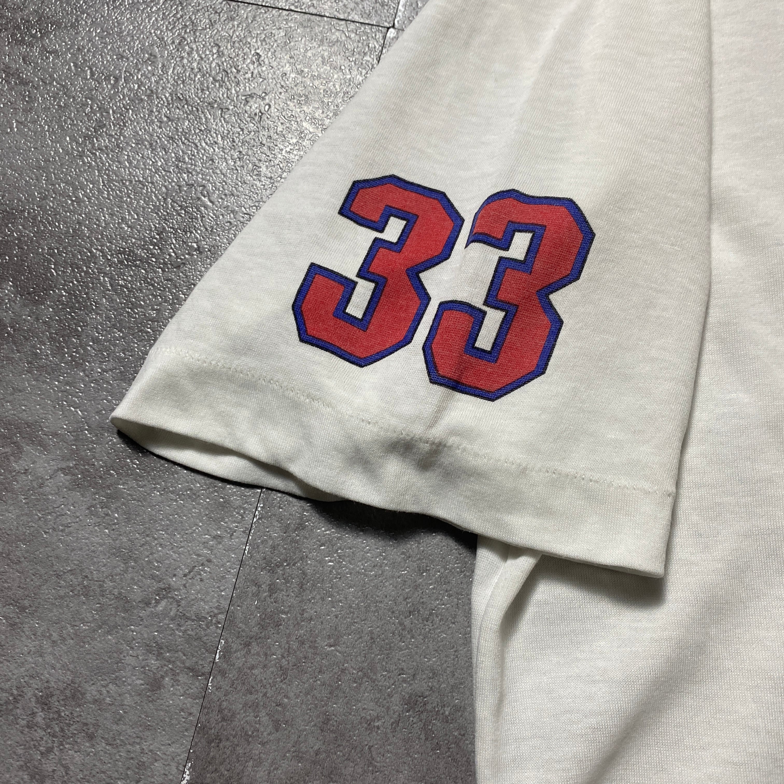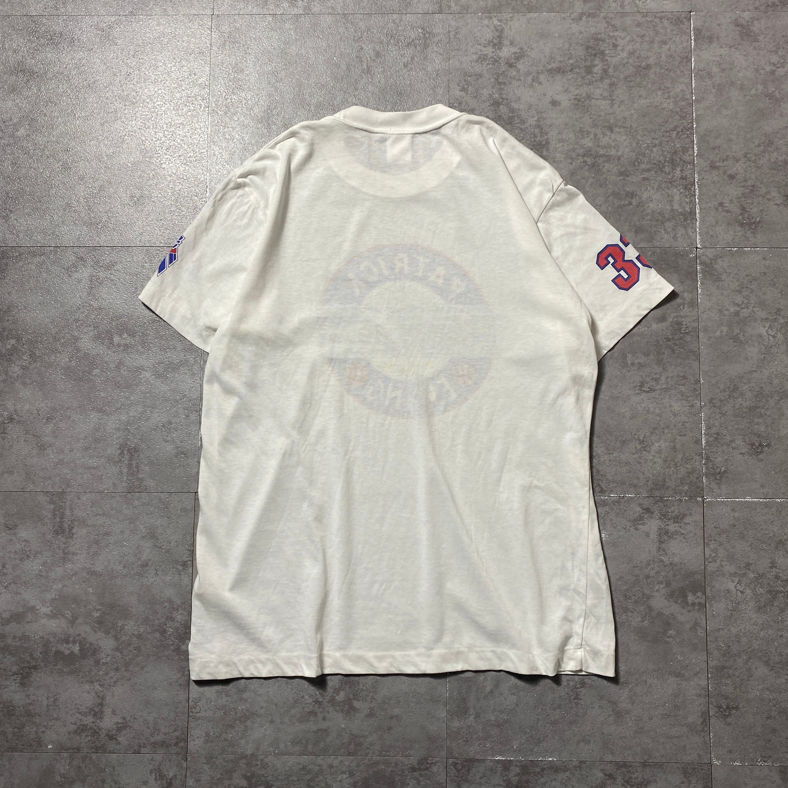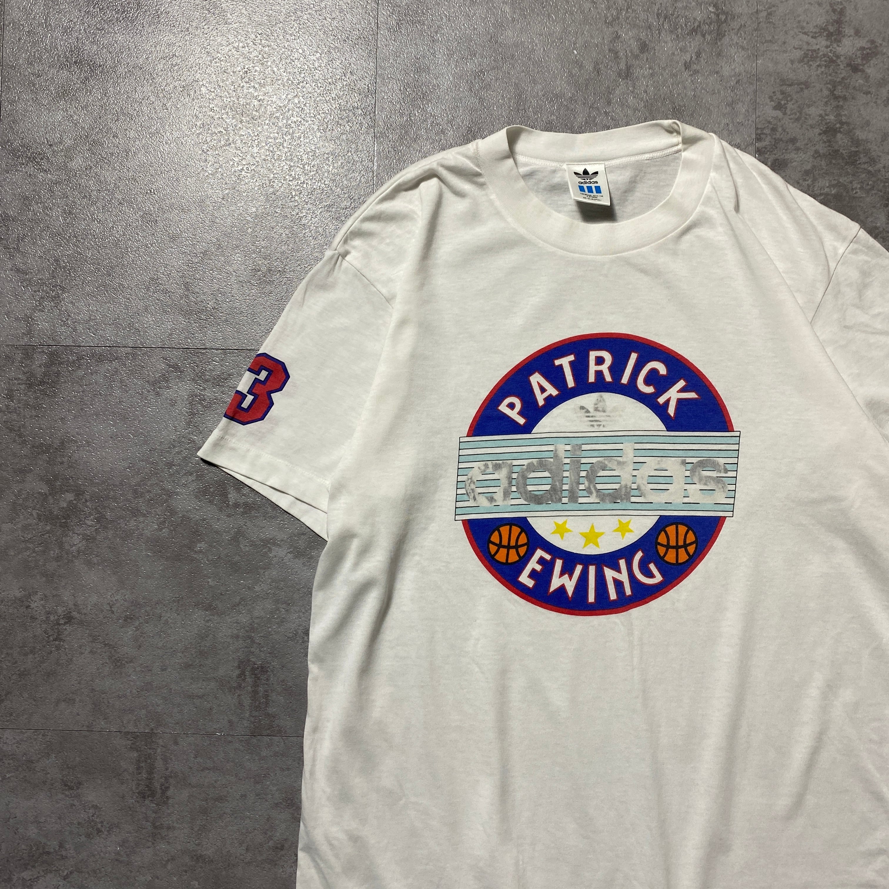 80's 90's adidas デサント製アディダス プリント シングルステッチ ホワイト 白 Tシャツ