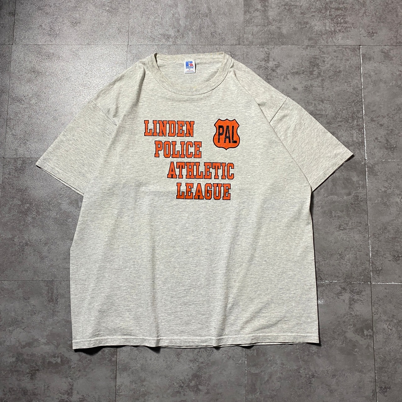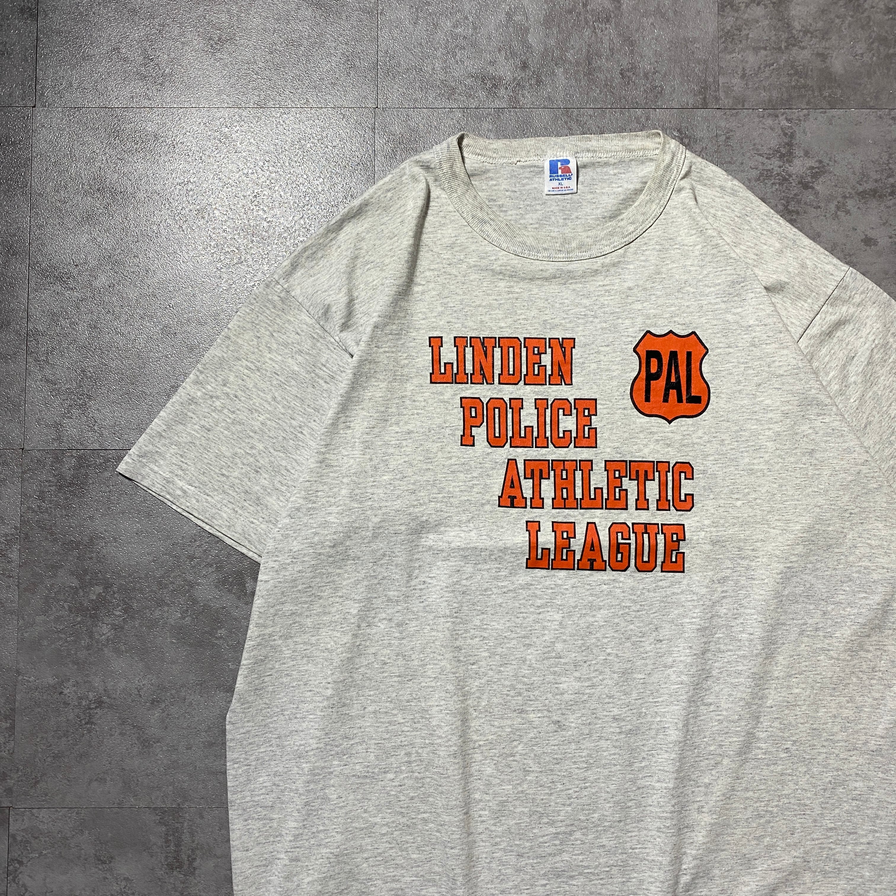 【USA製】90's RUSSEL ATHLETIC ラッセルアスレチック アメリカローカルカルチャー(警察×青少年スポーツ) プリント シングルステッチ グレー Tシャツ