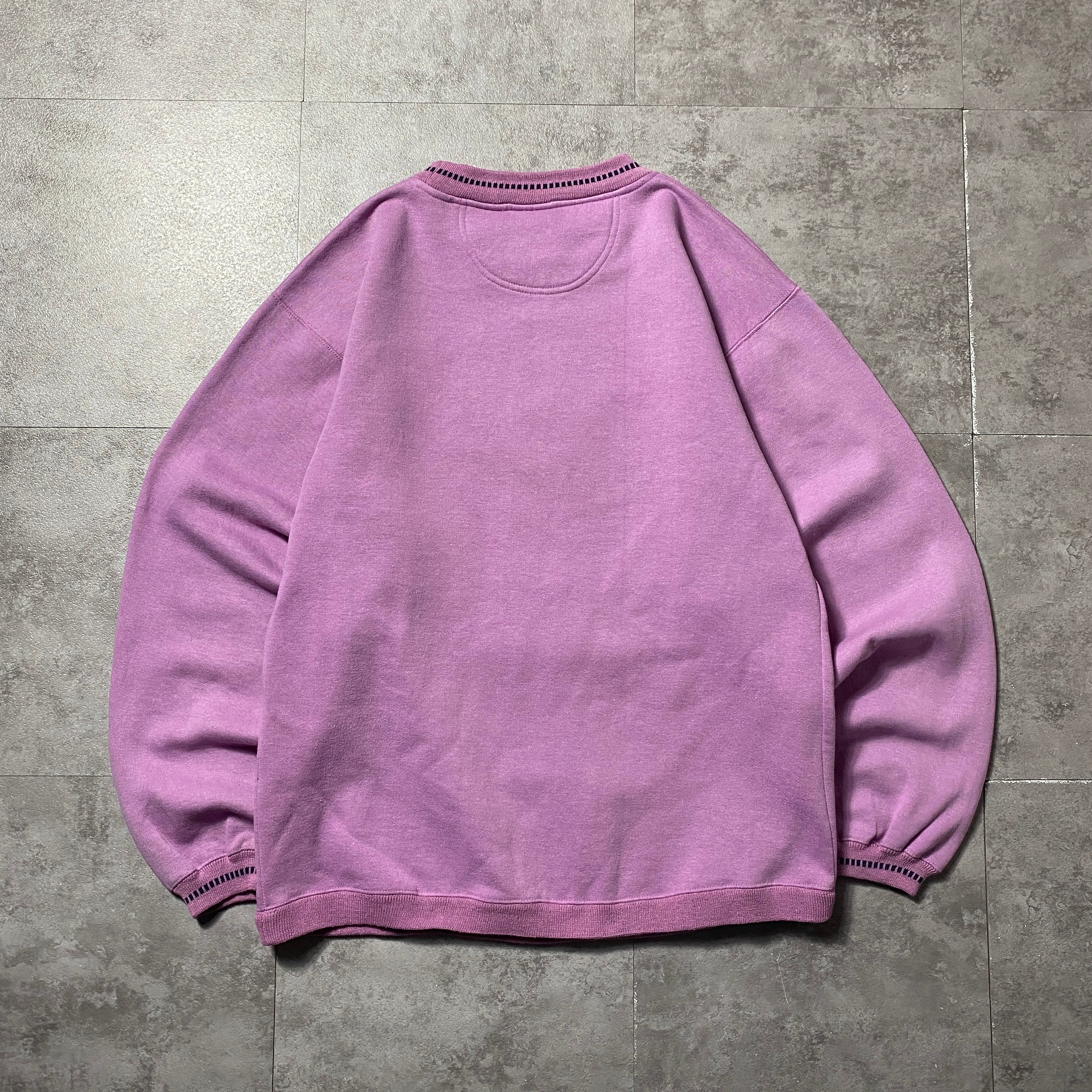 90's MICKEY&CO. Old Disney オールドディズニー ミッキー 刺繍ロゴ デザインリブ パープル パステルカラー スウェット トレーナー