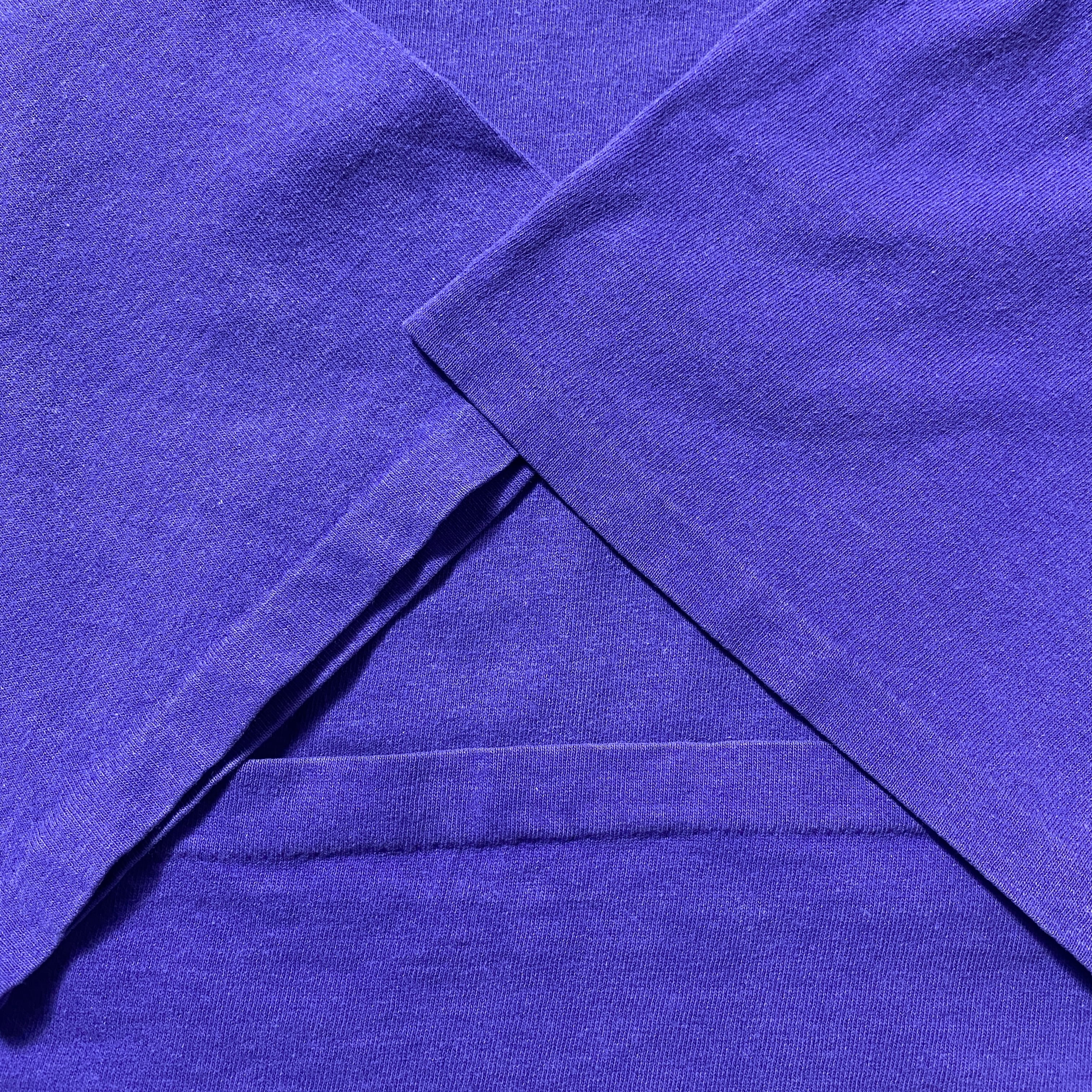90's LOONEY THUNES ルーニーテューンズ ダフィーダック ワンポイント フェルトロゴ 胸ポケット シングルステッチ パープル Tシャツ