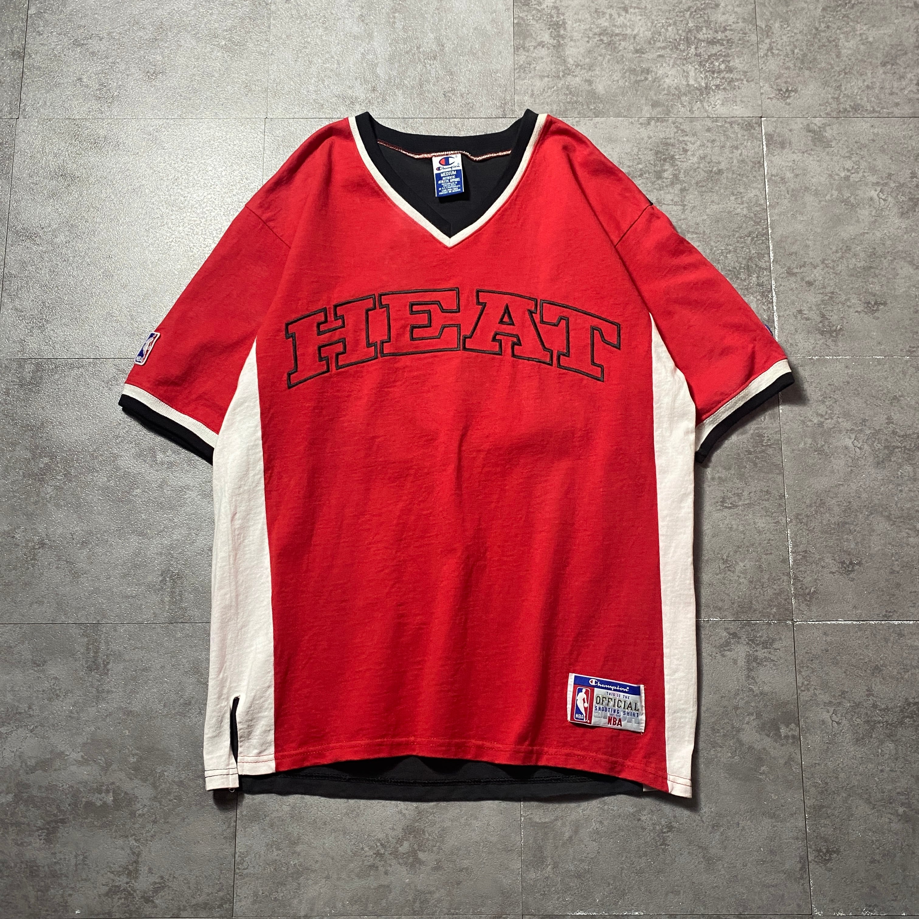 90's Champion NBA HEAT チャンピオン マイアミ・ヒート 刺繍ロゴ ラインリブ ヘビーオンス Tシャツ ゲームシャツ