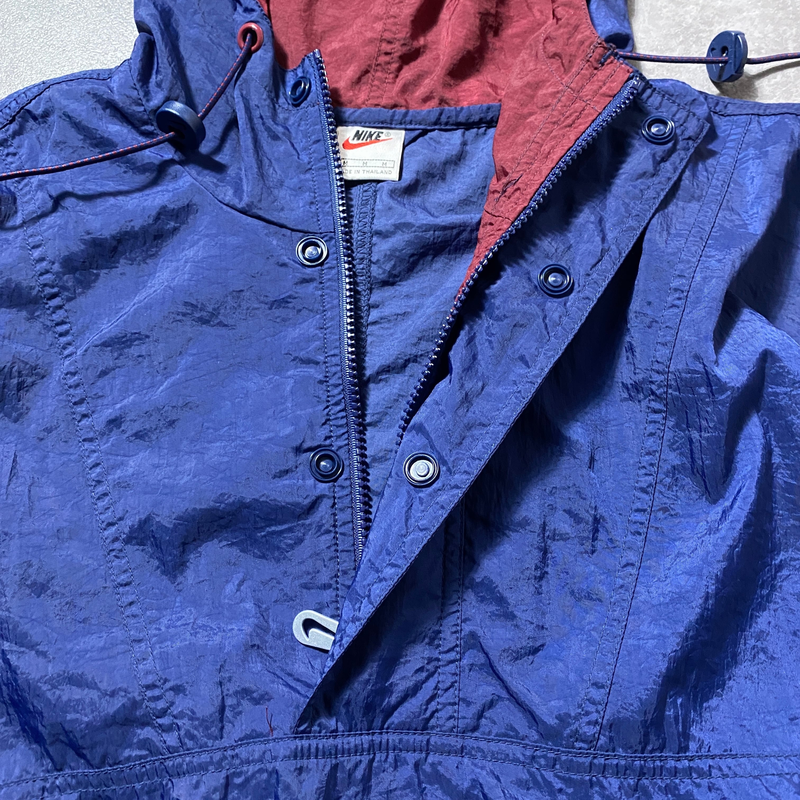 90's NIKE ナイキ ハーフジップ センタースウォッシュ ドローコード付 ネイビー ナイロン アノラックパーカー