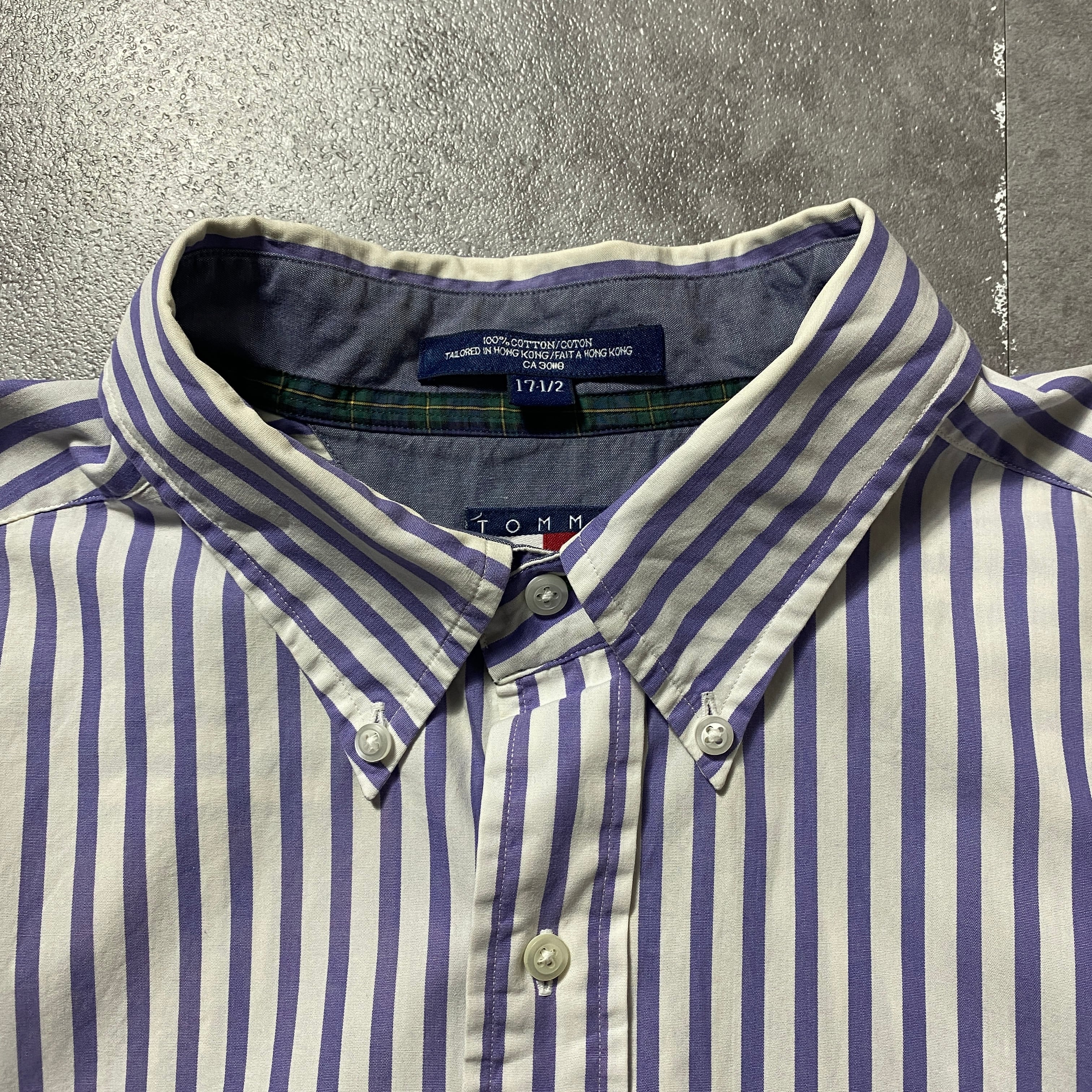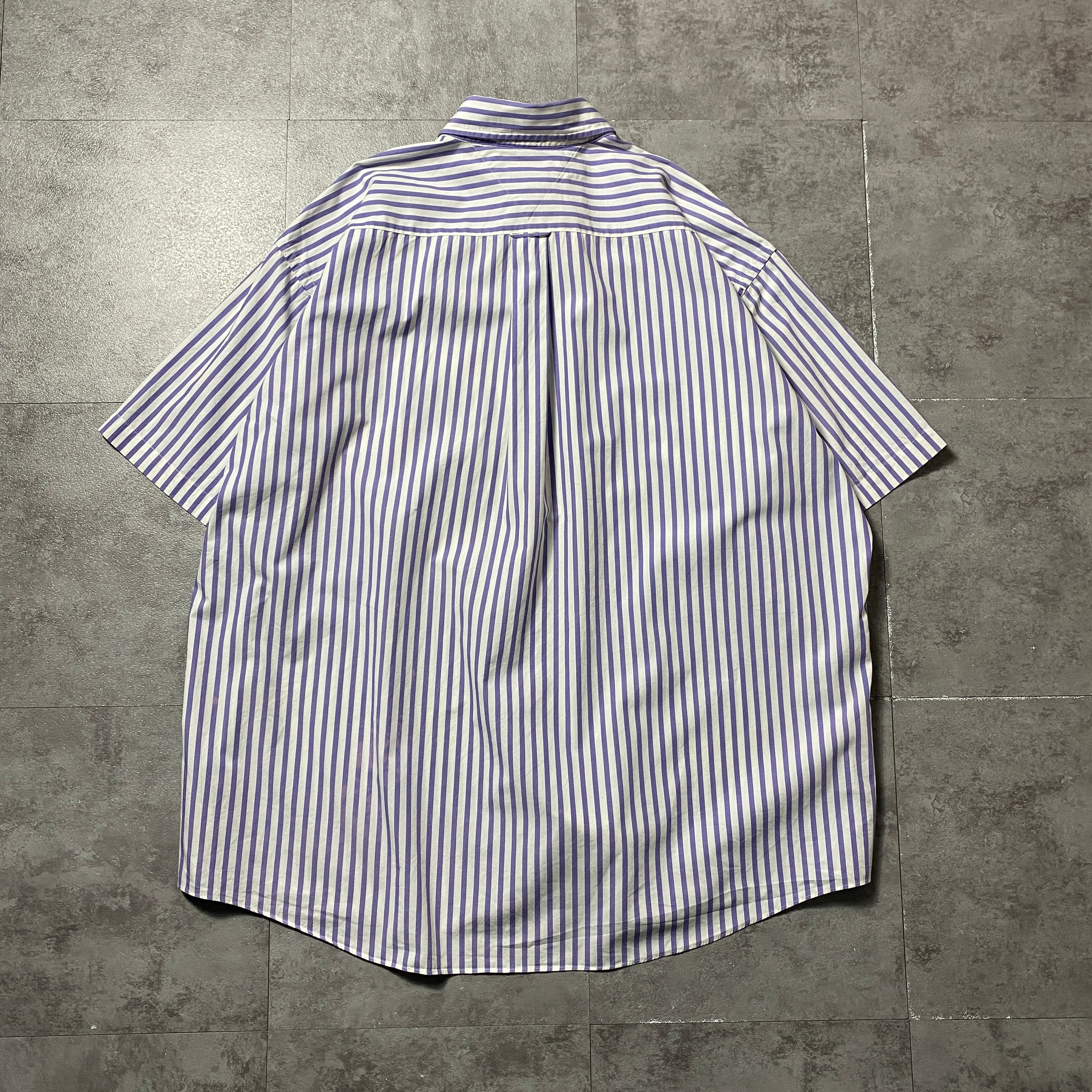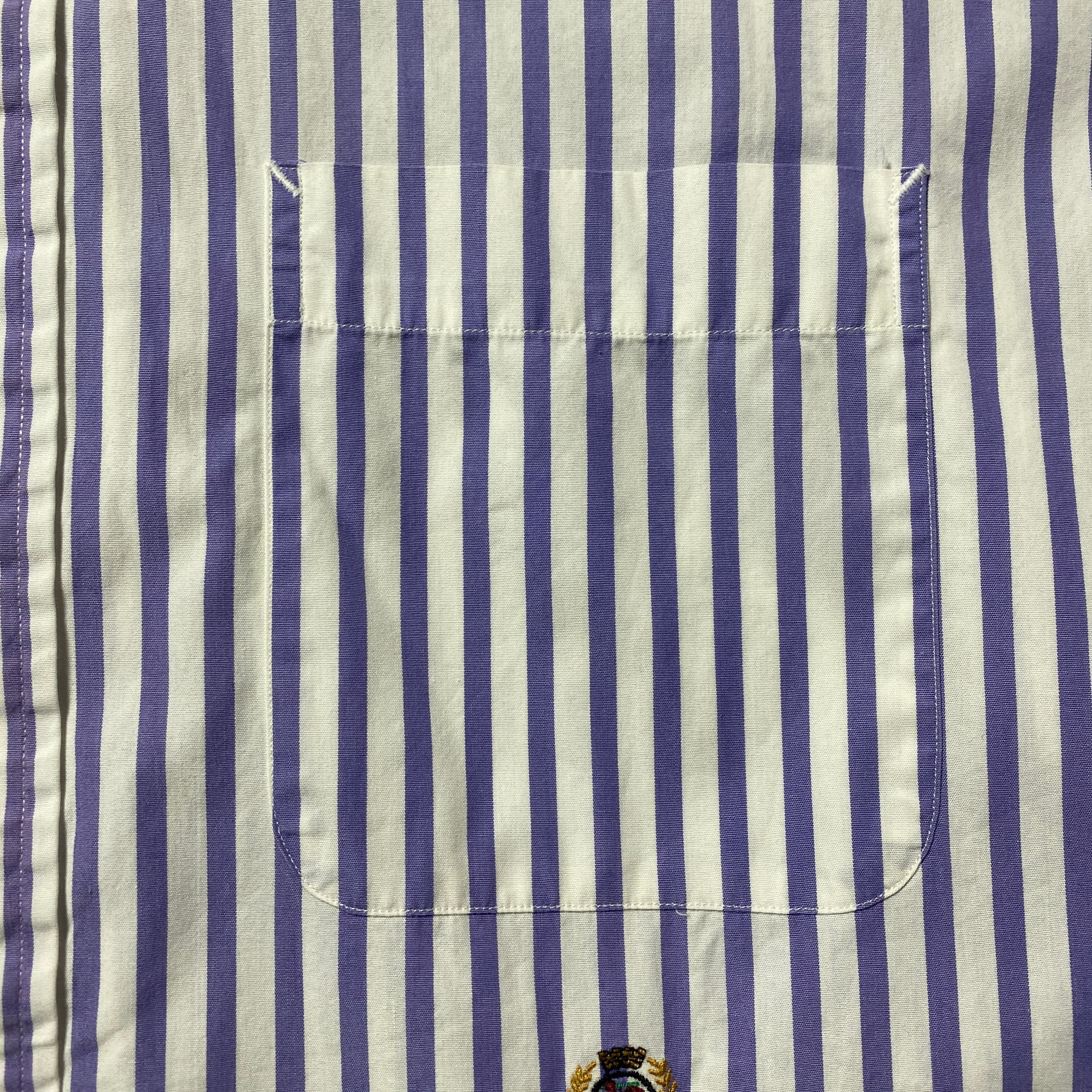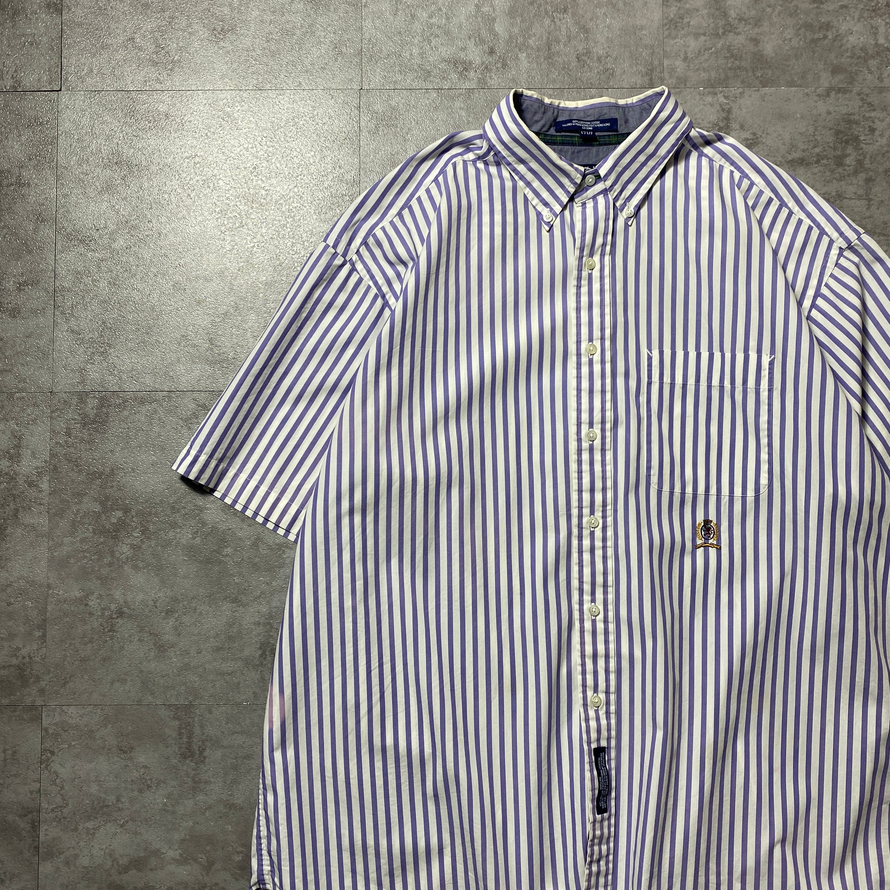 90's 00's Tommy Hilfiger トミーヒルフィガー 刺繍ロゴ 胸ポケット ストライプ 半袖 ボタンダウンシャツ