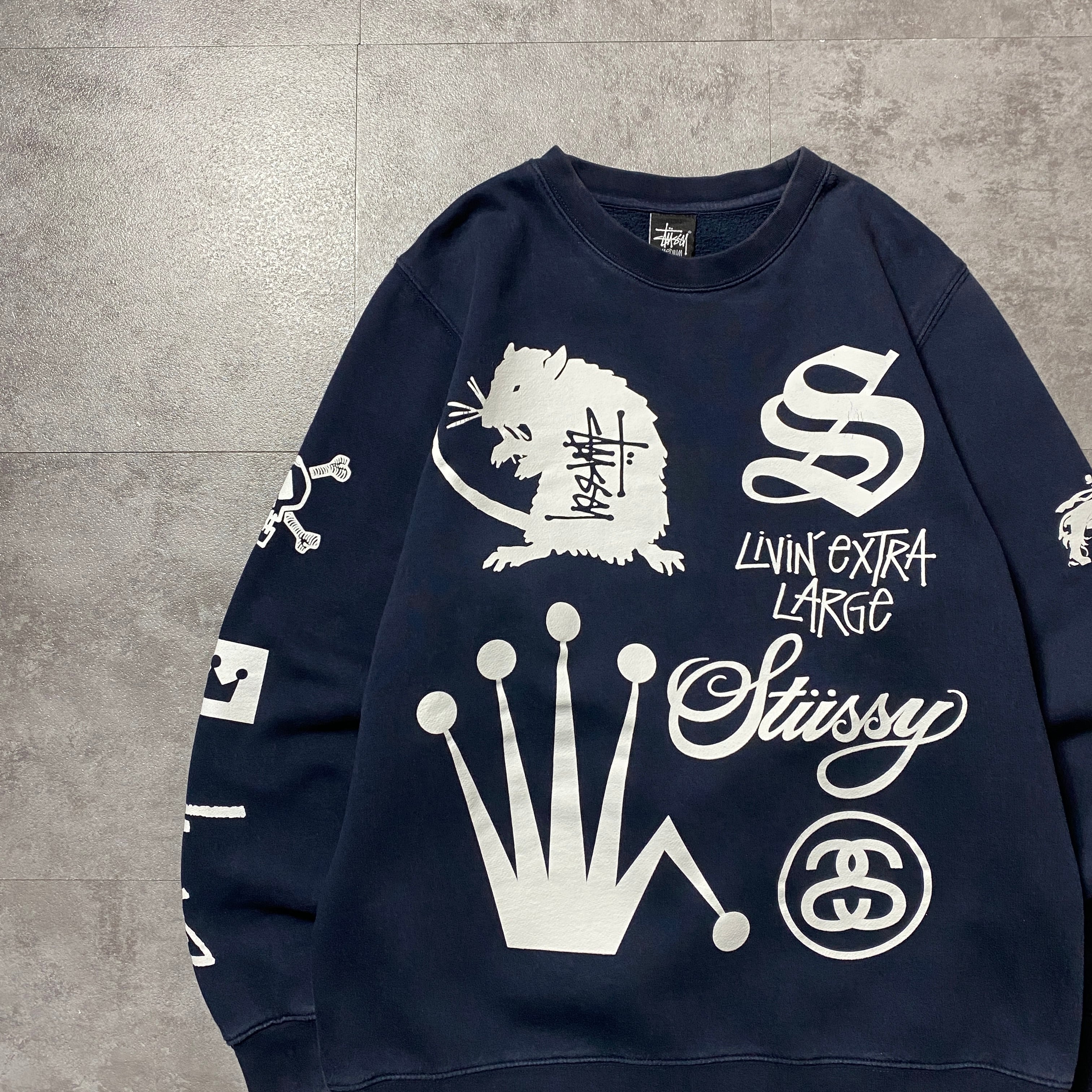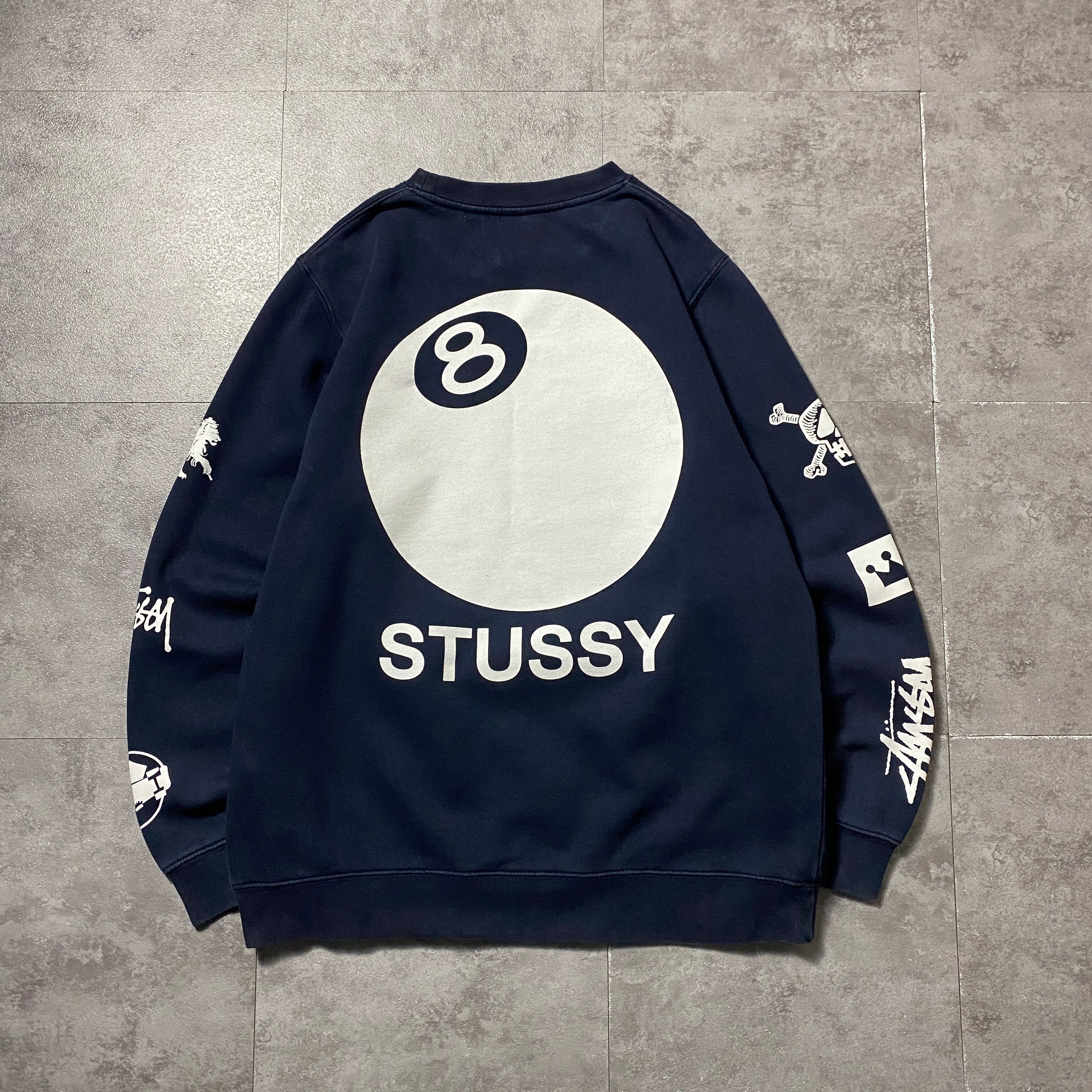 stussy ステューシー ランダムロゴプリント 8ボール バックプリント ネイビー スウェット トレーナー