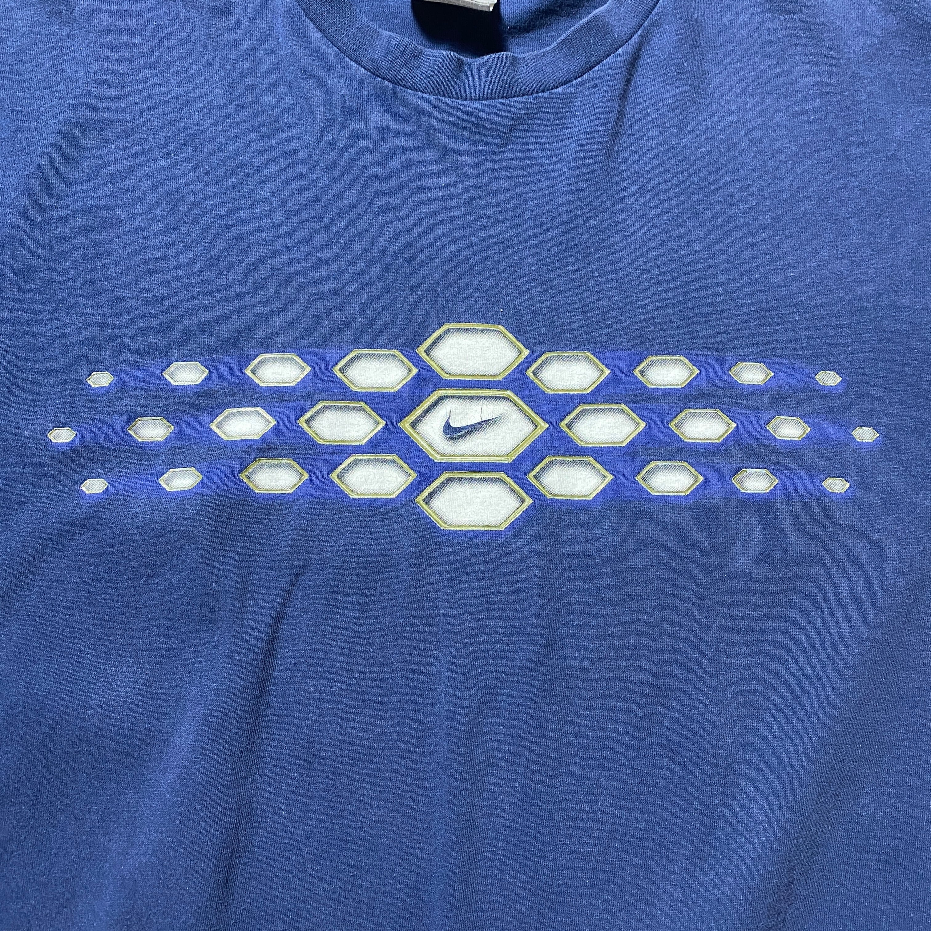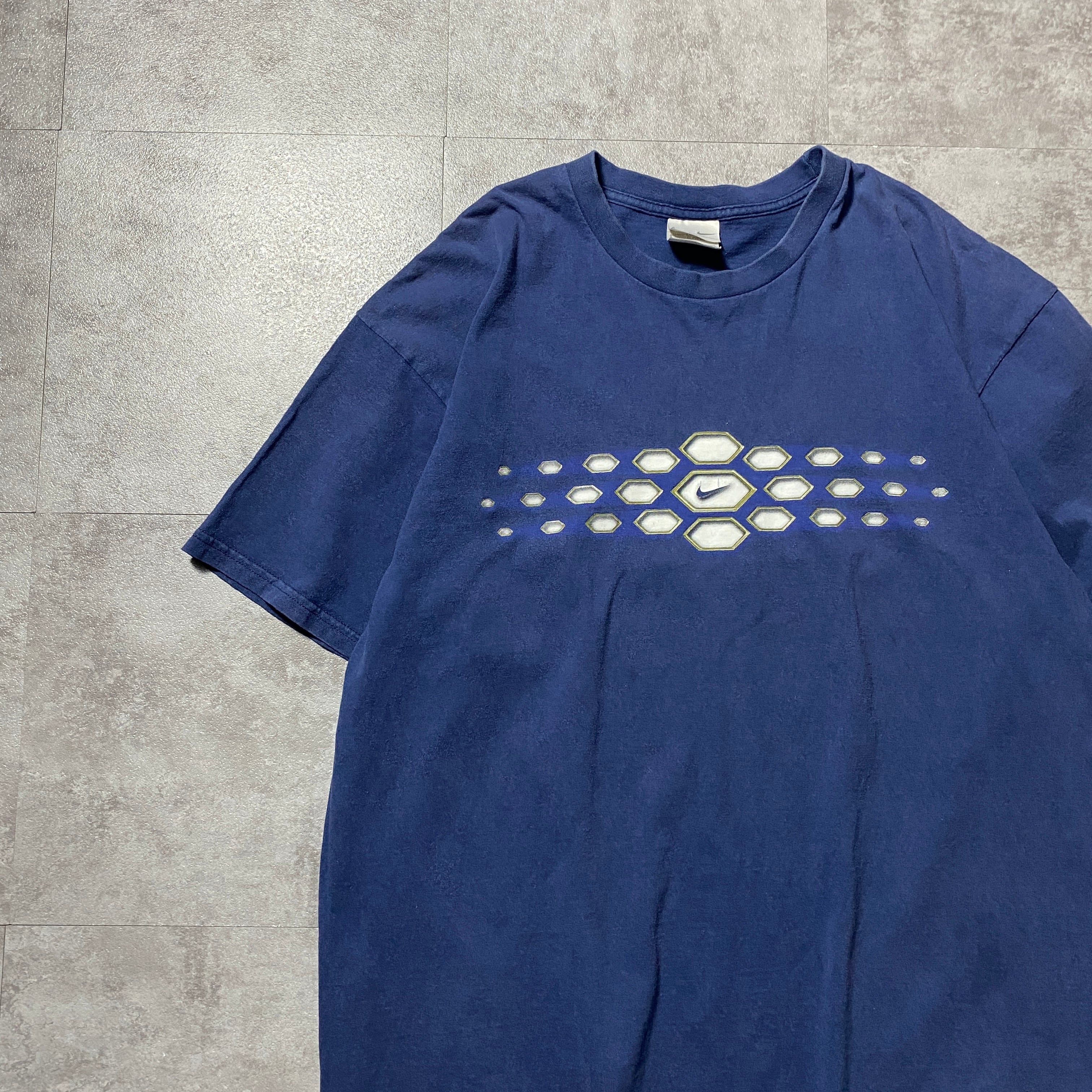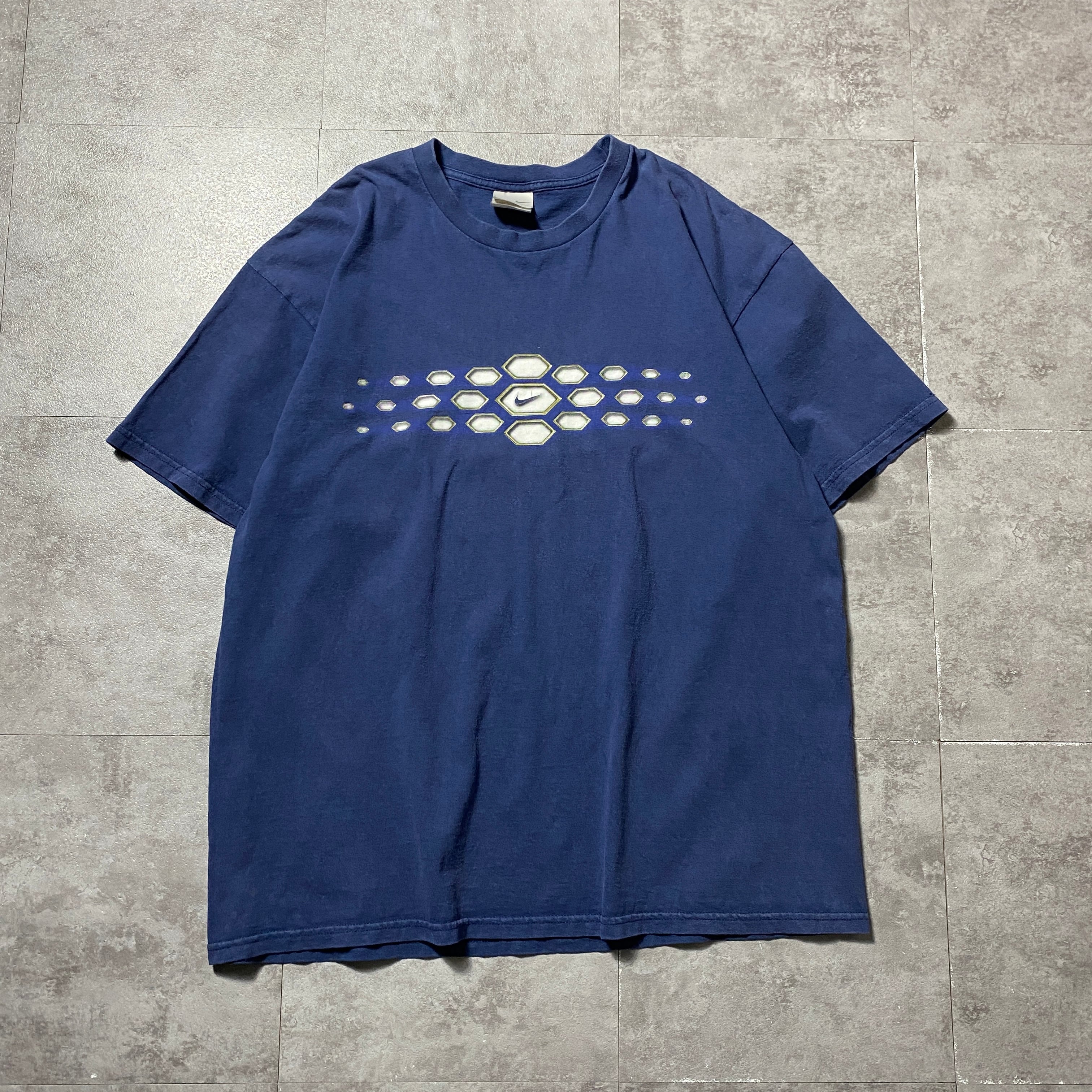 00's NIKE ナイキ センタースウォッシュ 柄プリント XLサイズ ネイビー Tシャツ