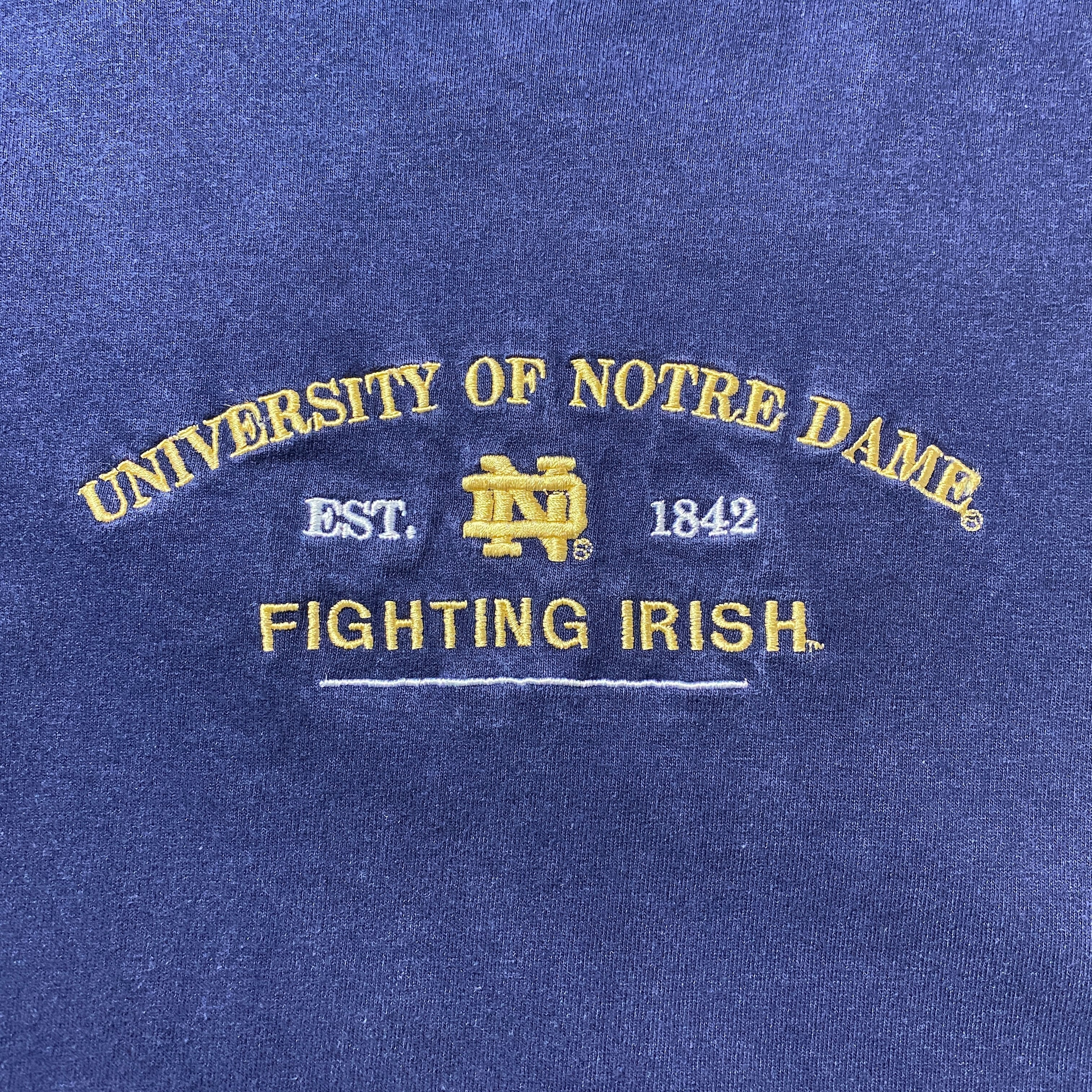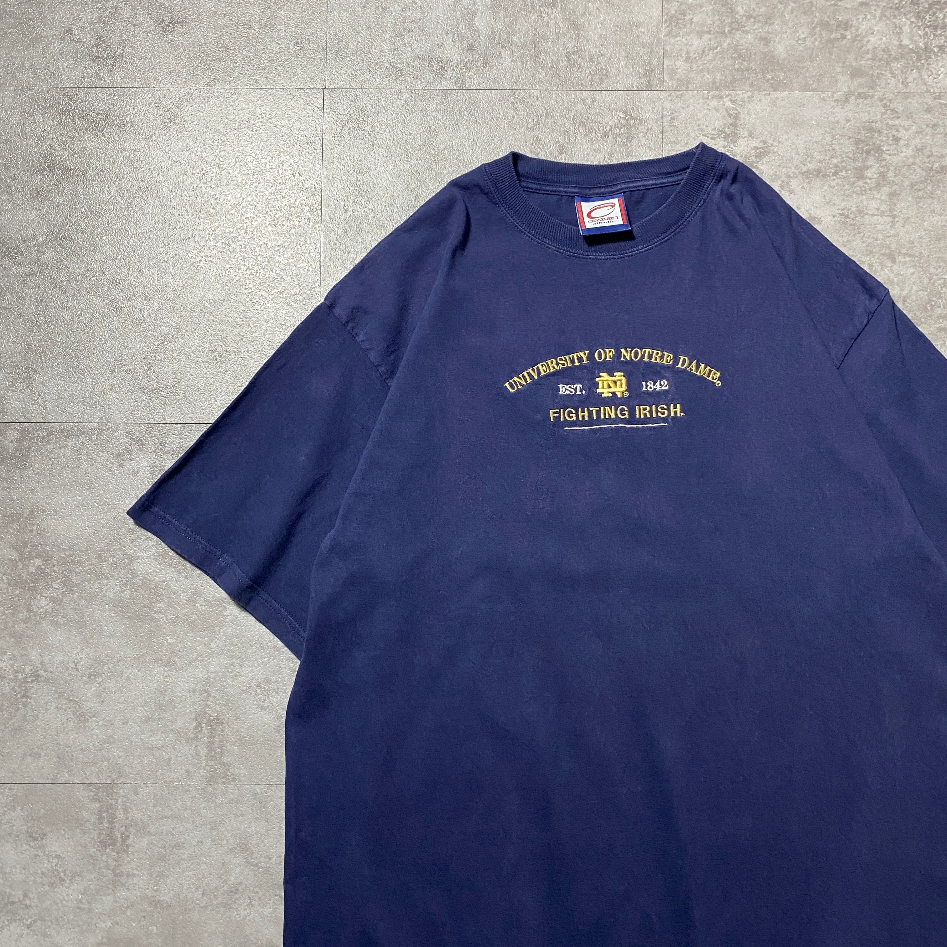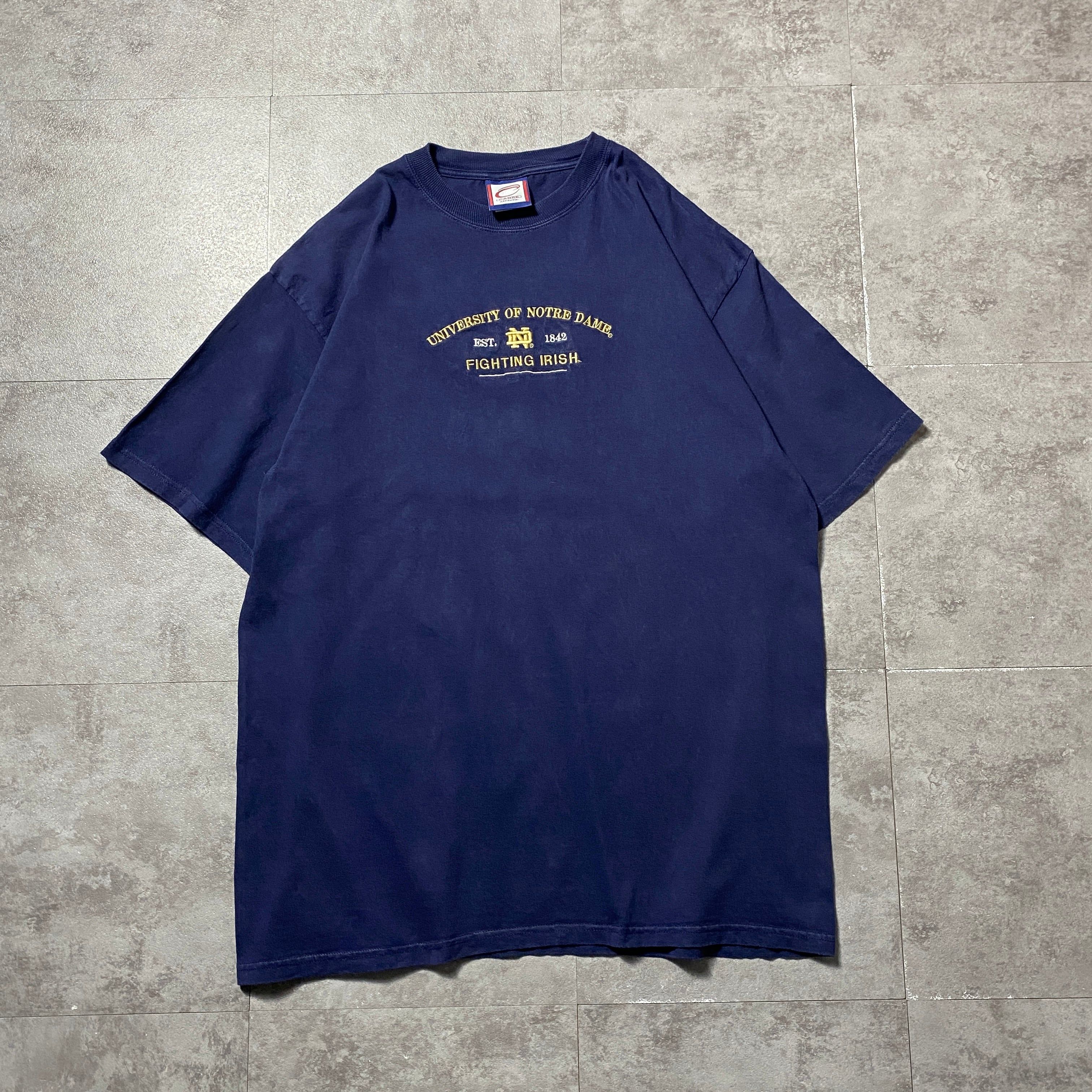 00's CADRE ノートルダム大学 ファイティングアイリッシュ 刺繍カレッジロゴ ネイビー Tシャツ