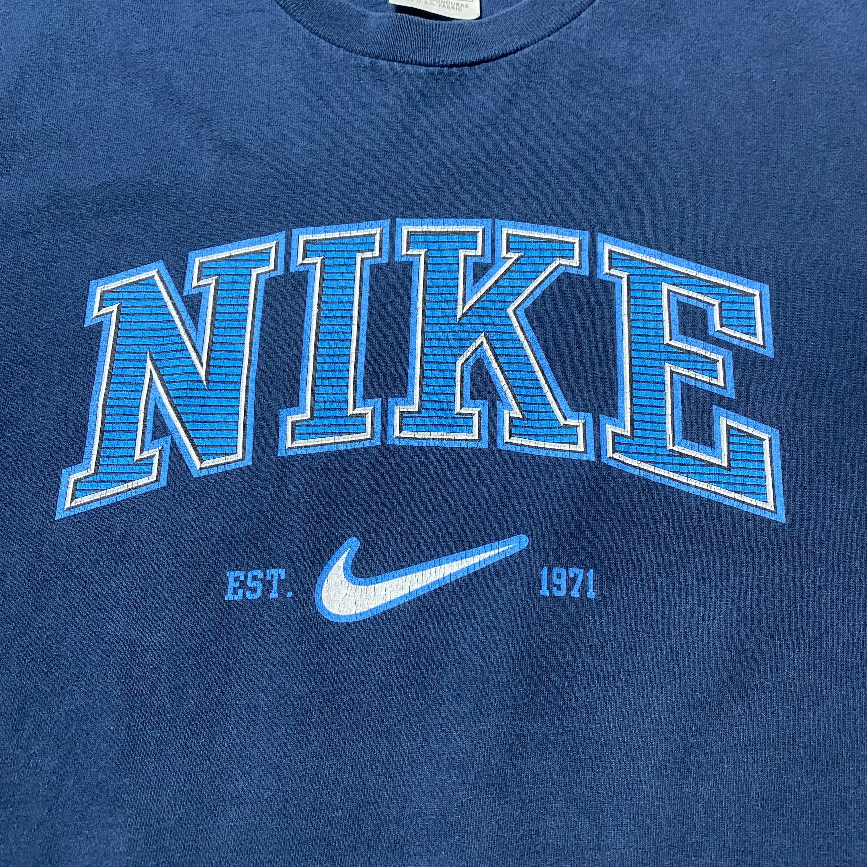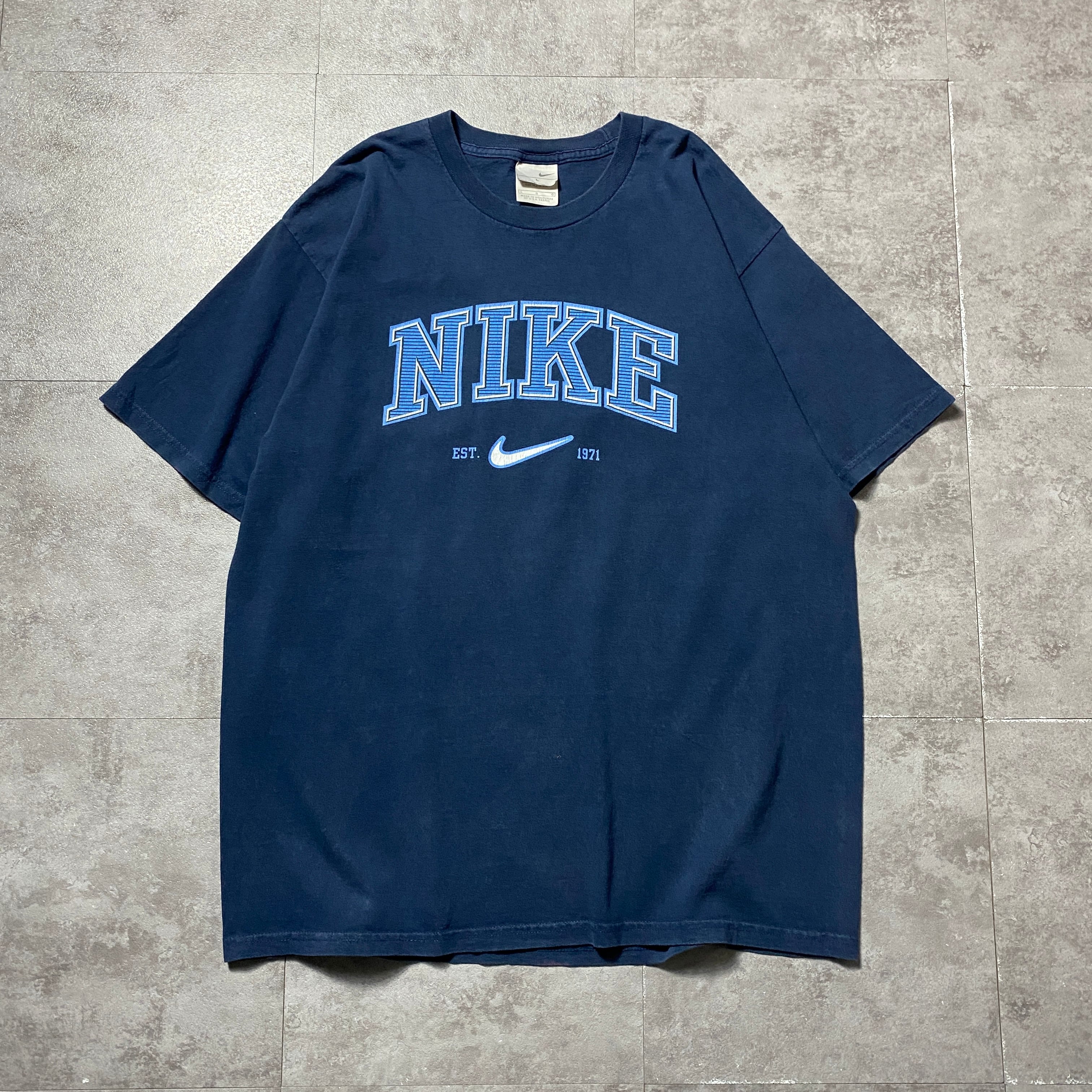 00's NIKE ナイキ アーチロゴ スウォッシュ プリント ネイビー Tシャツ
