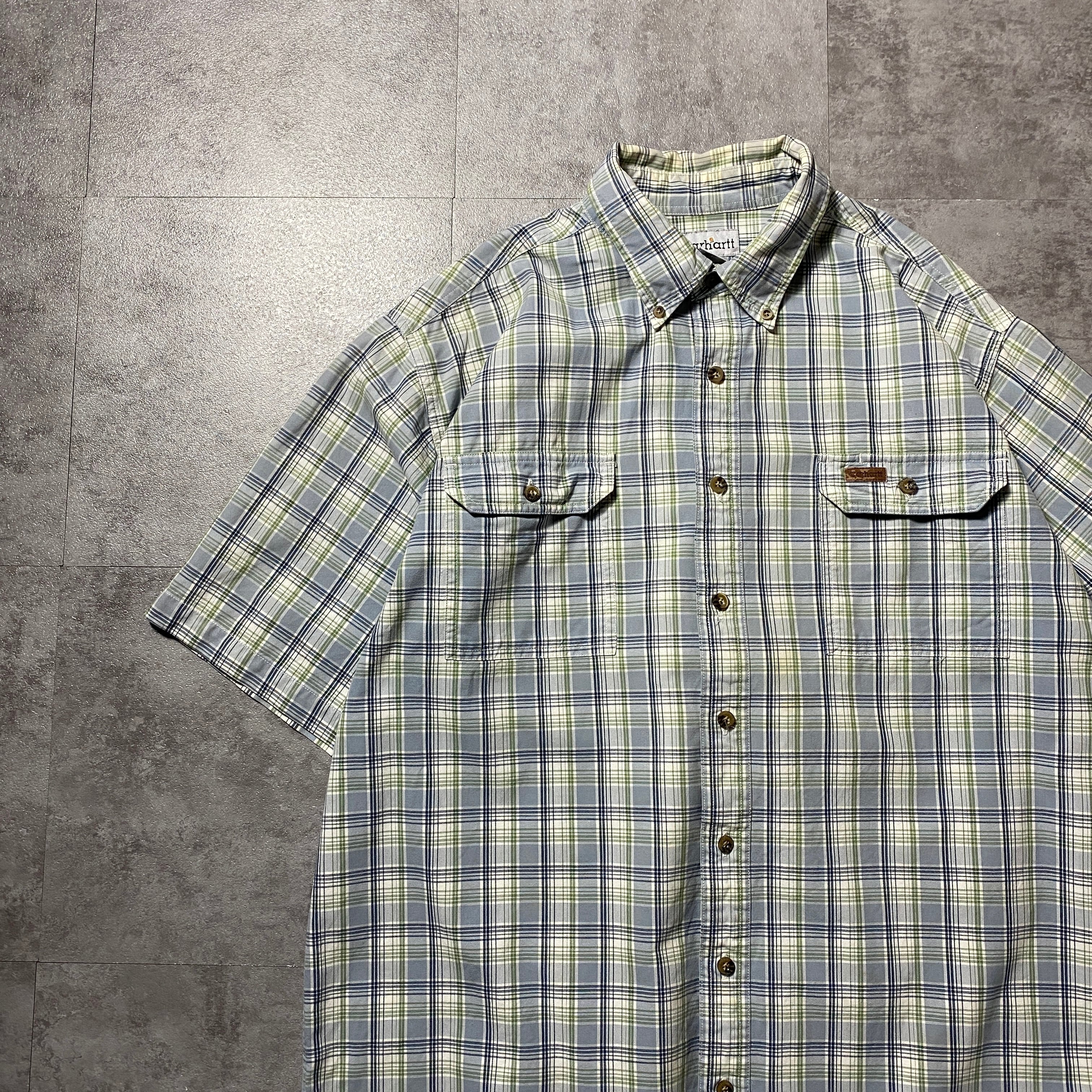 carhartt カーハート レザーパッチ ダブルポケット 半袖 チェックシャツ