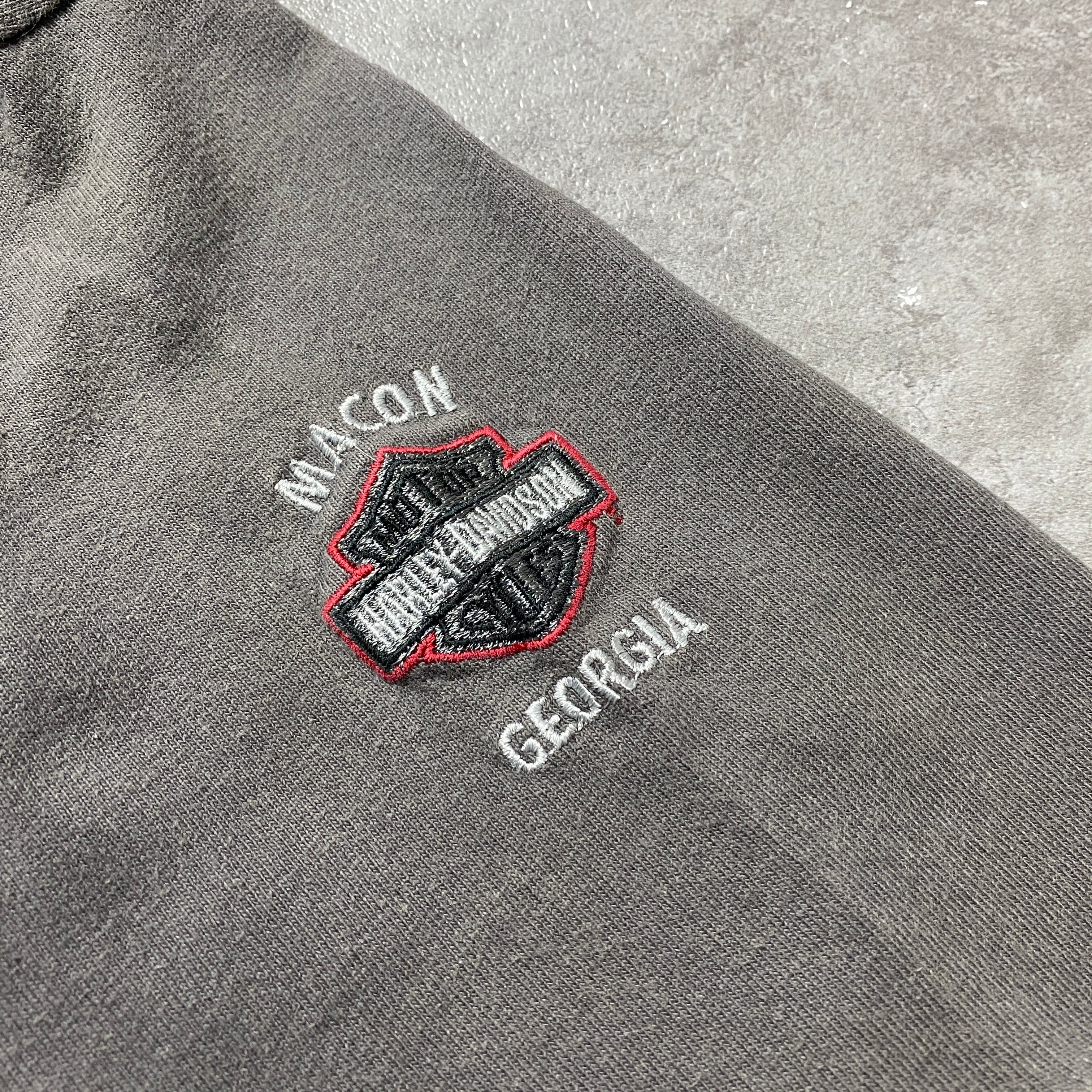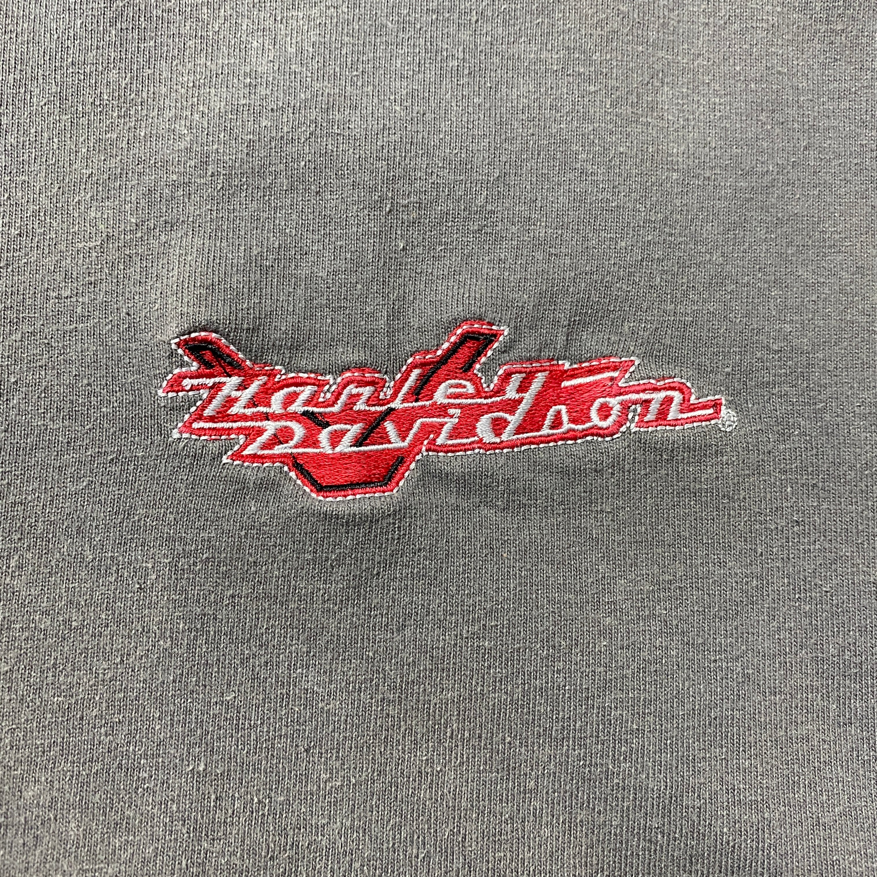 【USA製】90's Harley-Davidson ハーレーダビッドソン 刺繍ロゴ ヘンリーネック コットンデラックスボディ シングルステッチ Tシャツ