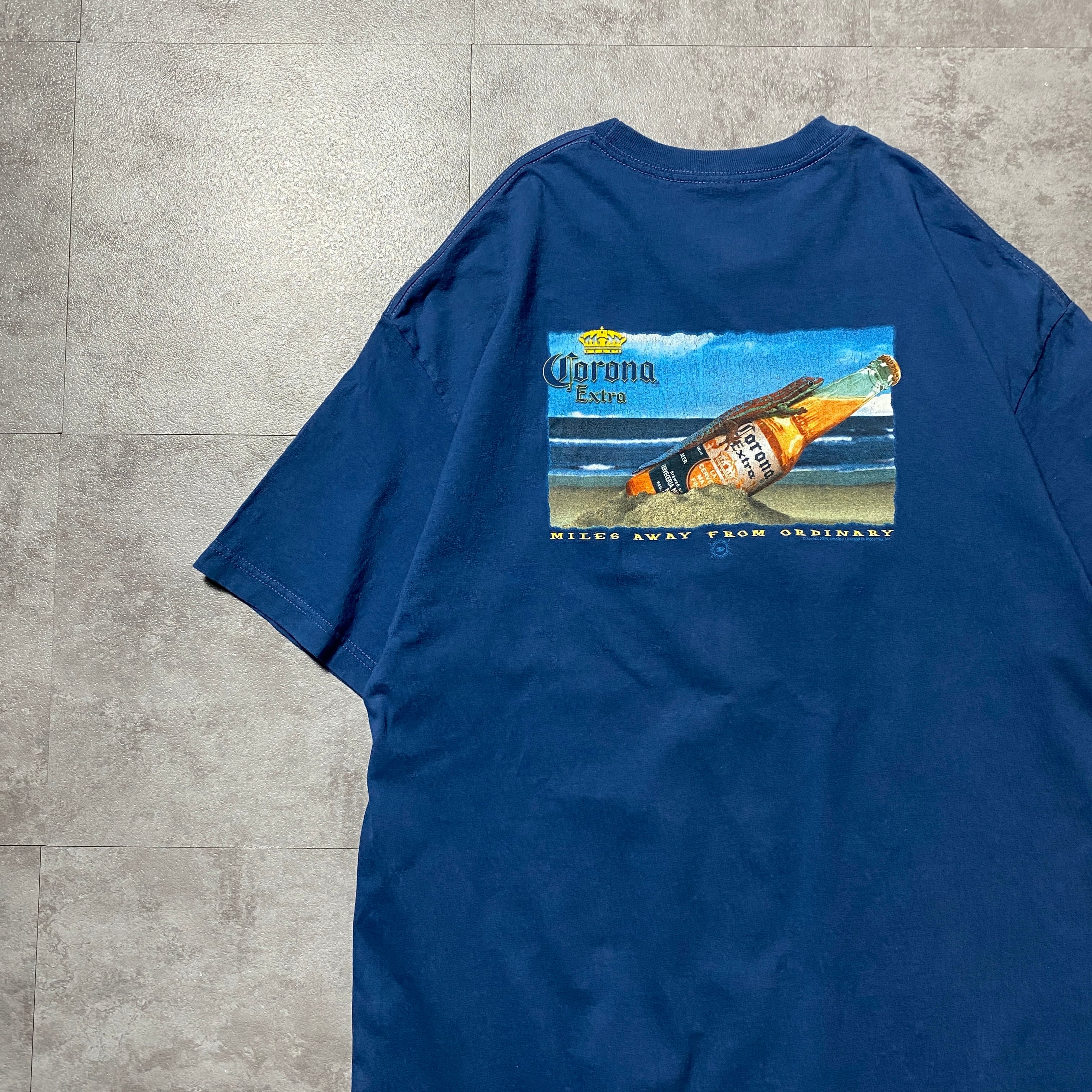 00's AAAボディ Corona Extra コロナエキストラ 飲料企業系 バックプリント ネイビー Tシャツ
