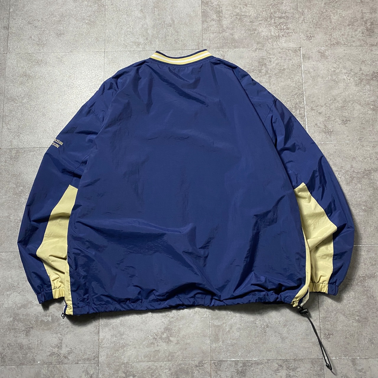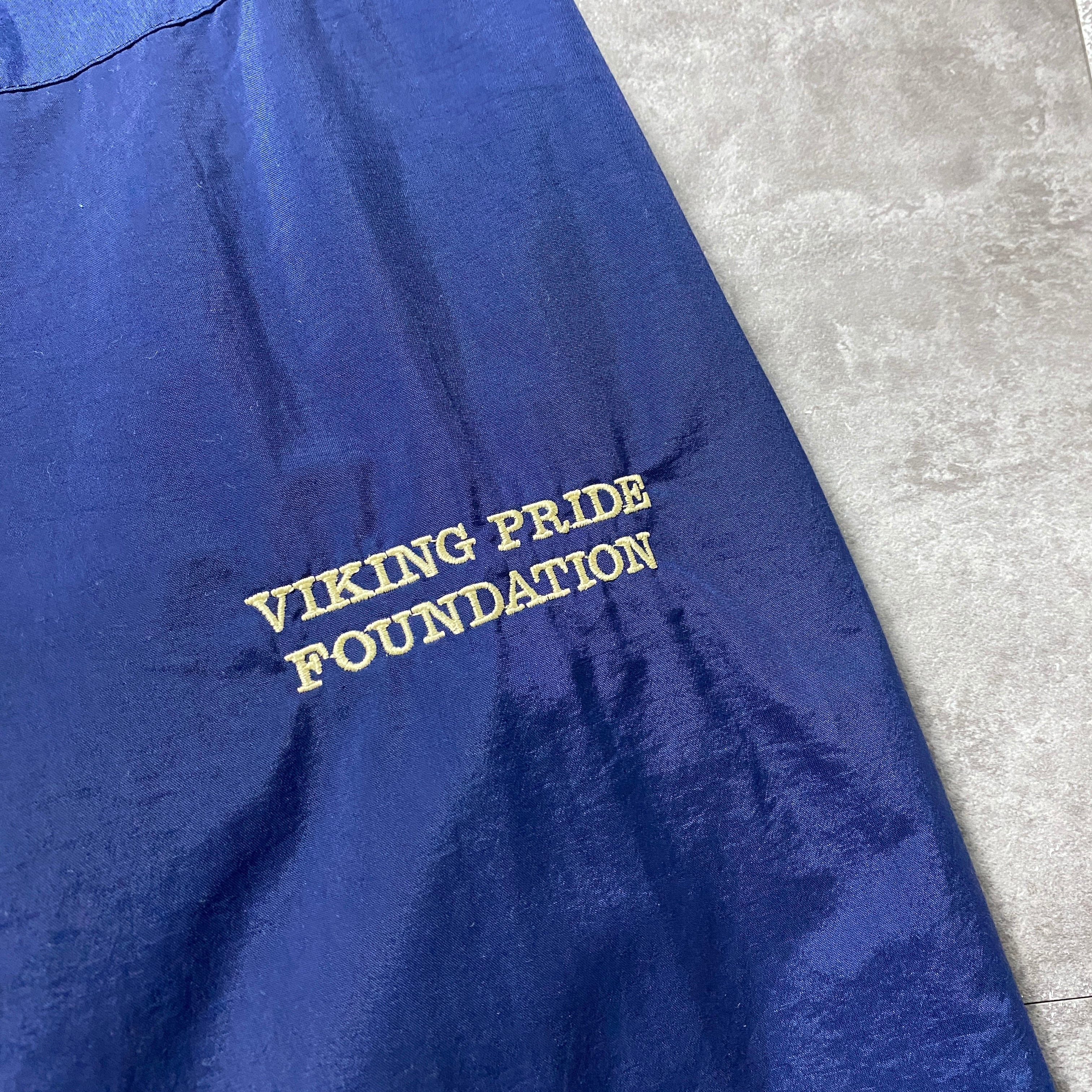90's GAME ゲーム NFL ミネソタ・ヴァイキングス 刺繍ワンポイント ラインリブ ナイロンプルオーバー