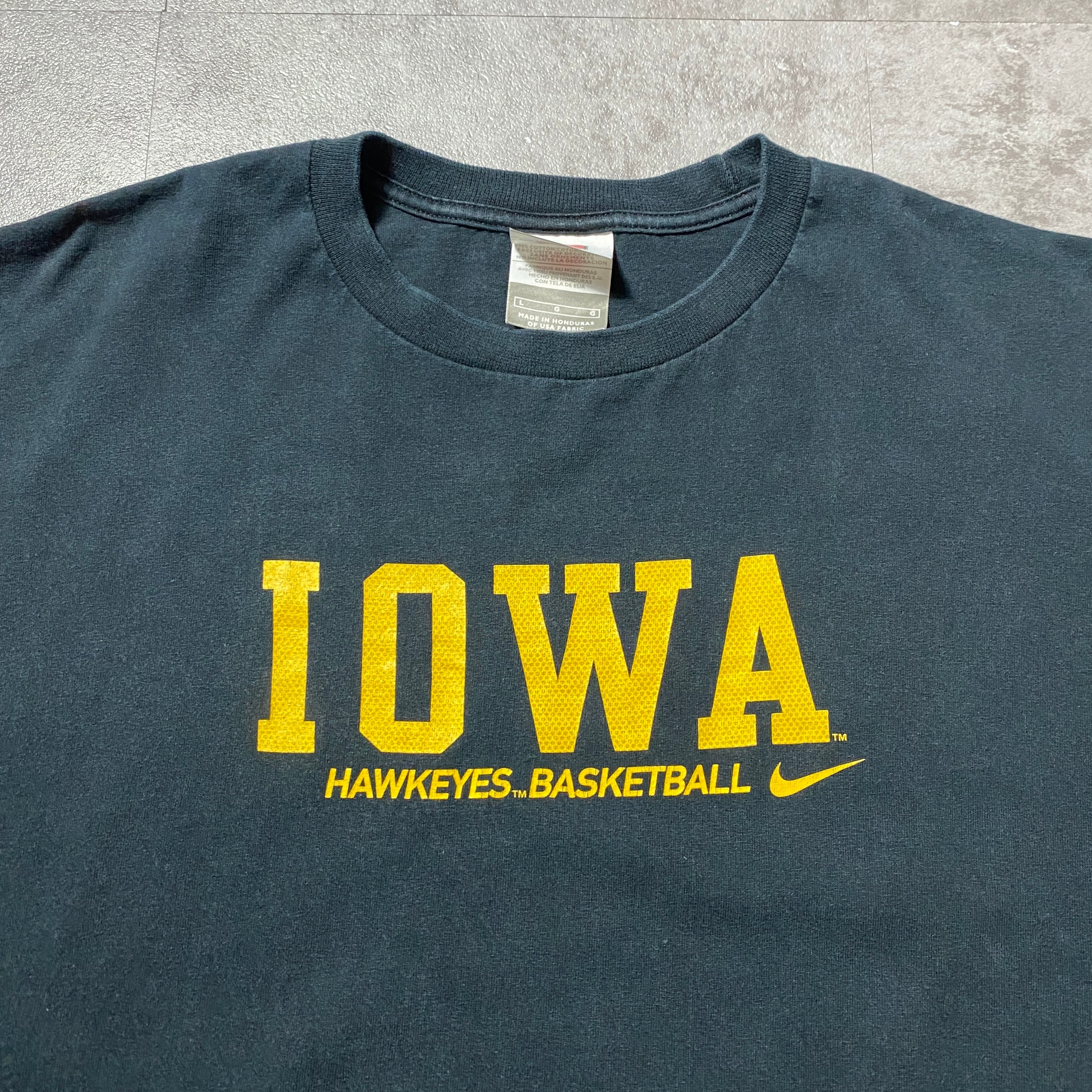 00's NIKE ナイキ NCAA アイオワホークアイズ プリント カレッジロゴ バスケットボールチーム プリント ブラック 黒 Tシャツ