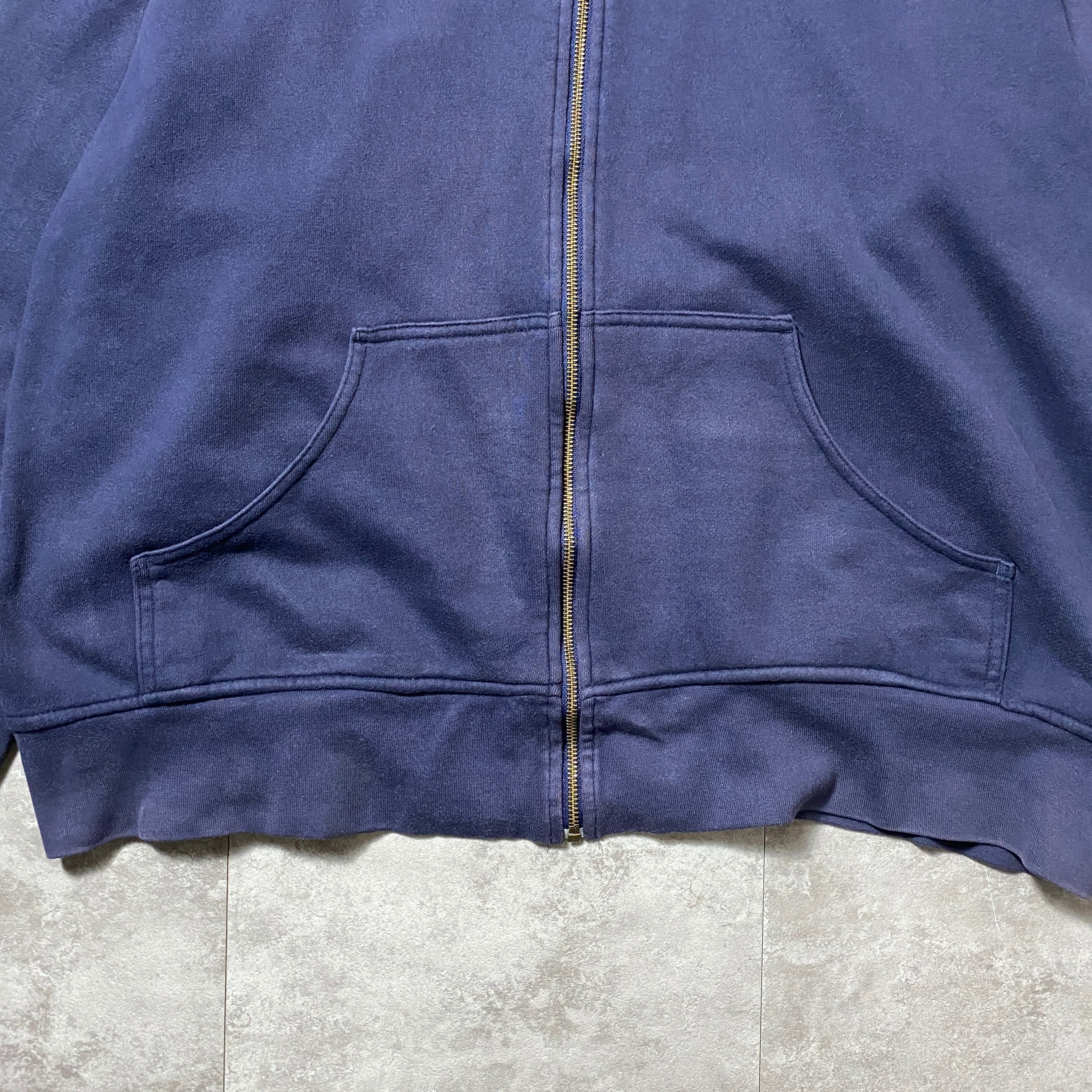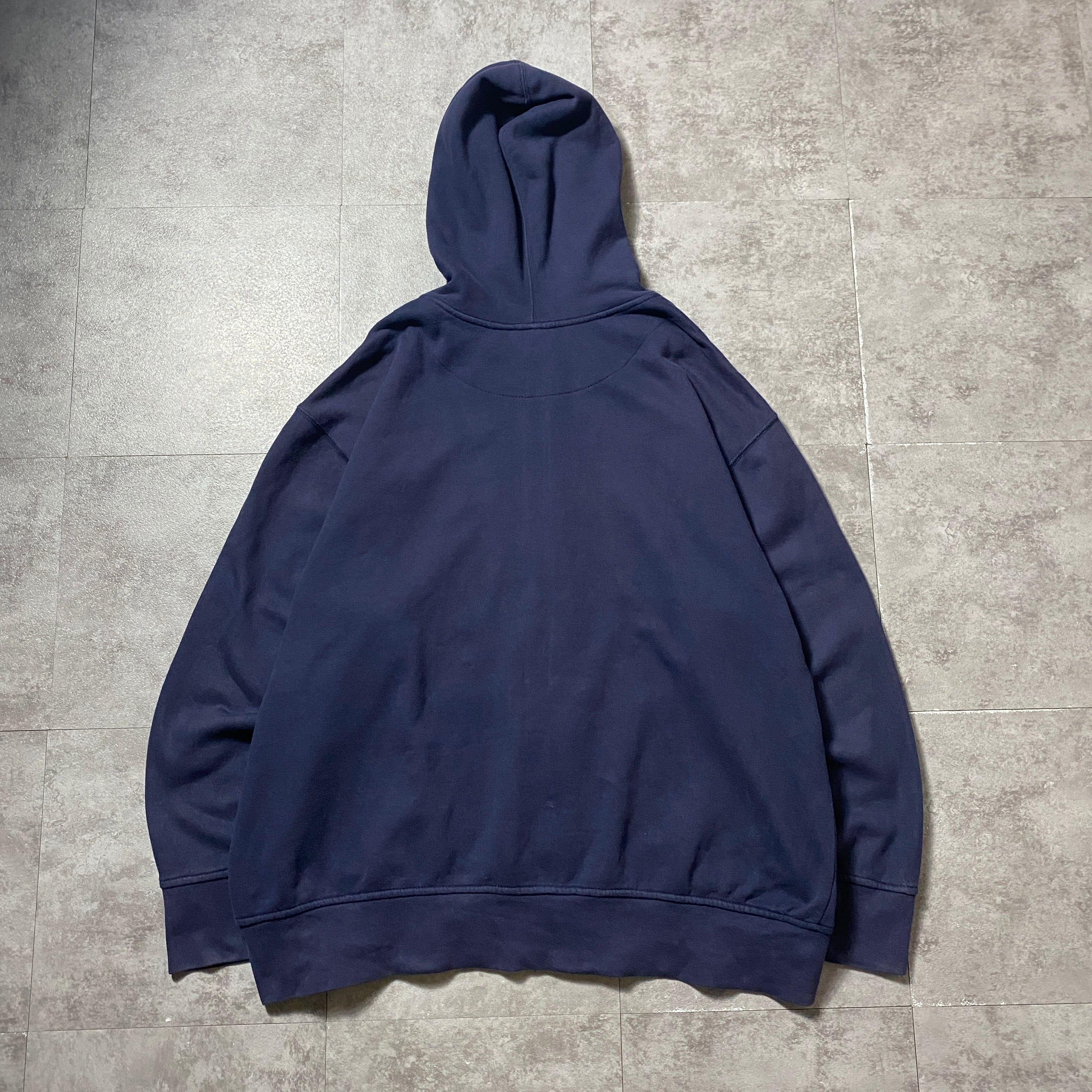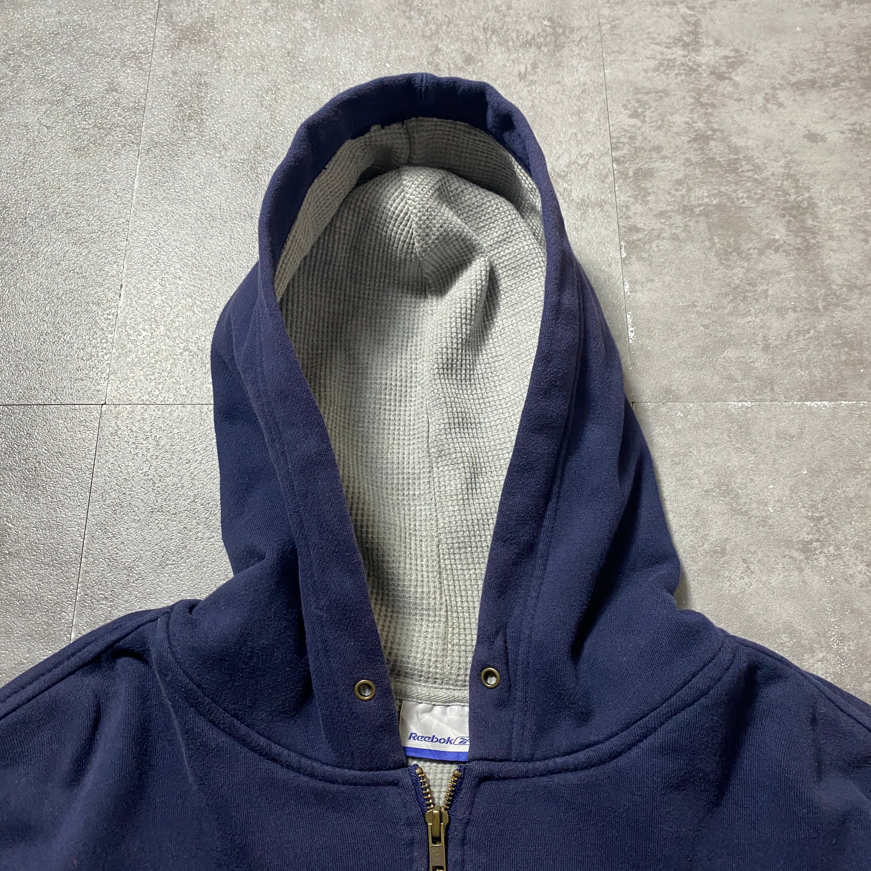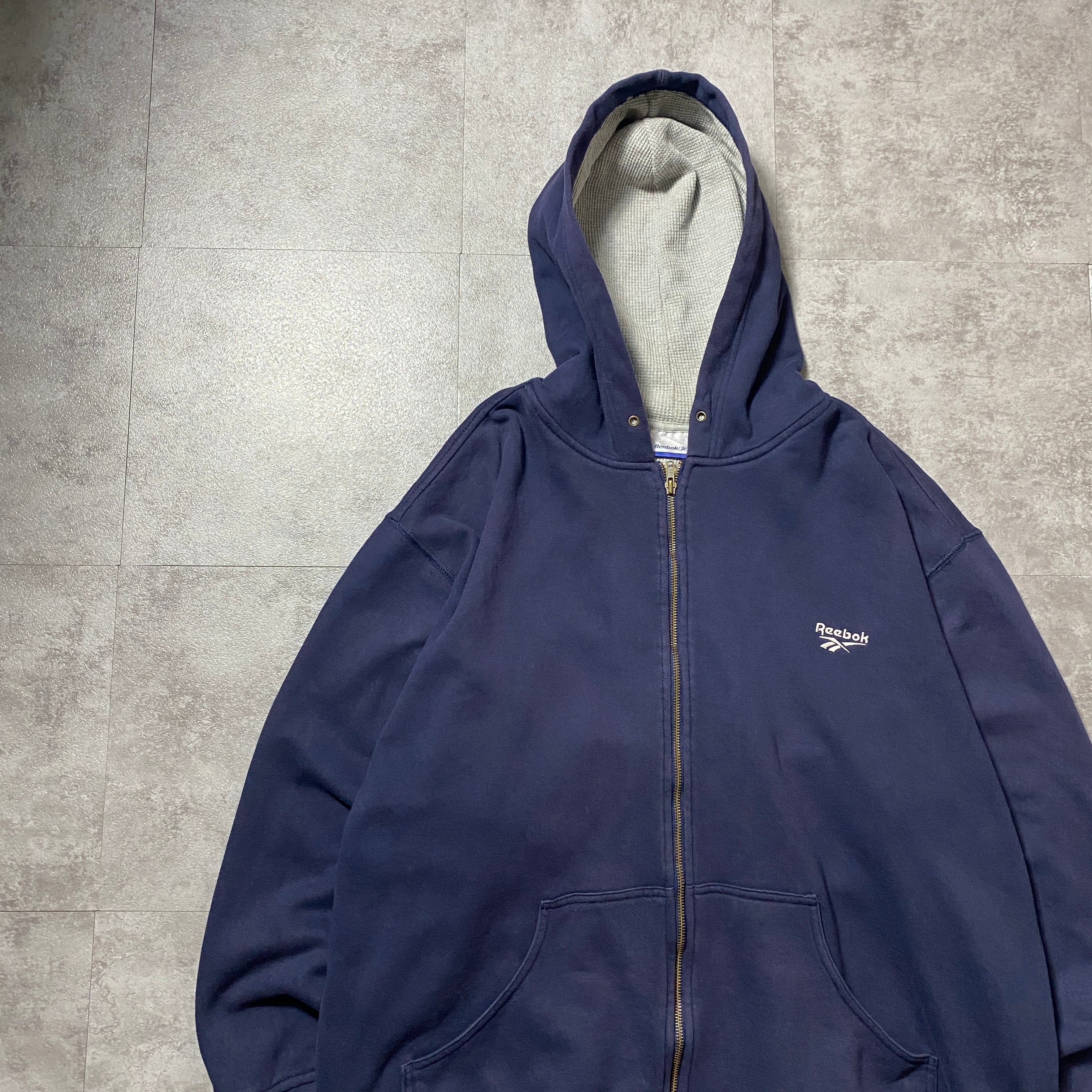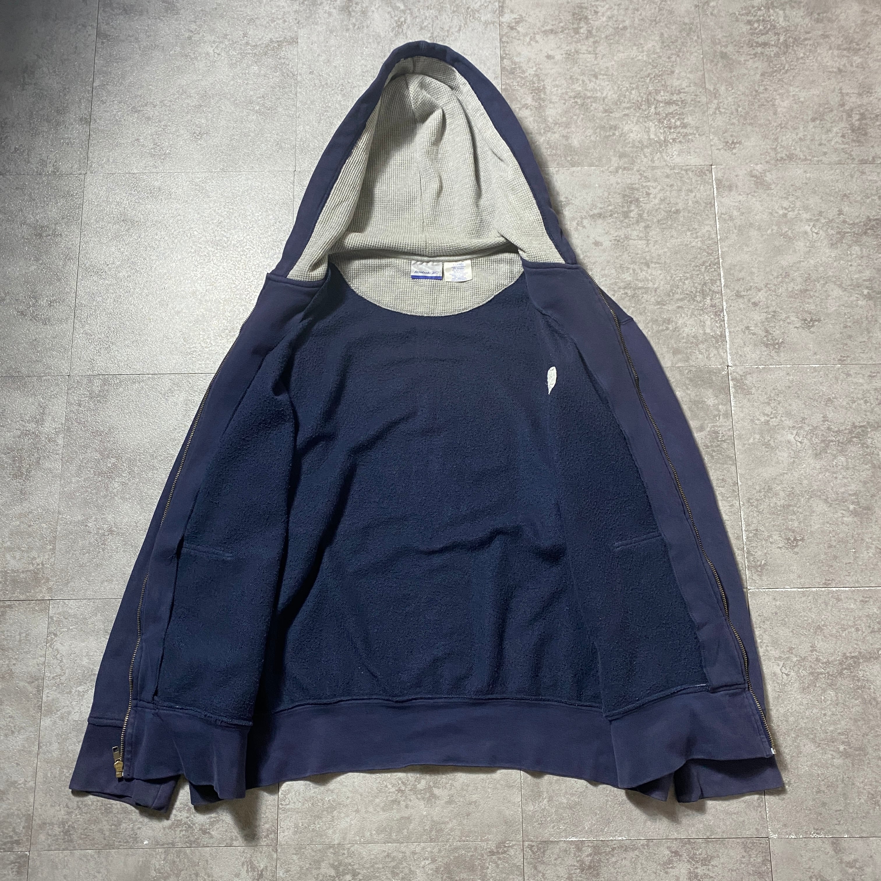 00's Reebok リーボック 刺繍ワンポイント ベクターロゴ フード裏地サーマル ネイビー スウェット ジップパーカー フーディ