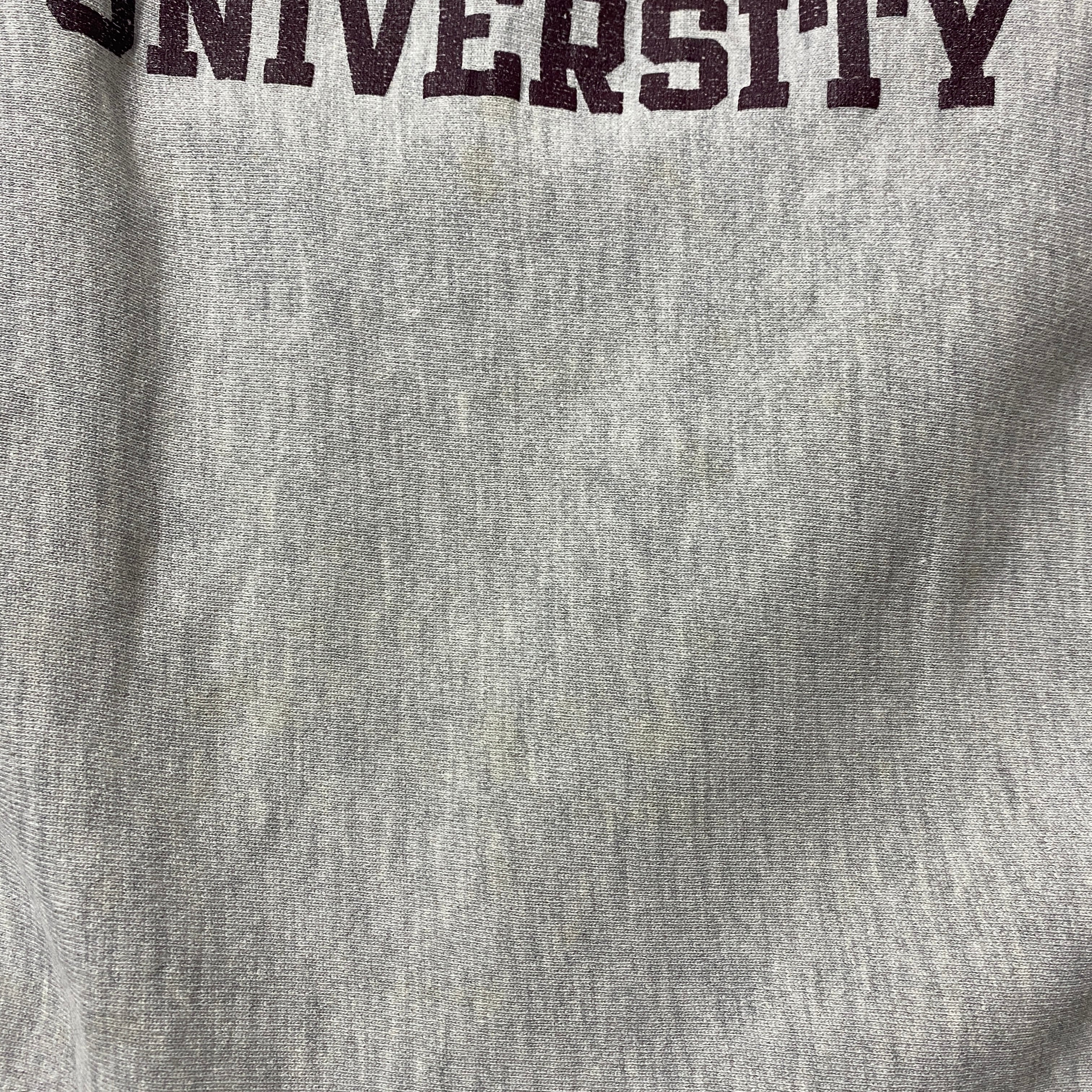 【80's トリコタグ】Champion チャンピオン USA製 リバースウィーブ カッツタウン大学 カレッジロゴ プリント ダメージ グレー スウェット トレーナー