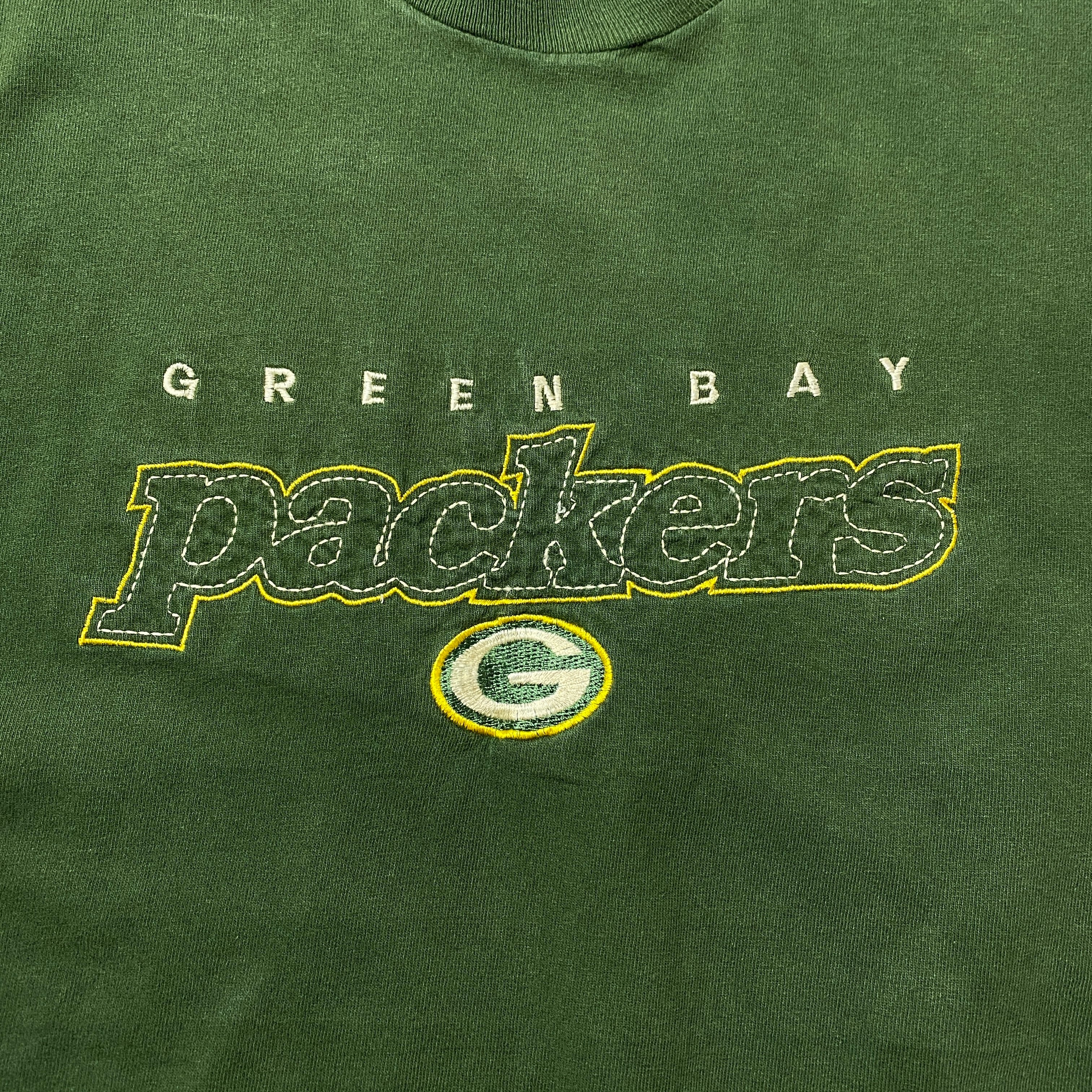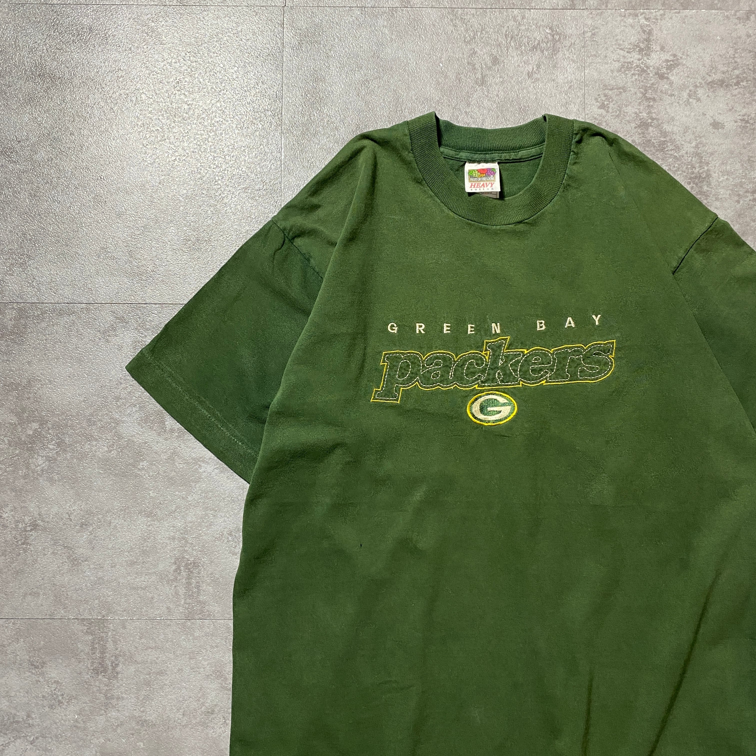 90's Fruit Of The Loom NFL GREEN BAY PACKERS グリーンベイパッカーズ 刺繍ロゴ フェードグリーン シングルステッチ Tシャツ
