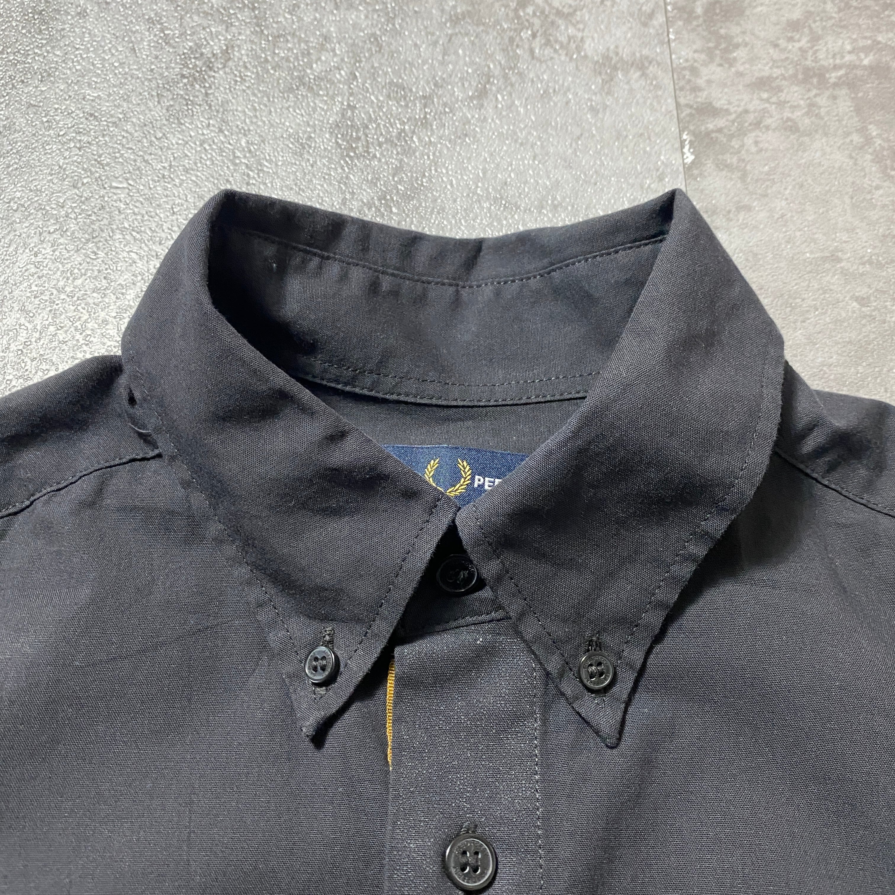 Fred Perry フレッドペリー 月桂樹 刺繍ロゴ 胸ポケット ブラック 黒 ボタンダウンシャツ