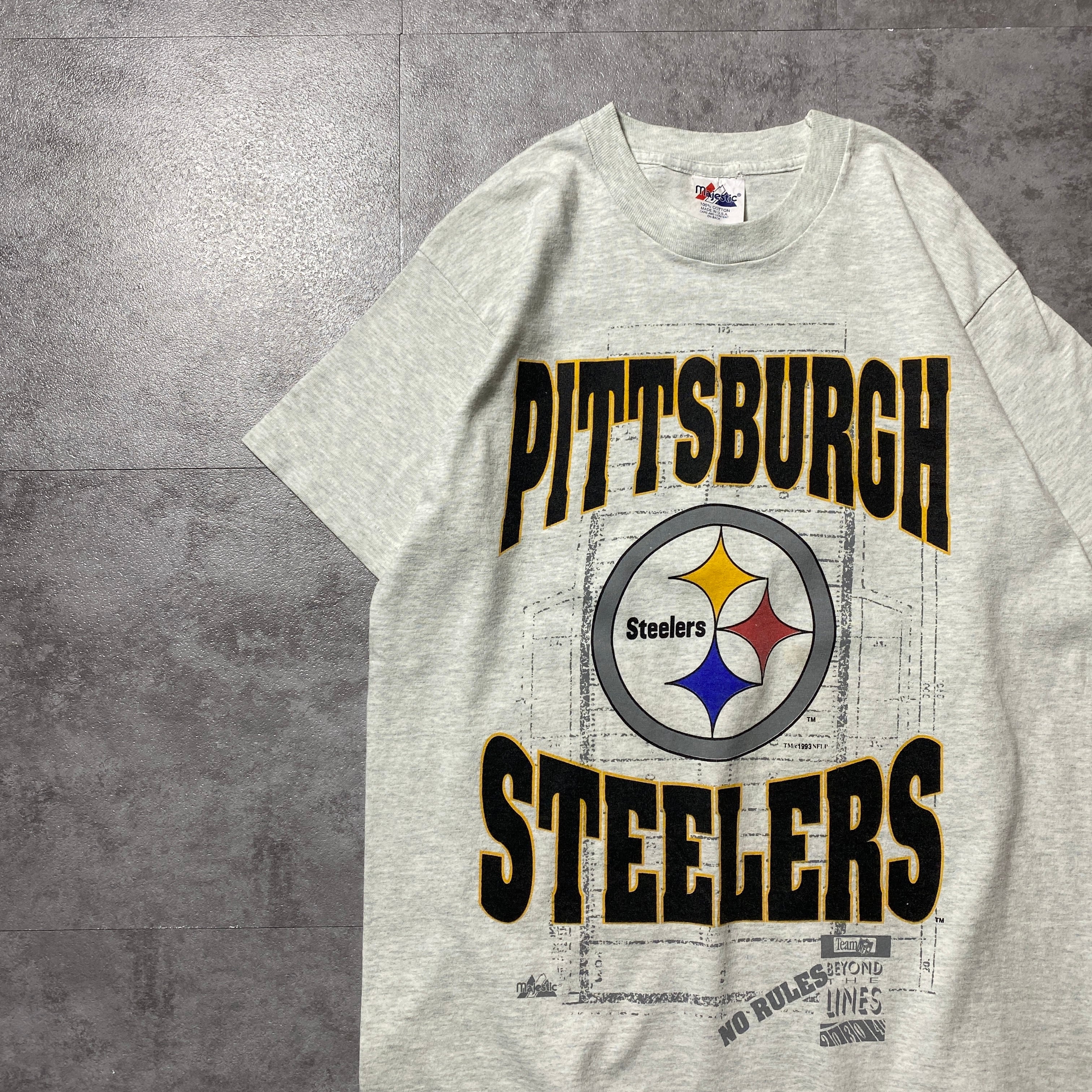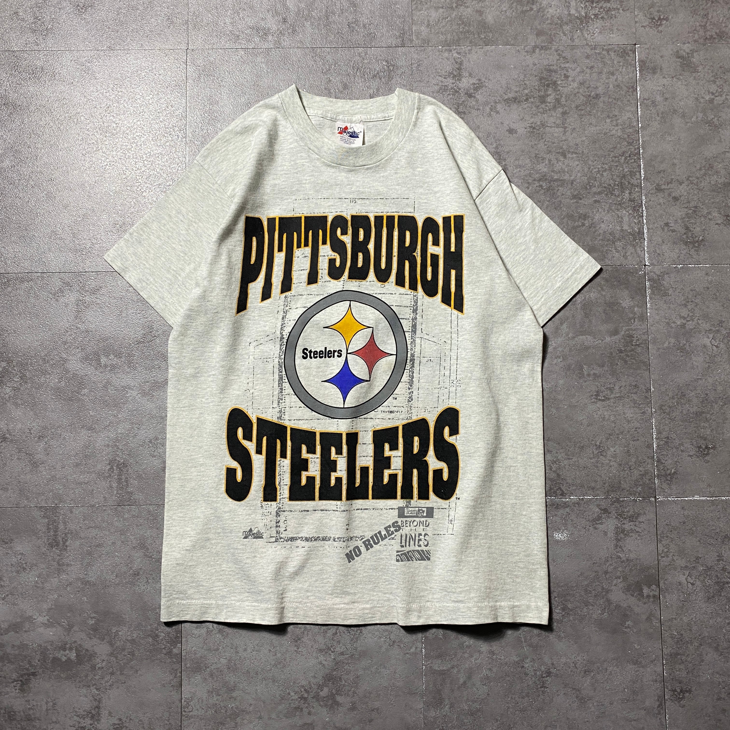 90's majestic NFL Steelers スティーラーズ プリント コピーライト1993 シングルステッチ グレー Tシャツ