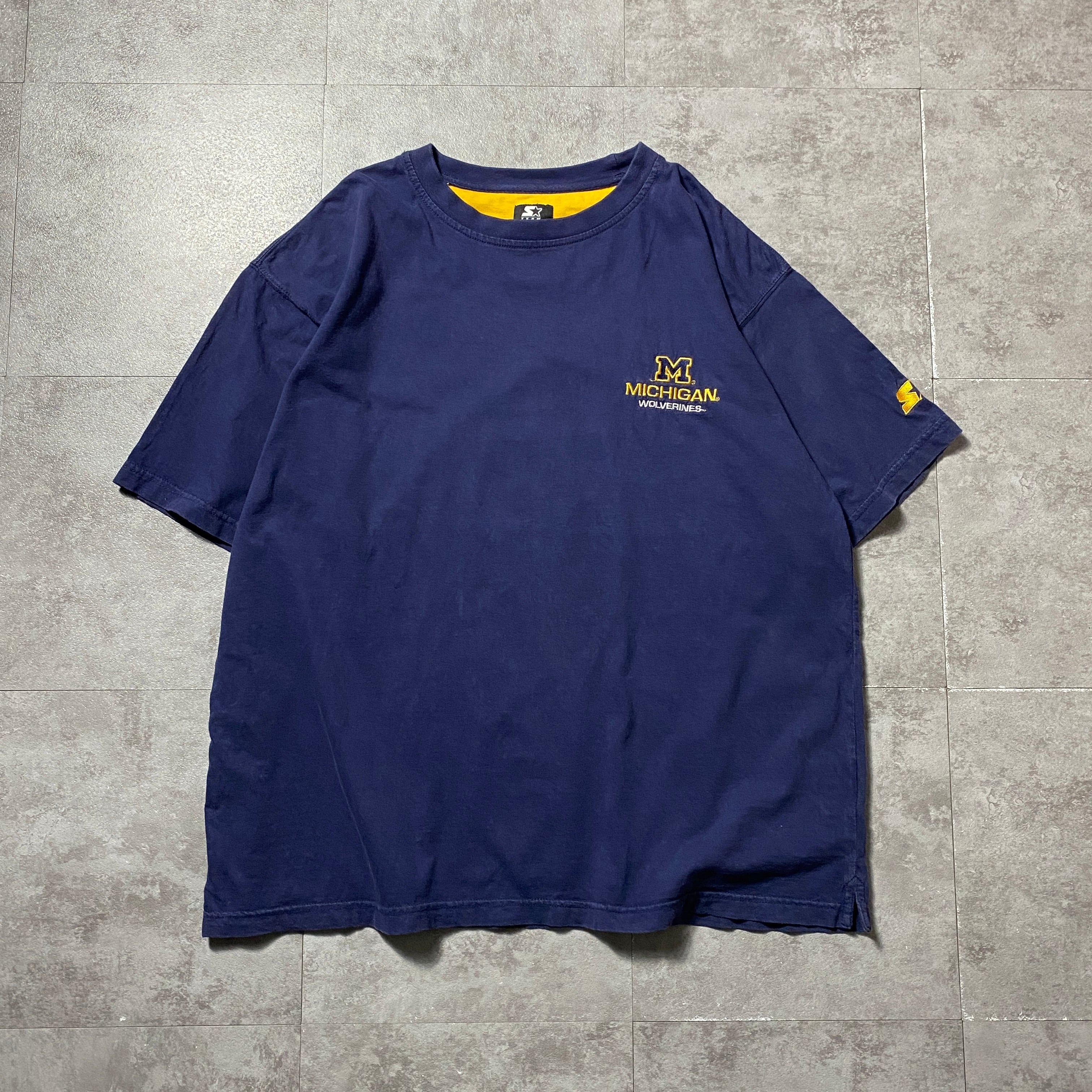 00's STARTER Michigan スターター ミシガン大学 刺繍カレッジロゴ ネイビー Tシャツ
